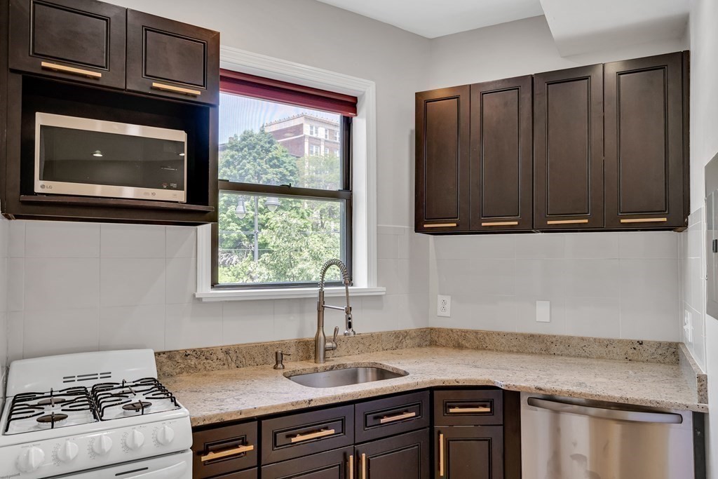 Newly renovated second floor 2 bedroom corner unit directly overlooks both Commonwealth Ave and Sutherland Rd. Heat and hot water included. There are 9 windows in the unit plus a large picture window in the living/dining room which faces east and gets lots of morning sun. The layout also allows afternoon sun in the other rooms.A beautiful space to work from home. There are gleaming hardwood floors throughout the unit. The updated kitchen has all newer appliances, granite countertops and loads of cabinet space. The layout is open with 9 foot ceilings and updated lighting throughout the the unit. Large built in closets and storage in the main bedroom as well as additional storage in the foyer and second bedroom. Directly across the street from the Sutherland T stop and many restaurants. Short walk to 65 bus line with access to Longwood Medical Area. Close to St Elizabeth's Hospital, Whole Foods, Beacon Hill Athletic Club, BU and BC