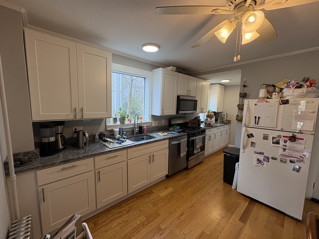 Available June 15th! This first-floor 2-bedroom, 1-bathroom unit in a two-family home features hardwood floors throughout and a brand new kitchen with stainless steel appliances, gas stove top, built-in microwave, dishwasher, and disposal. Oversized windows bring in strong natural light, and the basement offers washer/dryer hookups and ample storage. Water and sewer included; tenant pays gas and electricity. Two-car driveway parking included. Minutes from the Green Line D Branch at Newton Centre Station, directly across from Newton Centre Playground, and close to Mason-Rice Elementary and the restaurants and shops of Newton Centre. Pets negotiable. First month's rent and security deposit due at lease signing.