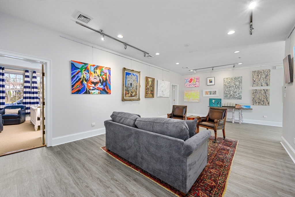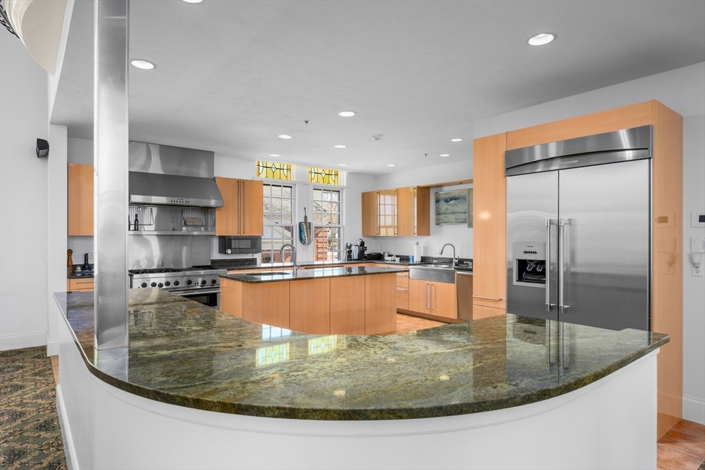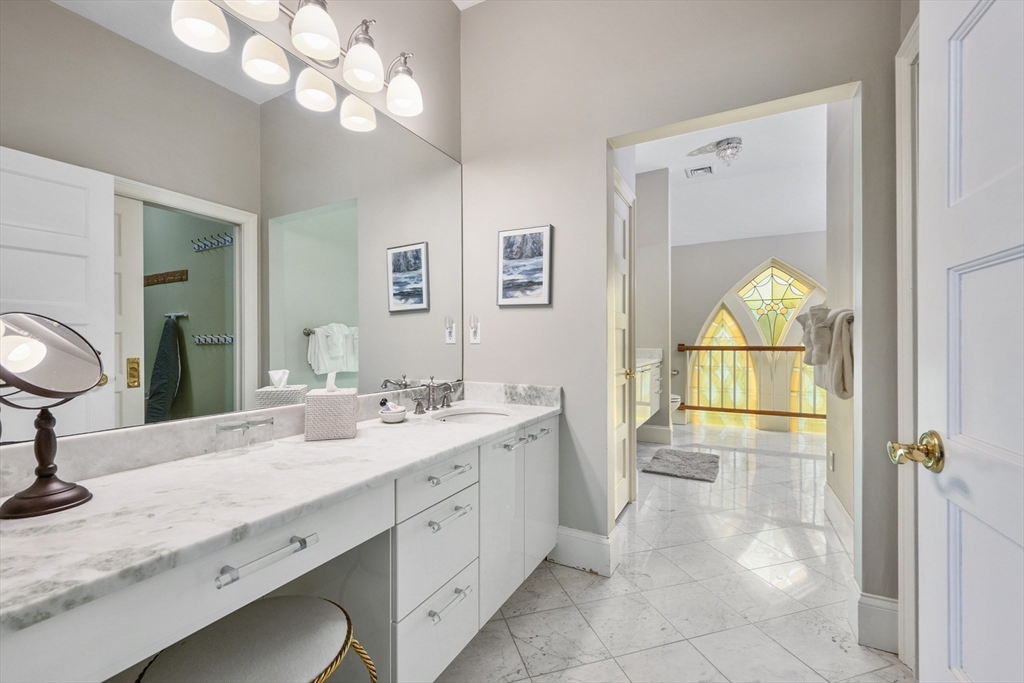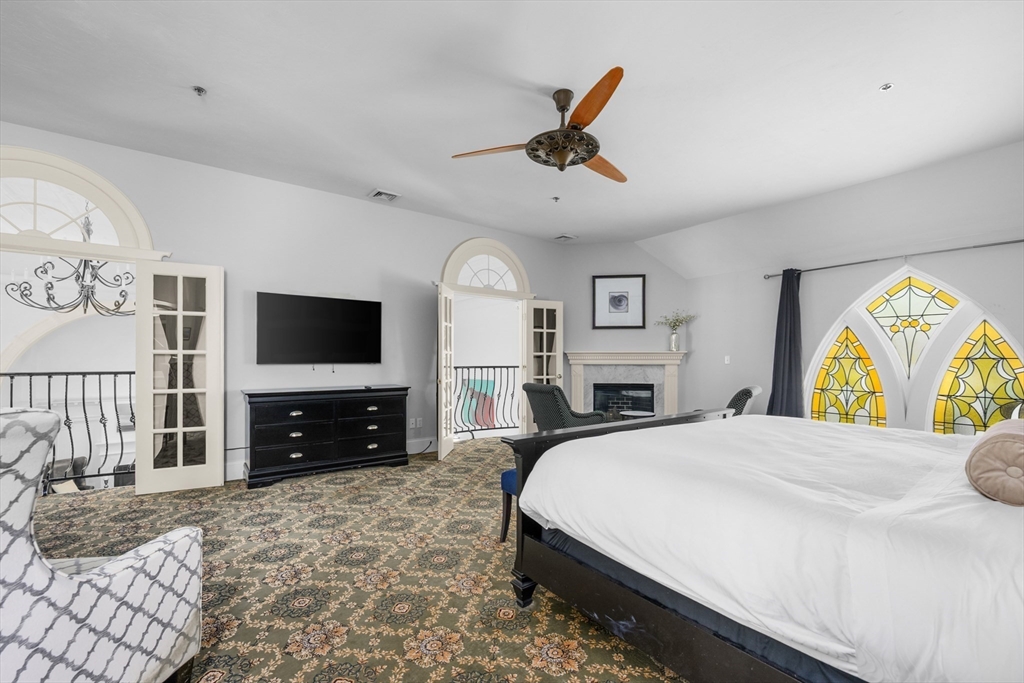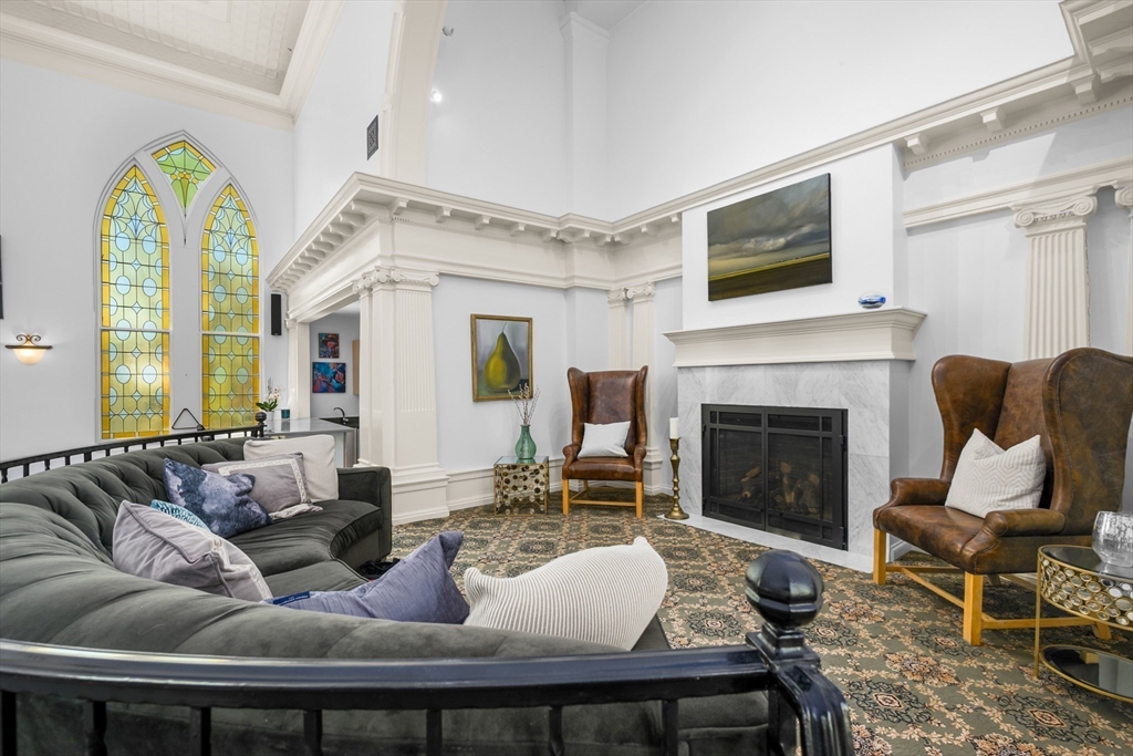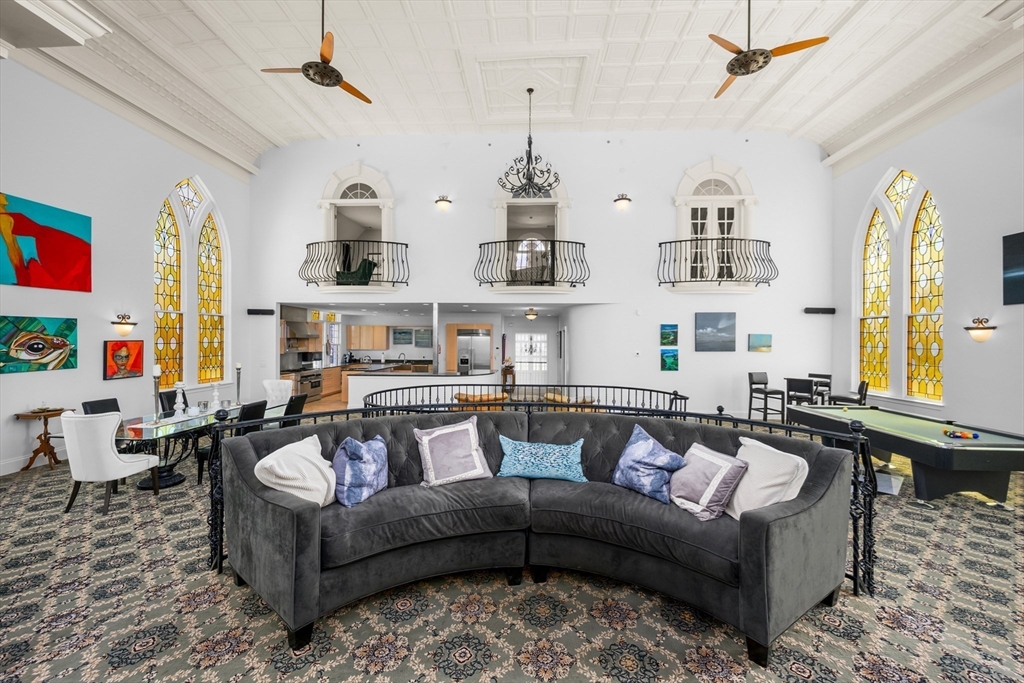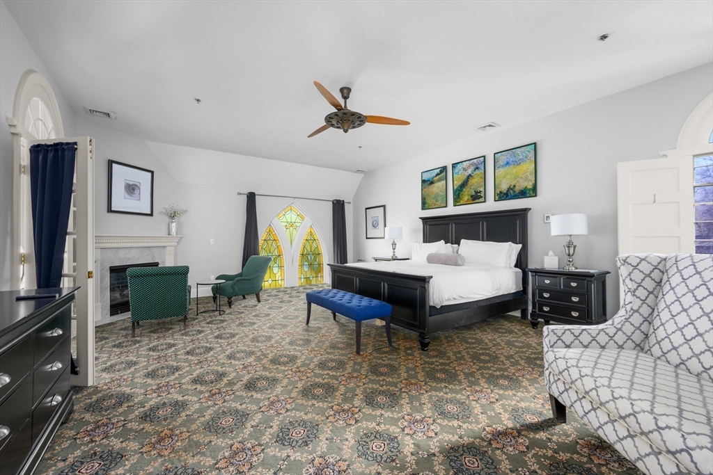 In the heart of Sandwich, Cape Cod's oldest town, stands its oldest public site--the First Parish Meetinghouse, circa 1833--now transformed into a stunning 7,270 sq. ft. light-filled residence. Designed by noted architect Whittemore Peterson, this architectural masterpiece blends Greek Revival and Gothic Revival styles. The property features five en-suite bedrooms, a soaring great room, six gas fireplaces, and a chef's kitchen with Thermador appliances. Historic elements include a restored clock-tower steeple, granite foundation, and mahogany library, complemented by modern conveniences such as an elevator, central air, heated two-car garage, and street-level art gallery with private entrance. Ideally located on Main Street, just steps to shops, dining, Heritage Museums & Gardens, and under a mile to the Sandwich Boardwalk and Town Neck Beach. Explore the many allowable uses of this truly unique property.