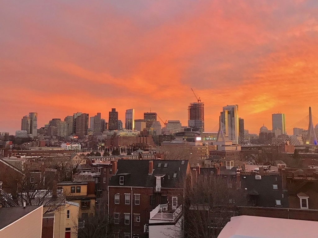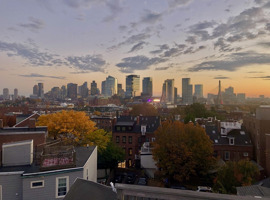 Welcome to 64 Chestnut Street, Unit 3- a bright corner unit filled with natural light, featuring tall ceilings, recessed lighting, pumpkin pine hardwood floors and exposed brick. The open-concept layout offers spacious living and dining areas that flow seamlessly into a well-appointed kitchen with granite countertops, ss appliances, a breakfast bar, and a large pantry. The oversized primary bedroom easily accommodates a king bed with ample room for additional furniture, while the second bedroom is ideal for a home office or guest space. A renovated subway-tiled bathroom and in-unit laundry provide modern convenience. Additional highlights include private storage and access to a stunning common roof deck with panoramic city views. Ideally located in the heart of Charlestown, just moments from the Bunker Hill Monument, shops, dining, and easy access to downtown. Tenant responsible for gas, electricity, & renter’s insurance. Pets subject to owner/condo association approval. Available 6/1.