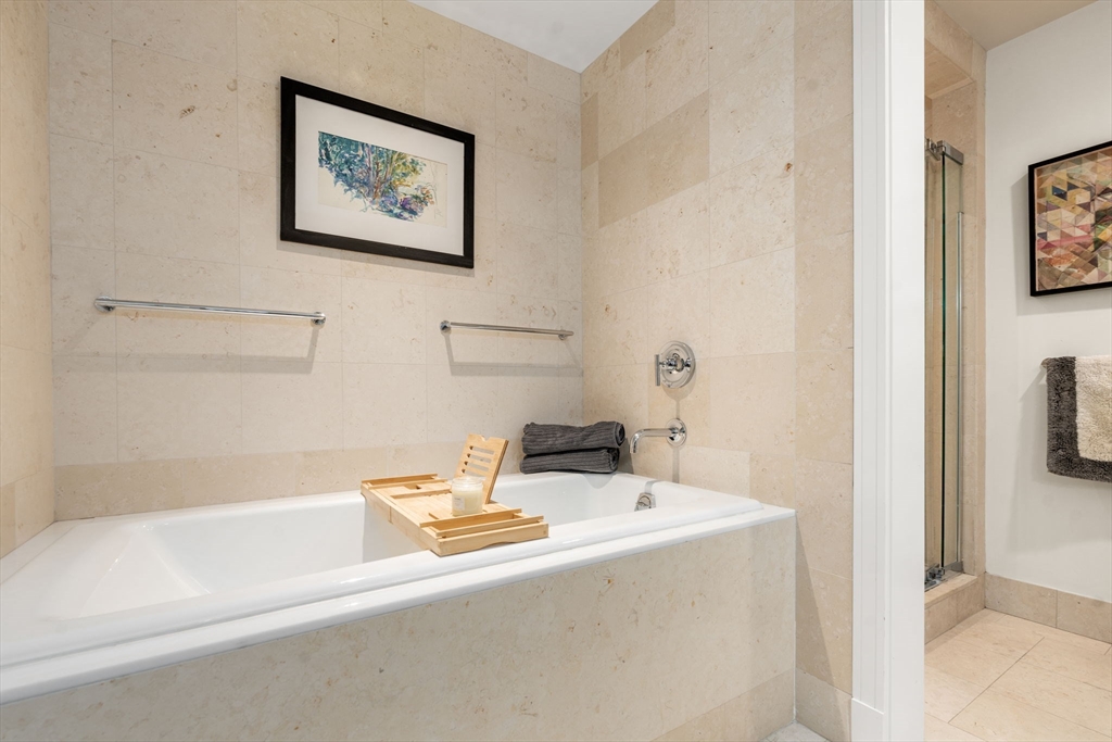 Welcome to The Residences at The InterContinental! Amenities include 24-hour concierge, doormen & valet parking. Available room/maid service, restaurant/bars & fitness center with heated lap pool. This rarely available water-side 2 bedroom, 2.5 bath home offers beautiful new hardwood floors throughout, 9'+ high ceilings, a spacious living/dining room with floor to ceiling windows and fantastic water views! The chef's kitchen has polished granite counters & matching tile backsplash, Rosario custom built cabinets, stainless appliances including Sub-zero refrigerator, Wolfe oven/gas stovetop, Franke sink and Asko dishwasher. Immense master bedroom suite with floor to ceiling windows and fantastic water views, large walk-in closet, gorgeous marble bath with double sink vanity, soaking tub & separate marble shower. Guest bedroom with water views, en-suite full bath, powder room, w/d, storage. Includes one valet parking.