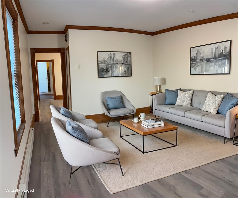 This unique and inviting two-bedroom apartment plus dining area has so much to offer! Tucked away in a quiet, well-maintained multi-family home, this bright space provides both comfort and character.The refreshed kitchen opens into a functional layout, with a second bedroom located upstairs just off the kitchen perfect for added privacy or a flexible living arrangement. Brand-new carpeting runs throughout, adding a fresh and cozy feel. Additional highlights include:Off-street parking. FREE laundry in the buildingSnow removal and lawn care included. Tenants are responsible for gas and electric.Available now. First month and last month required.