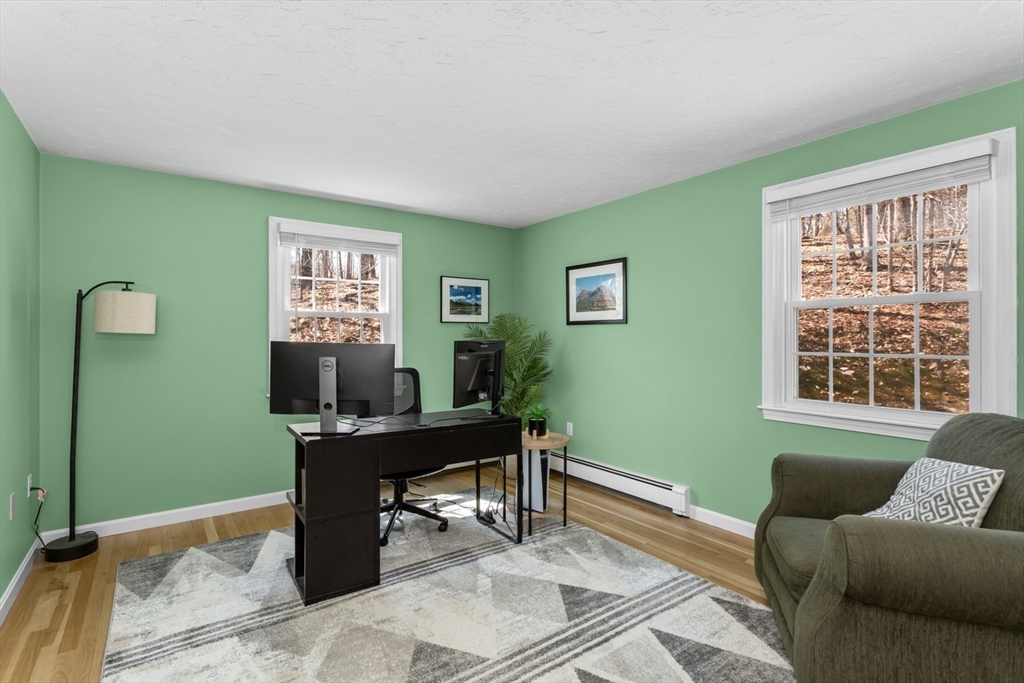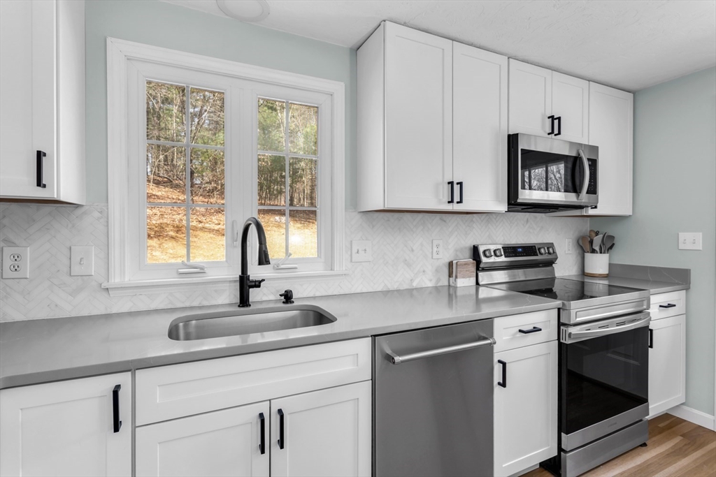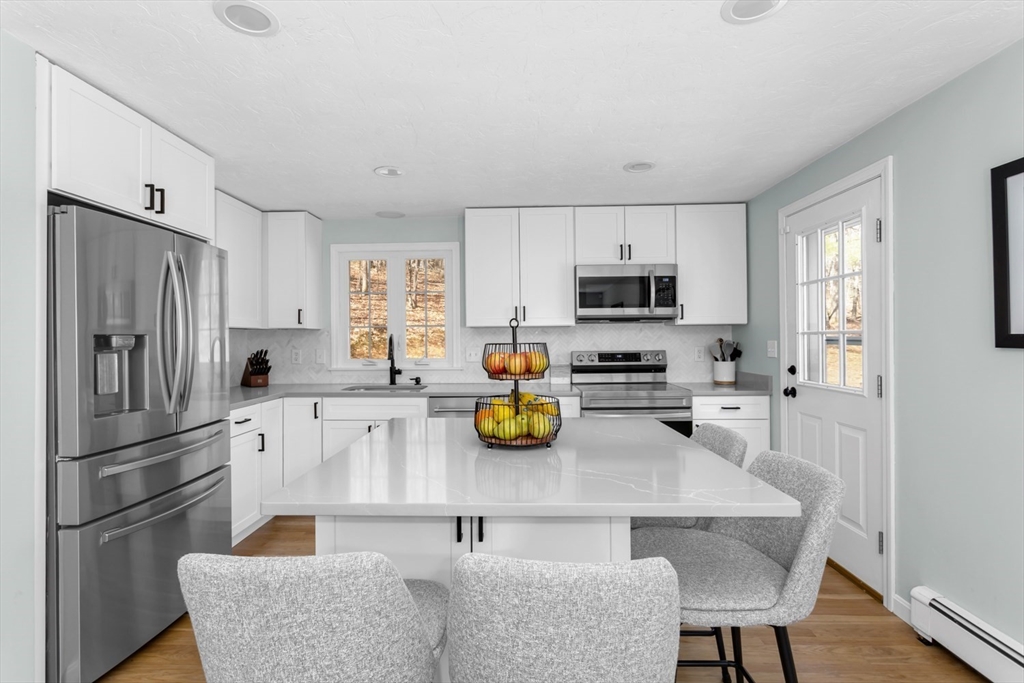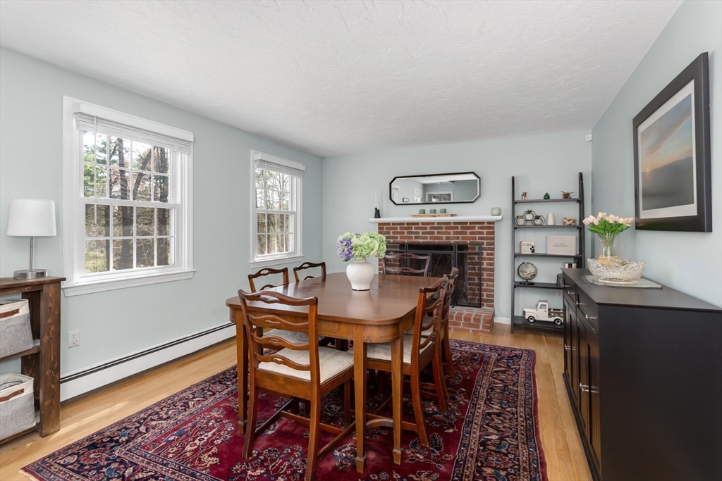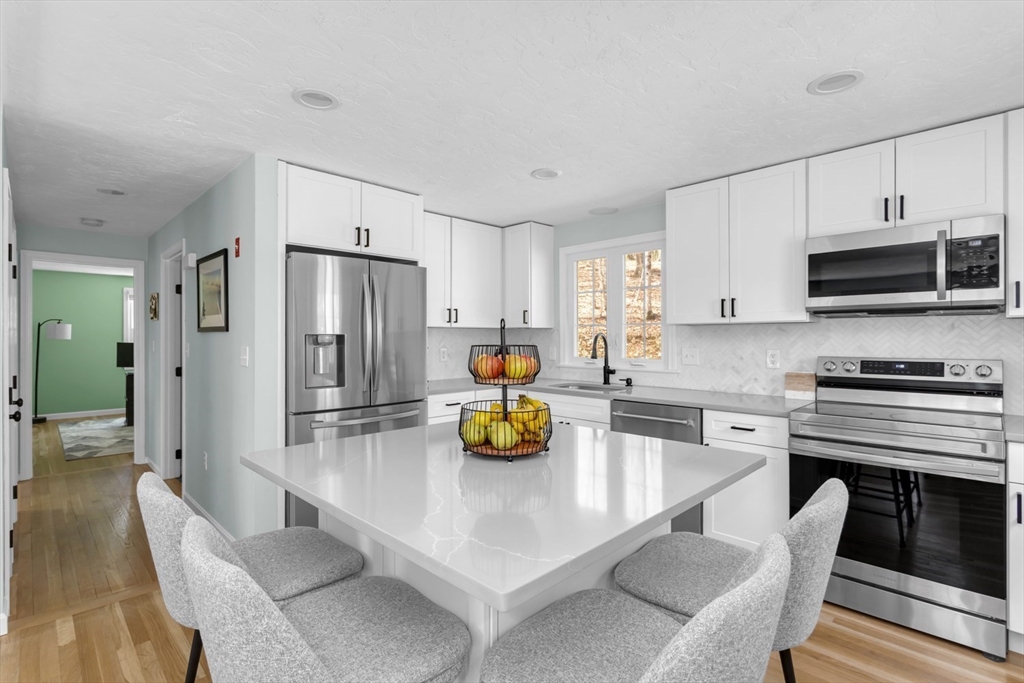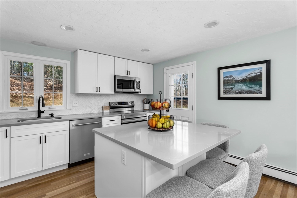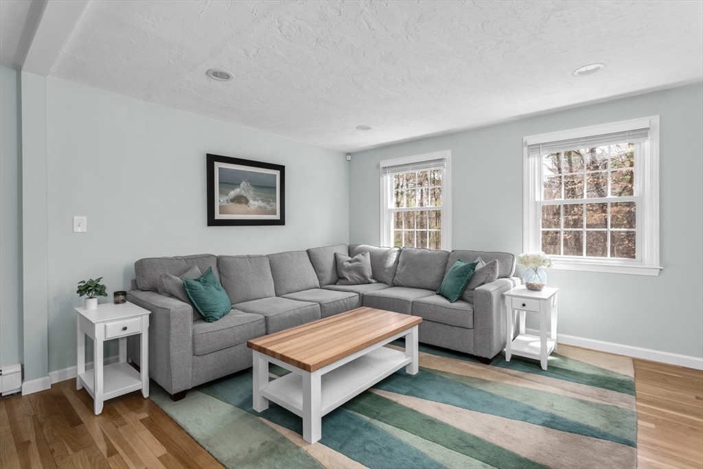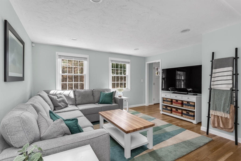 Welcome home to this pristine, updated 3 bdrm, 2 bath gambrel set back and situated on a beautiful 2+ acre private lot. Fully renovated kitchen (23) w/ new appliances, ample cabinet space, quartz counters, custom marble herringbone backsplash & large kitchen island w/ room for 4 bar stools & xtra storage. Kitchen now opens to the FR so the entire area is perfect for entertaining. Lrg front facing room w/ wood burning FP is currently used as a DR but would also serve well as a LR. Rear corner room perfect as an office, den or guest room. 3 ample sized bedrooms & beautifully updated full bath upstairs. Full unfinished lower level offers tons of storage & is ready for your ideas to create your own space. Added bonuses include; newer and refinished hardwoods, newer carpet in one bedroom, fresh interior paint, NEW furnace & hot water heater (24), all appliances included, highly rated school district & just minutes to Stony Brook Sanctuary, Norfolk common & commuter rail. This is it!