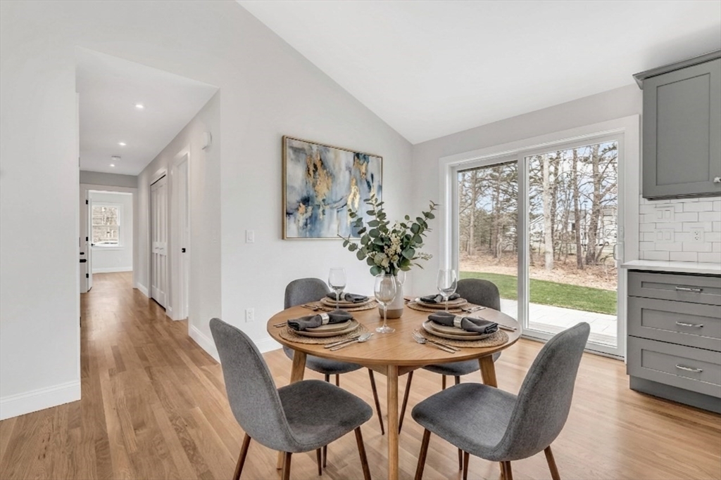 Nestled in Dennis, this new construction home offers 3 bedrooms, 2 baths, and 1,300 SF of premium, low-maintenance living near world-class beaches and golf courses. Hardie clapboard siding, Azek PVC trim, and a CertainTeed architectural roof with limited lifetime warranty are complemented by professional landscaping, a 12×16 patio, paved driveway, and irrigated sod lawn.Inside, select-grade white oak floors flow throughout, accented by custom wainscoting, shaker doors, and a kitchen with custom cabinetry, countertops, and LG Studio appliances. First-floor laundry, gas heat, central AC, and underground electric add everyday comfort. Full basement offers up to 550 SF of additional living space.AdvanTex septic with nitrogen removal; quarterly testing required (~$1,800/yr). Permitted under MGL Ch. 40A Sec. 6 — limited to 3 bedrooms/1,850 SF; no short-term rentals.