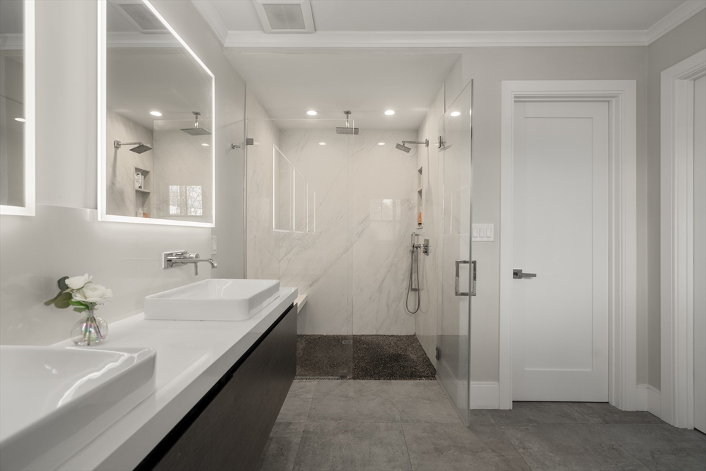 Experience modern family living in this stunningly 2022, renovated Brookline duplex. Situated on a picturesque, tree-lined street, this spacious 2,375 sq ft home boasts 4 bedrooms & 3.5 baths, ideal for people seeking comfort and style. The inviting covered porch welcomes you into a sun-filled open living area with oversized windows, fireplace & seamless flow into the elegant dining space. The chef’s kitchen impresses with high-end stainless steel appliances, an island & direct access to a private patio & fenced yard—perfect for entertaining or relaxing outdoors. The luxurious primary suite features a walk-in closet & spa-like bathroom. The 2nd level features a generous family room, 3 additional bedrooms, 2 full baths & a laundry room providing ample space for everyone. Additional highlights include central air, high ceilings, hardwood floors, 3 parking spaces (garage & 2 outdoor). Close proximity to top schools, shopping, transit, and the Longwood Medical. A rare turn key opportunity!