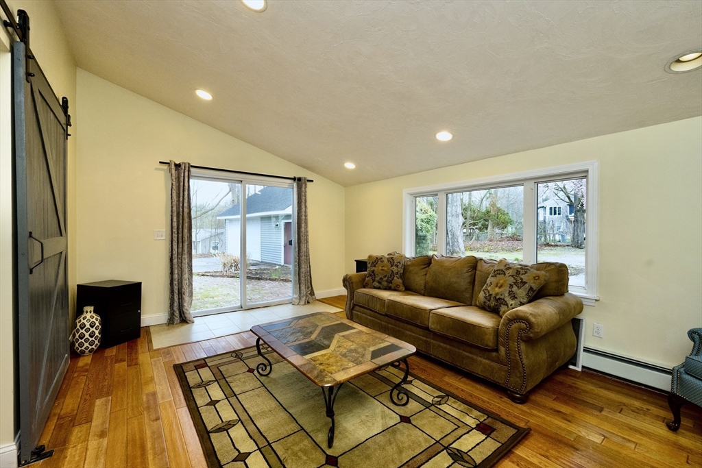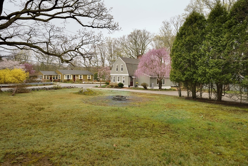 Not your typical gambrel—Set on a picturesque half-acre lot with classic stone walls, low-maintenance vinyl siding, and a weeping cherry tree. This home blends antique charm with today’s comforts. Inside, exposed wood beams and a cozy living room with a wood burning fireplace create a warm, inviting feel. Updated kitchen with wood cabinetry, granite countertops, updated appliances and a brick fireplace surround. The sunroom offers a propane gas stove, picture window and sliders leading to the yard. Bathrooms are tastefully updated with new tile, cabinets & glass shower doors. All three bedrooms are upstairs with plenty of closets. All year comfort with 2-zone oil heat, ductless A/C units on the 1st floor, and upgrades including newer circuit breaker panel and added insulation in the home. Two driveways, ample parking, and an oversized two-car garage provide exceptional flexibility. Ideally located near Diamond Hill State Park, rte 295 and the Mass line—offering charm and convenience.