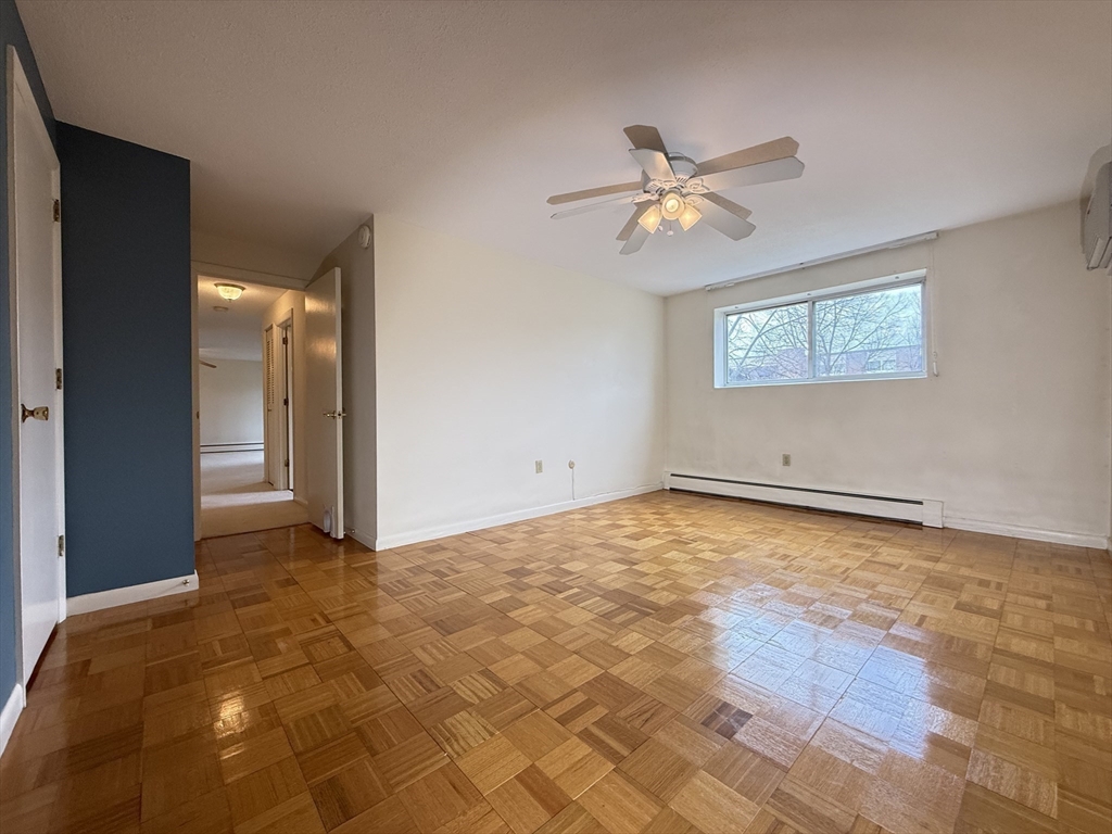 Beautifully maintained 2-bedroom, 1-bath Condo in desirable Buckingham Terrace complex. This single-level unit offers an inviting layout perfect for comfortable everyday living. Easy access to elevator. Welcoming living room opens to a spacious front balcony overlooking the courtyard—an ideal spot. Functional kitchen flows seamlessly into the dining and living areas, creating a practical and connected space. Tile flooring enhances both the kitchen and bathroom, while the two well-proportioned bedrooms feature parquet wood flooring and ample closet space. Primary bedroom includes a generous walk-in closet. Additional external storage conveniently located on the same floor. Enjoy the beautifully maintained courtyard, which leads to the association’s inground pool and clubhouse—perfect for relaxing or entertaining. Ideally located near the Wakefield/Reading lines, this condo offers easy access to shopping, dining, parks, and major commuter routes. Move in ready, nice opportunity.