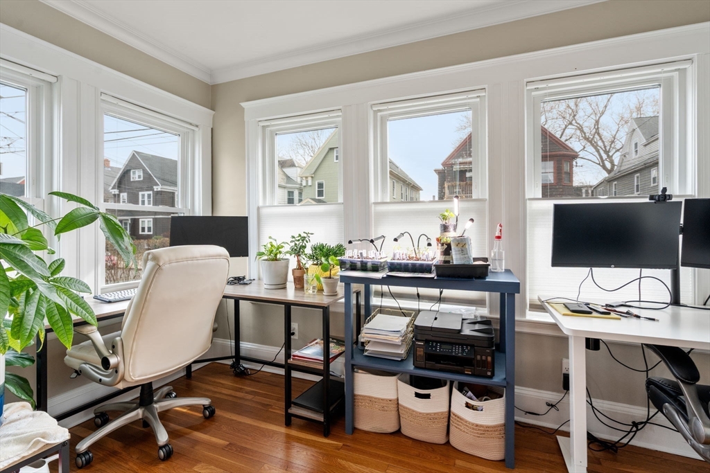 Situated on a pronounced corner lot is an exquisite two family residence. The home underwent an extensive restoration and renovation which included a third floor addition. Comprised of two palatial units. The first floor is an expansive and open residence offering 2 bedrooms, 1 bathroom and office. The upper floor duplex presents 5 bedrooms, 2 full bathrooms, a lofted study and direct access to front facing deck space overlooking manicured grounds. Accented by a 3rd floor primary bedroom offering 3 exposures and a spa inspired bathroom. Both units feature private laundry, central HVAC, hardwood floors and tall ceilings. The kitchens are the envy of even the most discerning chef with abundant cabinet storage, spacious stone counters and stainless appliances. The building has 4 decks, off street parking for 6 cars and direct access to the basement with generous storage for all. A perfect opportunity for a primary home owner or investor looking for a turn key portfolio addition.