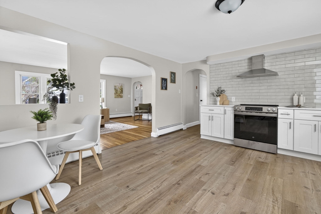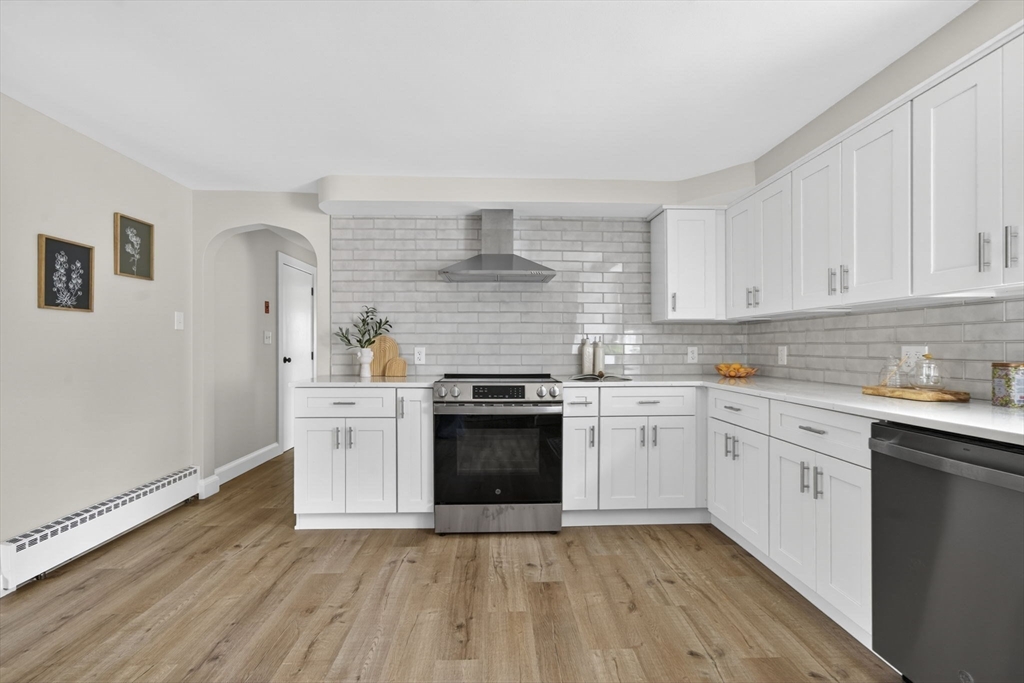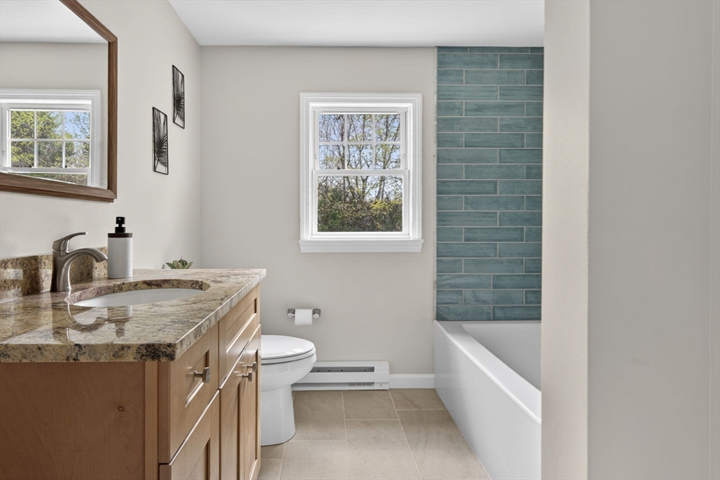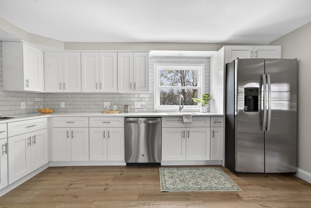 Welcome to this beautifully updated home offering versatile living space and a flexible layout to fit a variety of needs. The main level features a bright, open feel with a fully renovated kitchen showcasing brand-new appliances, quartz countertops, tile backsplash and new white cabinetry. The home has been painted in neutral tones and includes gleaming hardwood flooring, first floor full bath features new tub, tile, vanity and fixtures. The second level provides additional finished space recently used as bedrooms and a half bath, offering great flexibility for home offices, guest space, or expanded living. A two-car garage and updated exterior with new vinyl siding add both convenience and curb appeal. Improvements include: new hot water heater, 4 year old roof with solar, 2 garage doors with openers, plumbing/electric permitted updates. Located in a desirable setting, this home offers the perfect blend of updates, space, and functionality. Close to Route 20, Mass Pike & 290.
