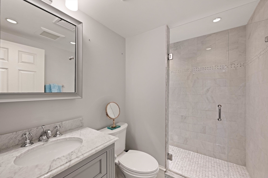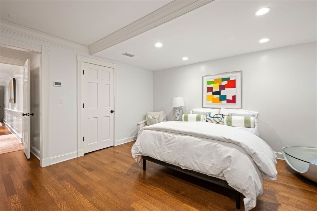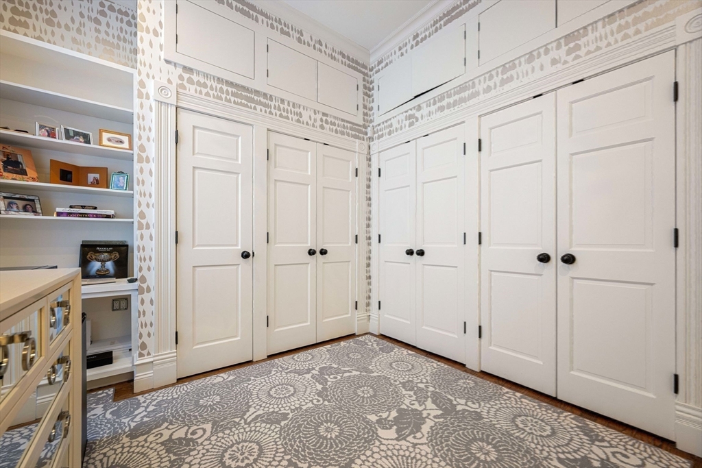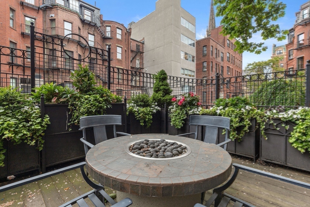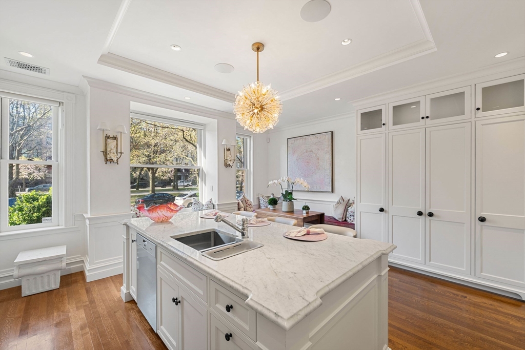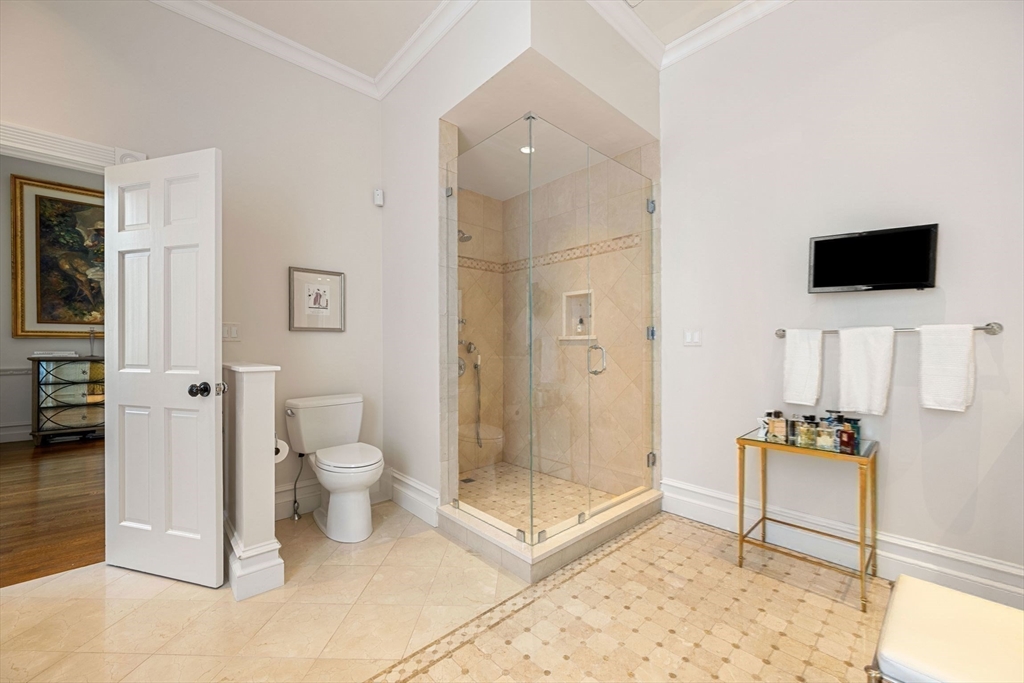 Only half a block from the Public Garden on Commonwealth Avenue’s magnificent leafy boulevard, this elegant triplex is on an impressive stretch of historic homes in one of Back Bay’s finest locations. Featuring 2 direct-access garage spaces, a private deck, garden terrace and elevator access on all levels, this thoughtfully designed 4-bedroom home suits today’s way of living while reflecting its beautiful Back Bay character in a fresh, clean timeless style. There are high ceilings and gracious embellishments. A columned fireplace highlights the sunny bay-windowed living room flowing openly into the dining room with exquisite cabinetry. The airy dine-in chef’s kitchen overlooks the avenue’s trees. The alluring primary suite admires leafy avenue views from the light-infused sitting bay and also features an elaborate decorative fireplace, dressing room and luxe marble bath. Custom-fitted, the bedroom/library has a vaulted marble bath. Versatile bedroom/gym and family room/bedroom.