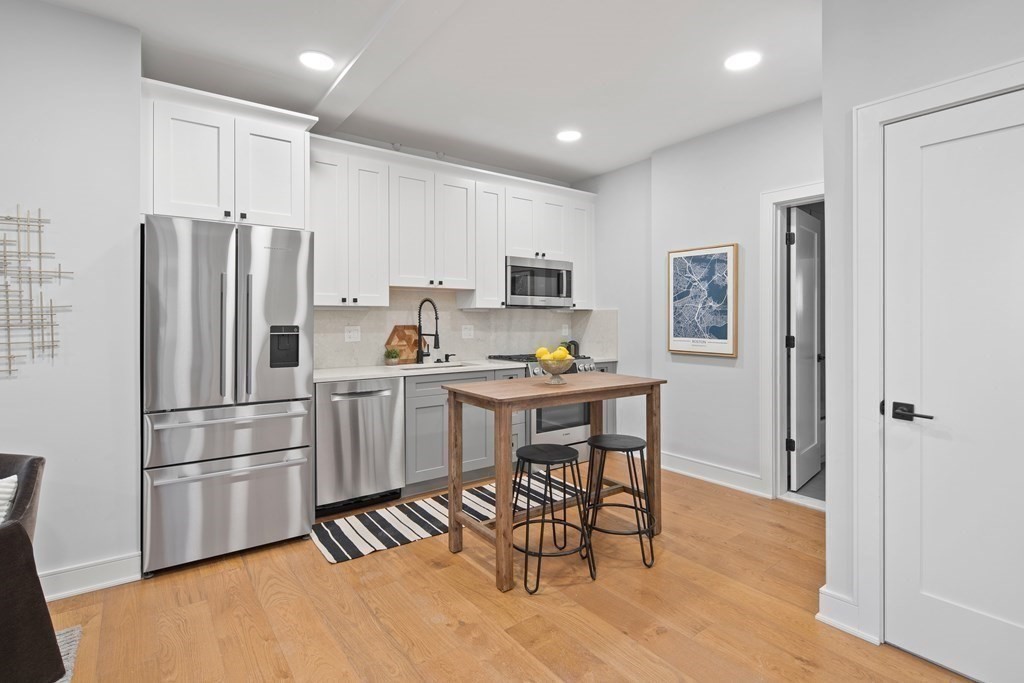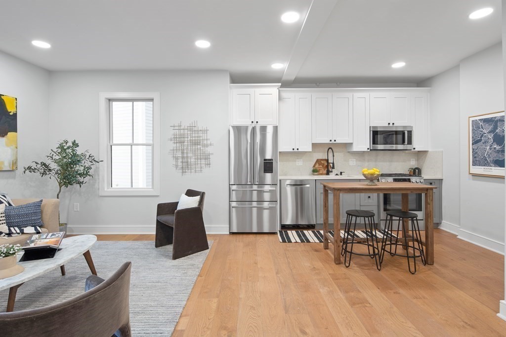 Discover this 1 bed, 1 bath, first floor unit in vibrant Inman Square. Finished in 2024, the apartment is set back on the street to balance the prime location while offering peace and quiet. The unit features an open layout seamlessly connecting the kitchen and main living area. The kitchen includes stainless steel appliances — dishwasher included — and two-tone shaker cabinets for ample storage. The spacious bedroom provides a comfortable retreat, complete with a large closet for generous storage options. One sleek, updated bathroom features a bright white vanity and tub with glass doors. In-unit laundry and central A/C complete the unit. This location offers easy access to local dining, shopping, and public transportation in one of Cambridge's most desirable neighborhoods. AVAILABLE SEPTEMBER 1!