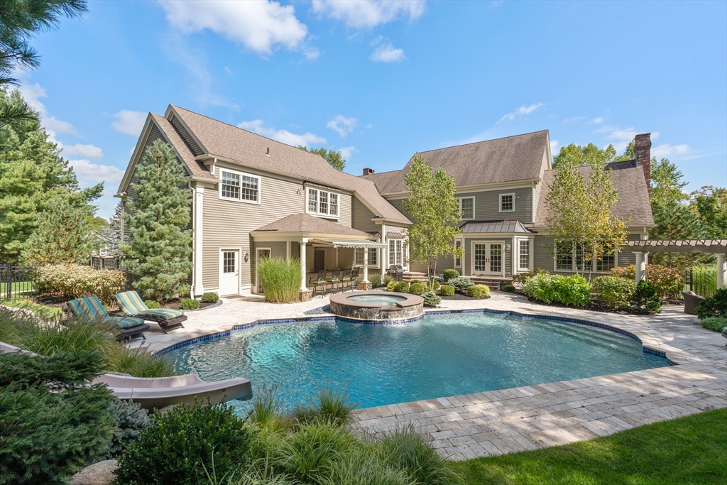 Majestically sited on a beautiful lot in Willis Hills Estates, this stately Colonial is distinctly built with custom craftsmanship inside & out. Offering an exceptional outdoor oasis with in-ground pool, hot tub, pool house, outdoor fireplace & a private pro-grade astroturf soccer field with full-size goal. Thoughtfully designed for everyday living & entertaining. The centrally located chef’s kitchen boasts white cabinetry, Wolf & Sub-Zero appliances, large island & separate breakfast area opening to a stunning family room with soaring ceilings, expansive windows & a stone fireplace. A custom mudroom provides storage for six! One of two staircases leads to the primary suite with luxurious bath & California Closet, plus four more bedrooms & two full baths. The finished lower level by Acton Woodworks reflects the home's quality with custom woodwork, handcrafted bar, wine closet, a home theater, gaming area & a guest room with full bath. A rare chance to own a special property!