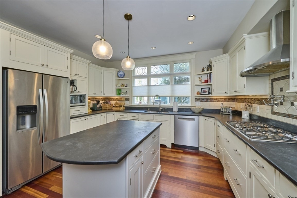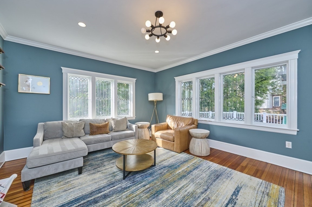 Exceptional offering in one of Newton’s most coveted neighborhoods. This beautifully renovated and expanded American Foursquare blends timeless architecture with sophisticated modern luxury. A grand front entry introduces oversized, elegant entertaining spaces with soaring ceilings, classic beams, rich hardwood floors, and a custom fireplace. A thoughtfully designed open floor plan offers seamless flow for everyday living and refined entertaining. Designer chef’s kitchen showcases premium appliances, expansive island, custom cabinetry, and sun-drenched breakfast area opening to a large private deck and beautifully landscaped grounds. Refined family and dining rooms, mudroom, and versatile living spaces enhance today’s lifestyle. Luxurious primary suite with walk-in closet and spa-inspired bath with soaking tub and walk-in shower. Expansive finished lower level and detached 2-car garage. Moments to Newton Centre, Crystal Lake, MBTA, shops, dining, parks, and top-rated Newton schools.