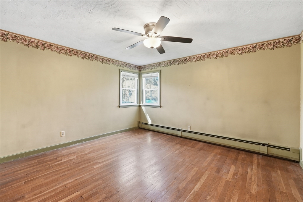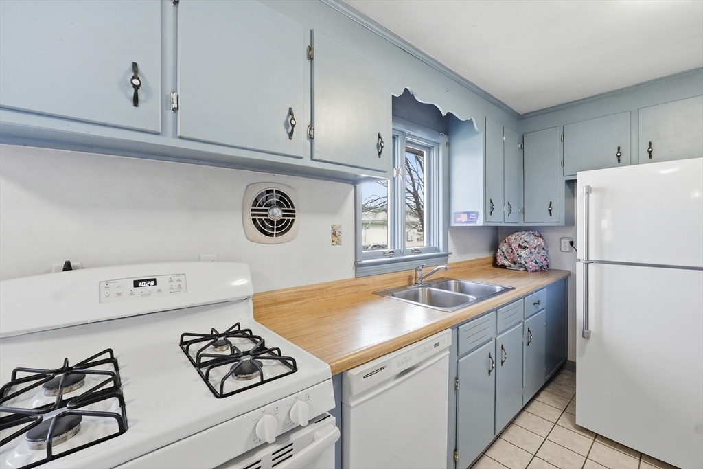 Charming 3-bedroom, 1-bath ranch built in 1955 offering a functional layout with an open kitchen and living room. Large fireplaced living room with a big picture window provides a bright and inviting space. Hardwood floors add warmth and character throughout the main living areas. Bedrooms are well-sized with a practical floor plan.Full basement provides ample storage, laundry area, and utility space. Walk-up attic offers additional storage and potential for future expansion.Situated on a dead-end street, the property features a nice yard with space for outdoor enjoyment, gardening, or entertaining.Convenient commuter location with easy access to major routes, shopping, restaurants, and local amenities.Great opportunity for buyers looking to build equity and make this home their own.