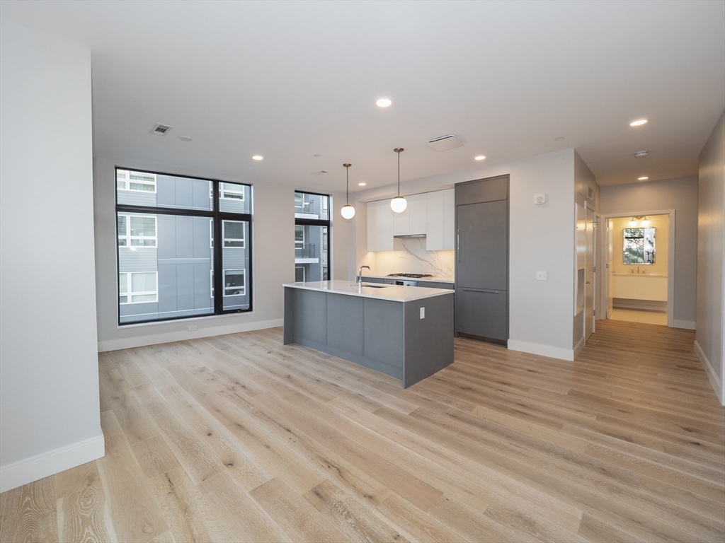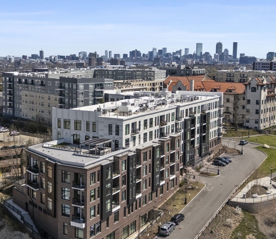 STRATUS RESIDENCES | Brand New Construction in 2022. Brighton's Premier Condo Building, Right Next to Saint Elizabeth's Medical Center. Unit #525, Perched High, 5th Floor, Corner Home with 3 Exposures! “East” in the MORNING, early Sunrises & “West” in the AFTEROON, evening Sunsets. Coffee or Wine, enjoy both, a PRIVATE TERRACE is Your SURENEEE OUTDOOR Space Not 1, YES "2 DEEDED PARKING" Spaces INCLUDED. The FULL TANDEM Row, EXCLUSIVELY 2-SPOTS, DIRECT Access, HEATED & Secure. Open-Concept layout across 1018 square feet, 2 Beds & 2 Full Baths. Designer Kitchen: BOSCH Appliances w/Gas Cooking & Upgraded Paneled Cabinets, Fridge/Dishwasher. Quartz Countertops. 11 Floor-To-Ceiling Windows! Hardwood Floors + W/D in Unit + Central A/C. Building Amenities: Professional Management+Elevators, Fitness Center+Yoga+Sauna, Library+Work Pods, Sky Lounge+Roof Deck, Fire Pits+Grilling Stations, Game Lounge+Billiards. PERFECT LOCATION, 0.2mi (T) Green Line, 0.4miles Whole Foods.