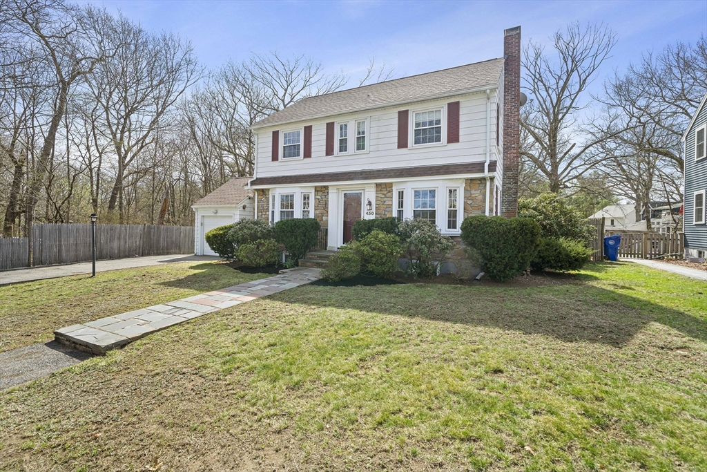 430 Eliot offers the chance to claim your place in a premier neighborhood and make it entirely your own. This classic 1940 Colonial sits on a generous lot and offers a terrific layout. The main level features a convenient mudroom, an open kitchen/dining area, a sunny family room with vaulted ceilings, and a formal living room. Upstairs features three bedrooms with ample closets. The lower level adds meaningful bonus space as a rec room, home office, gym, or guest suite. The yard is level, fully fenced, and features a patio made for entertaining. A separate section houses the in-ground pool, just in time for summer. The Columbines is one of Milton's most desirable neighborhoods, consistently drawing buyers who prioritize walkability, green space, and proximity to Boston. This home abuts Shields Park, one of the area's most beloved community spaces. Enjoy easy access to Capen Street T stop, Turners Pond, Glover School, Steel & Rye, and the shops and everyday amenities of Milton Village.