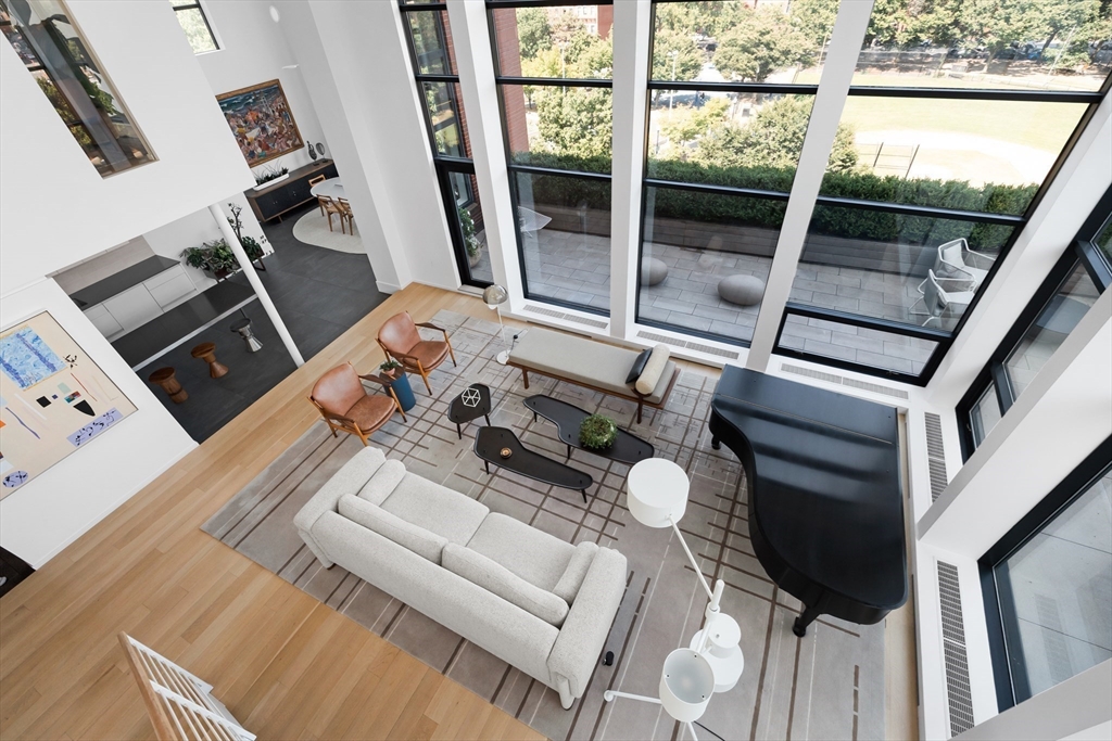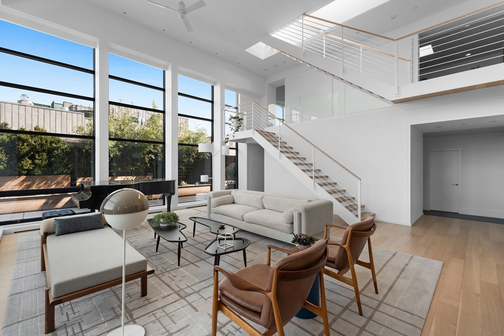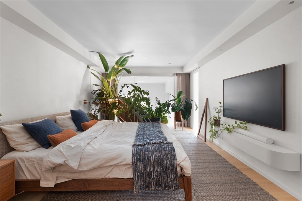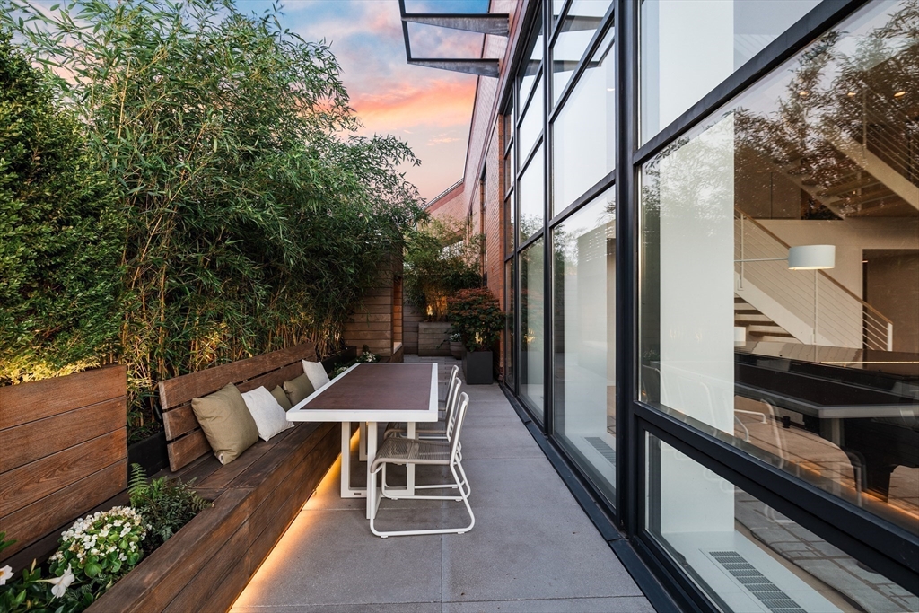 This serene 3-bedroom + den, 2.5-bath trophy penthouse features Landmark Protected skyline views and a landscaped Brazilian IPE hardwood roof deck. With top-quality fixtures and finishes, including Italian Pantano marble, Hestan, Miele, Nanz, and hand-painted wallpaper, this bespoke apartment stands apart from typical new developments, balancing luxurious form with functionality. Spanning 2,808 sqft of interior space and over 2,400 sqft of exterior living, the penthouse boasts 18+ foot ceilings and advanced technology, including fully automated Lutron shades and invisible in-wall speakers throughout. Additional highlights include a soundproof primary suite, radiant heat flooring, a 5.1 surround sound theater, a gas fireplace, and a custom 500 lbs Krieger front door. The outdoor kitchen, temperature-controlled wine storage, vintage teak built-ins, mini home gym, and EV charger-approved parking make this an exceptional offering, showcasing one of the finest renovations in the South End.