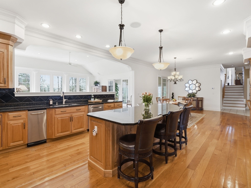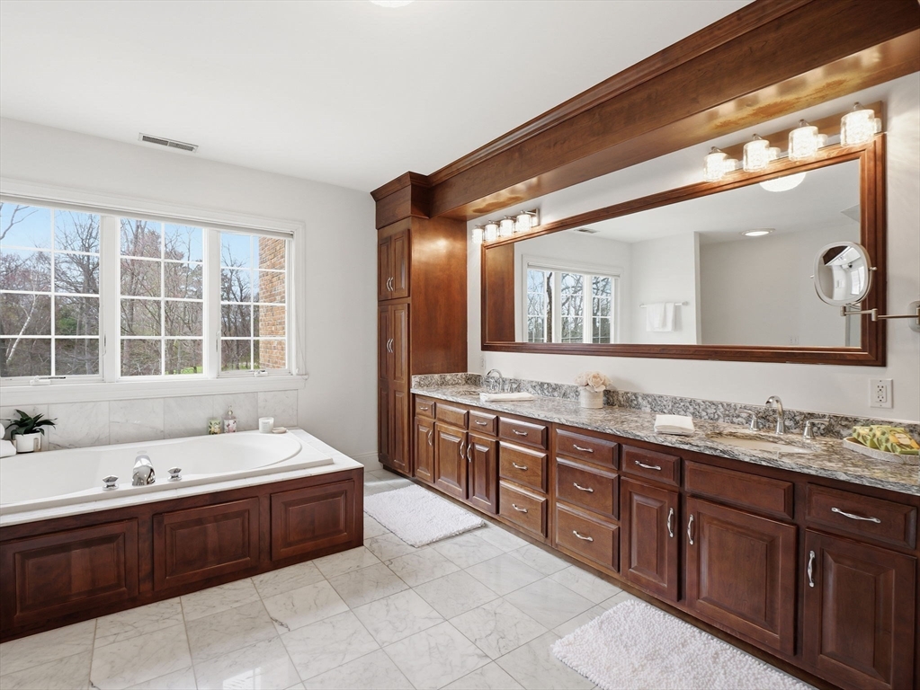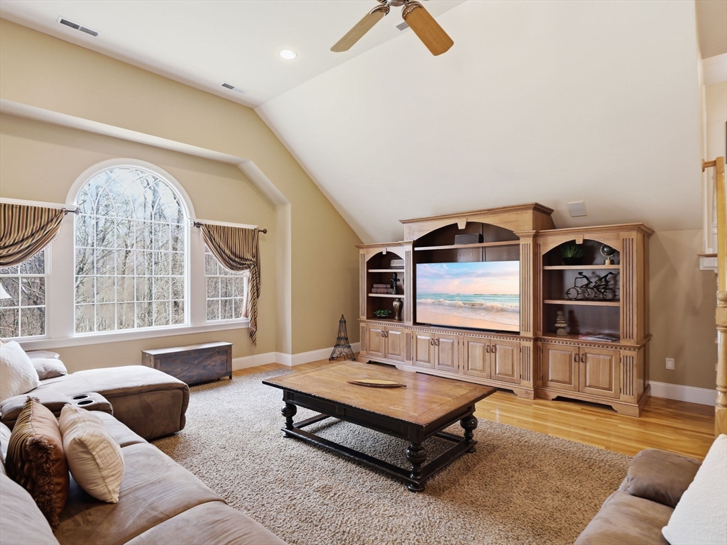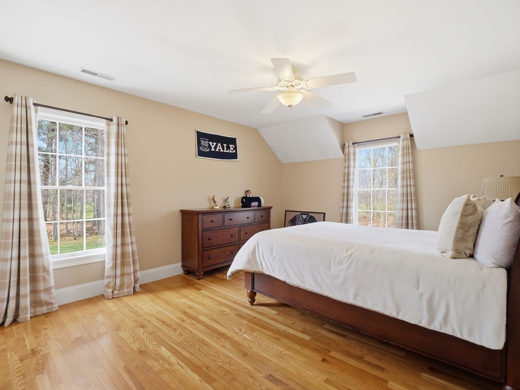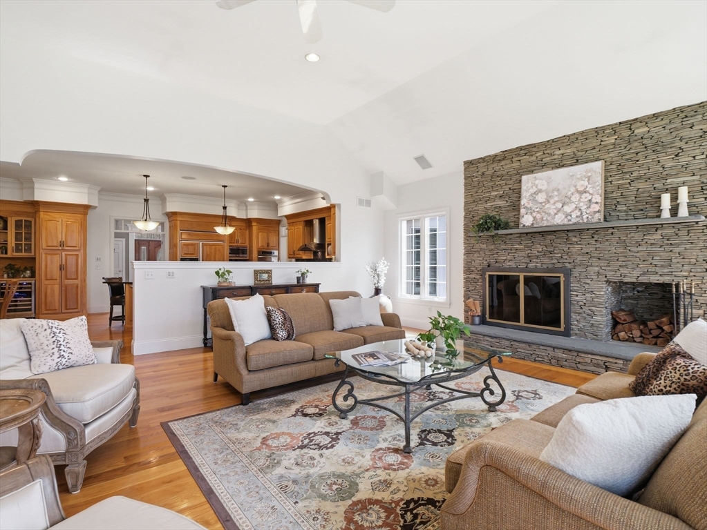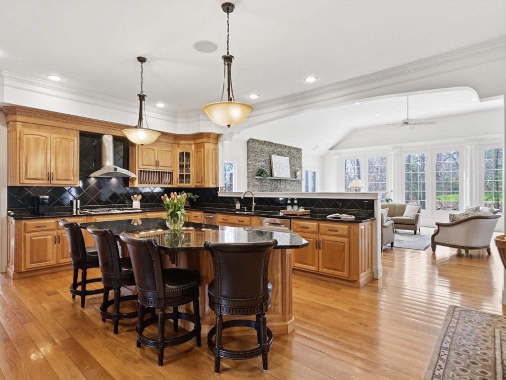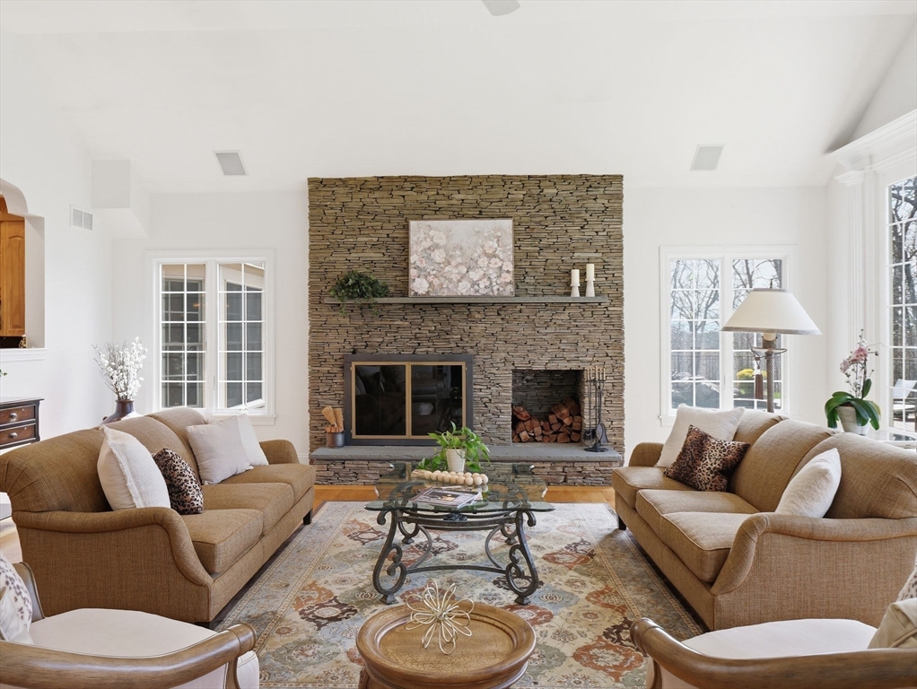 Welcome home to this LUXURY Boxford Colonial home, set on over 6 acres abutting Far Corners Golf Course. This 5 bedroom, 4.5 bathroom estate offers vacation style living at its finest, anchored by a stunning heated Gunite in-ground pool with waterfall. Inside, a sunlit gourmet kitchen, formal living with fireplace (with fresh interior paint) spacious family rooms, and a soaring 2nd floor Great Room with cathedral ceilings set an elegant tone. Four bedrooms enjoys there own private bath, while the primary suite (with fresh interior paint) features a walk-in closet and spa-inspired bath. The walk-out lower level offers a custom dance studio, media room, and dedicated entertainment space. Outside, the pool, spa, firepits, multiple patios, and professionally landscaped gardens create a truly private outdoor sanctuary. 3 car garage and plenty of guest parking. Convenient Route 95 access, and a coveted cul-de-sac setting make this a rare opportunity not to be missed.