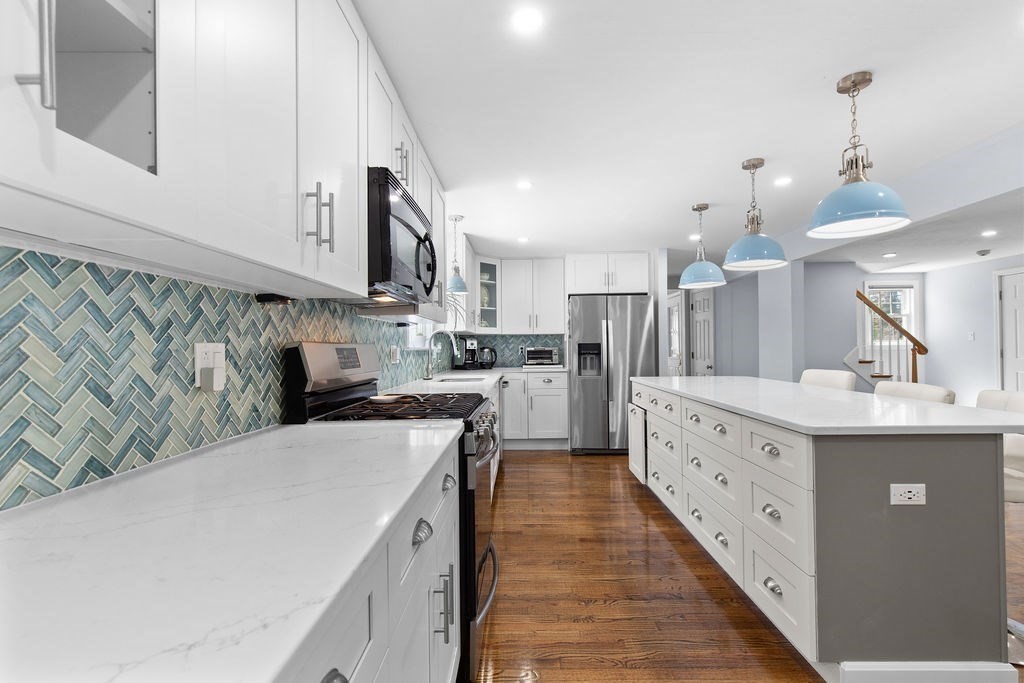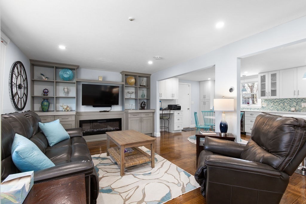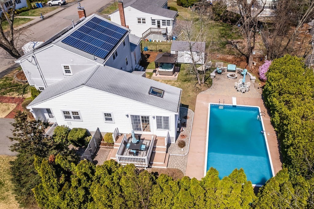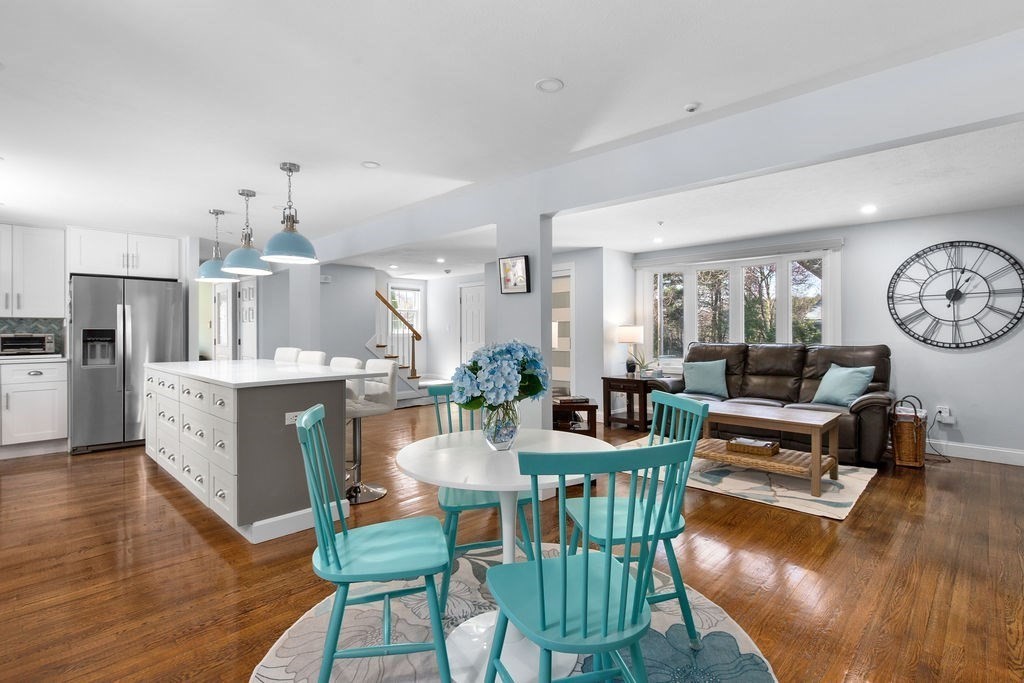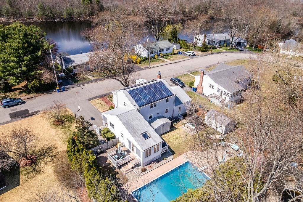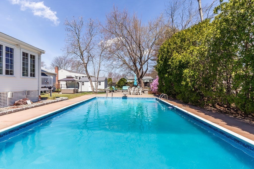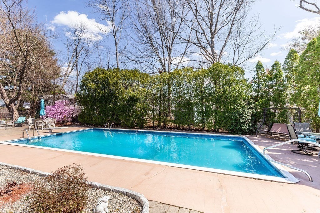 Welcome to a home where everyday living feels like a getaway. Thoughtfully designed for both entertaining and multigenerational living, this beautifully maintained 4bed, 2.5bath home offers the space and flexibility today’s buyers crave. The heart of the home is a stunning renovated kitchen with white shaker cabinets, oversized island and hardwood floors, flowing effortlessly into inviting living spaces and a sun filled 3 season room. Step outside to expansive deck space overlooking your private backyard oasis, perfect for summer gatherings or quiet evenings at home. Upstairs, 4 generously sized bedrooms provide comfort for all. The finished lower level adds even more versatility with a pool table room w/ fireplace, library, full bath and laundry. Complete with a heated pool, hot tub and fire pit, all set across from a peaceful pond and offering a commuter’s dream location with easy access to Boston, major hwys and public transportation, this is the home you have been waiting for!