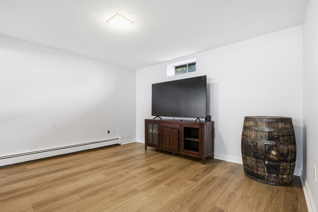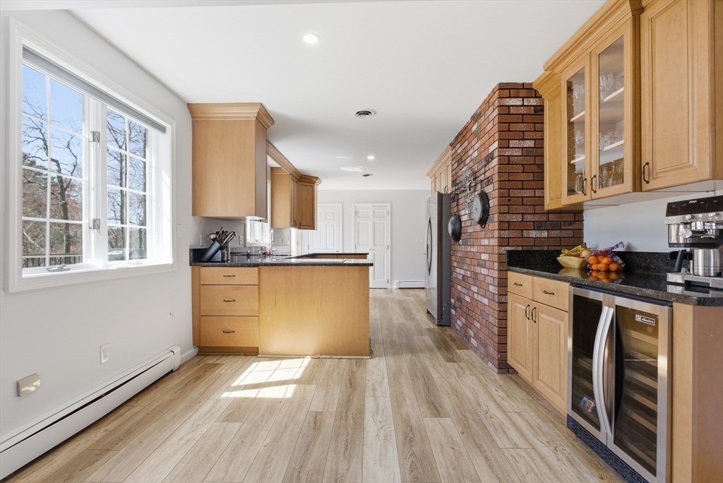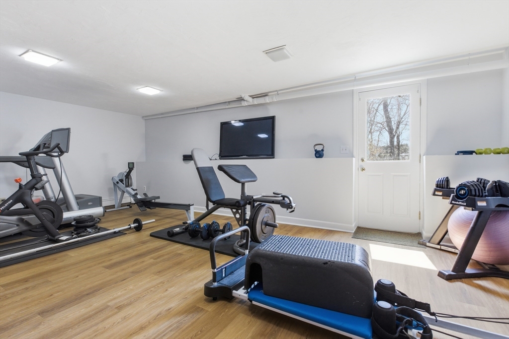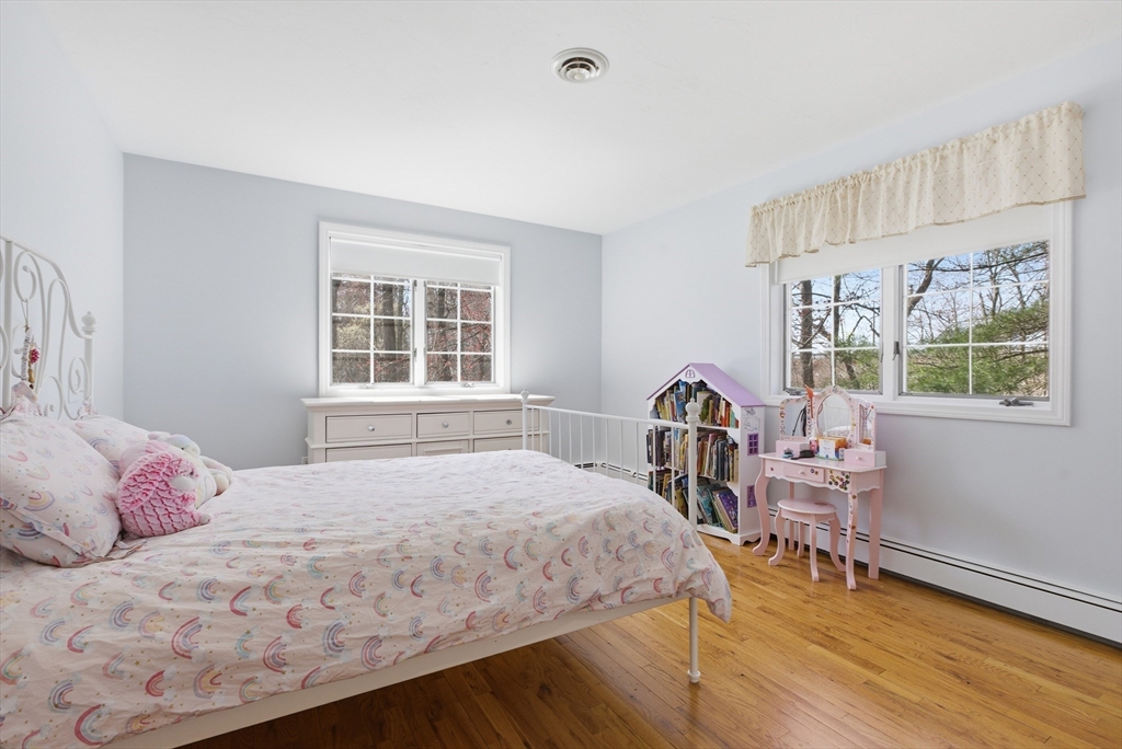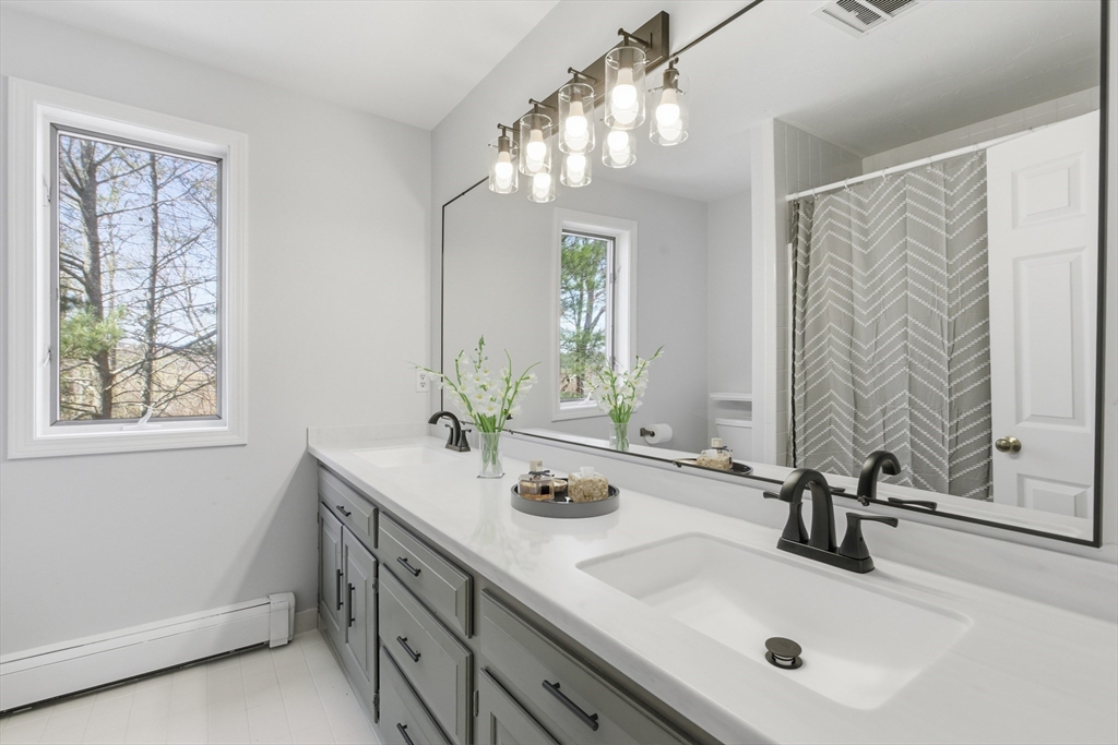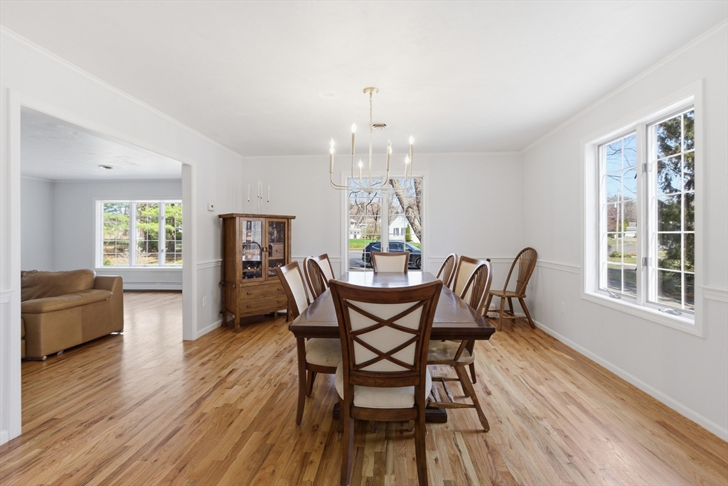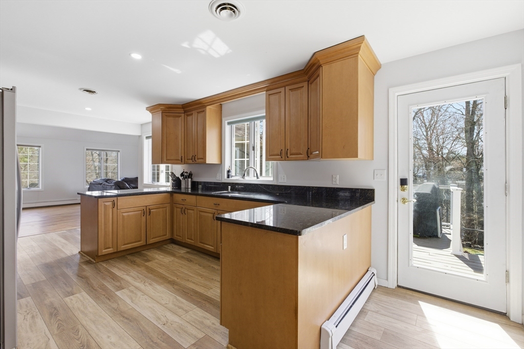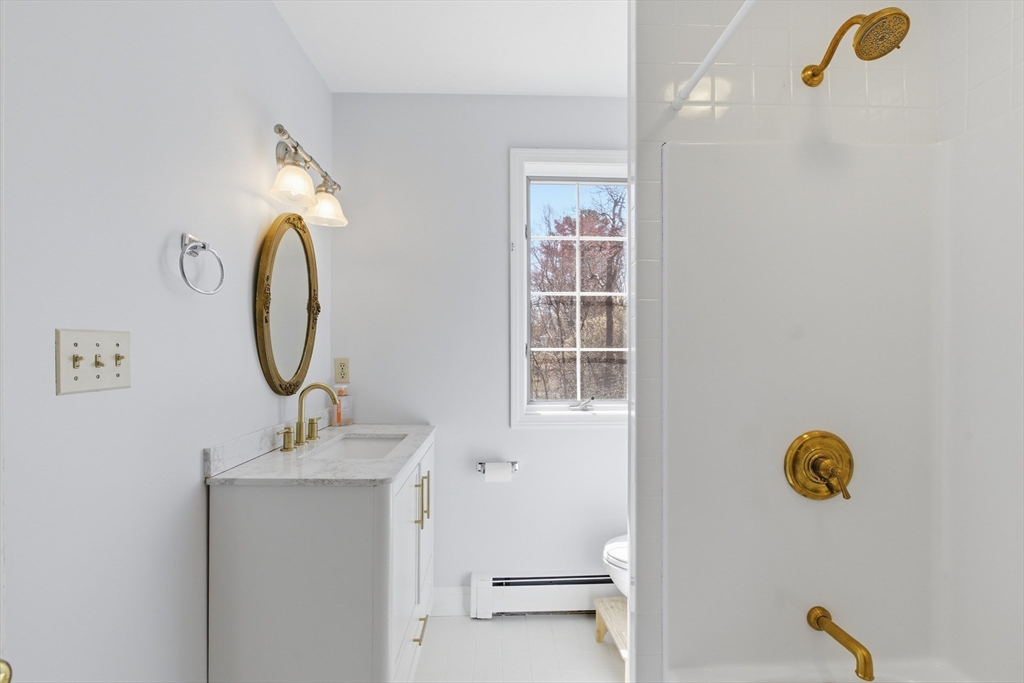 Welcome to 28 Lancelot Court, an exceptional, sun-drenched residence on Guild Pond (adjacent Willet Pond), set on a cul-de-sac. This expanded ranch/cape offers elegant single or two-floor living with generous scale for family needs. The main level features two living rooms, a formal dining room, an office, two large bedrooms, a half bath and full bathroom, plus a newly remodeled primary suite with en suite bath. The suite boasts an oversized walk-in closet with custom built ins and a luxurious primary bathroom. The massive primary bathroom shower features heated flooring, an L-shaped bench, 8 foot floor to ceiling tile, and 8 spa-like shower heads. The second floor provides two oversized bedrooms and an additional full bath. The fully finished walk out lower level — with mudroom, gym, full bath, game room and expansive family room — presents turnkey potential for an in law suite or ADU with no interior stairs required. Enjoy serene, panoramic views of Guild Pond from the rear deck.