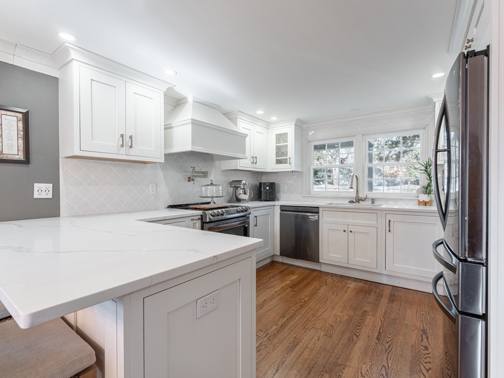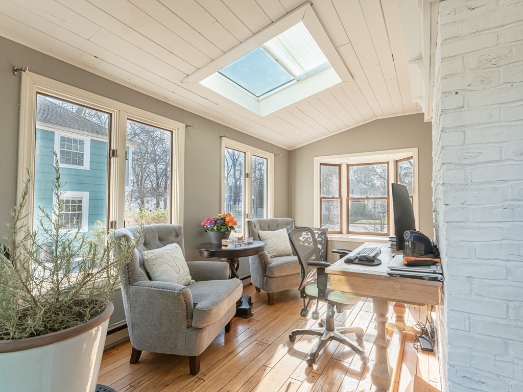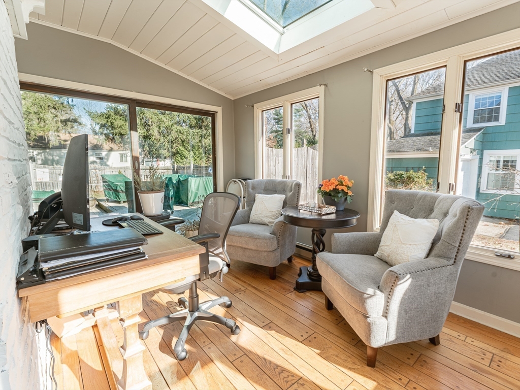 Well-maintained three-bedroom home with a two-car garage located in one of Springfield’s most desirable neighborhoods. The home features hardwood floors throughout and plenty of living space. The main level offers a spacious layout with a half bath, kitchen, dining room, and a formal living room featuring a fireplace and custom built-ins. Just off the living area is a bright family room with a bay window, skylight, and sliding glass doors leading out to the backyard. The main level also includes a sunroom currently being used as a home office. Upstairs you will find three generously sized bedrooms and a full bath. The lower level includes a finished room with custom shelving and recessed lighting, along with an additional separate room that could be used for a playroom, or flexible living space. The backyard features a heated in-ground pool, perfect for relaxing or entertaining this summer!