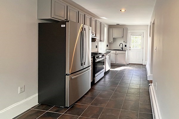 Great 2 Bedroom, 1 Bathroom apartment with direct entrance off a quiet side street near Porter Square. Newly remodeled with refinished hardwood flooring, updated LED lighting, and modern black finishes throughout. Updated kitchen features refinished cabinetry, and stainless steel appliances (full-size french door refrigerator, gas stove, dishwasher) Updated bathroom has new stone look flooring, freshly reglazed tub and tile, with all new bath hardware and lighting. Unit comes with private laundry in the basement, private rear deck, living room, and two good sized bedrooms. Off-street parking may be available for additional rent. No dogs, please. Cats allowed (up to 2 per apartment) Pet rent is $25.00 per pet monthly. **First Month’s rent deposit due with application. Full Month Security Deposit due within 3 business days if approved.**