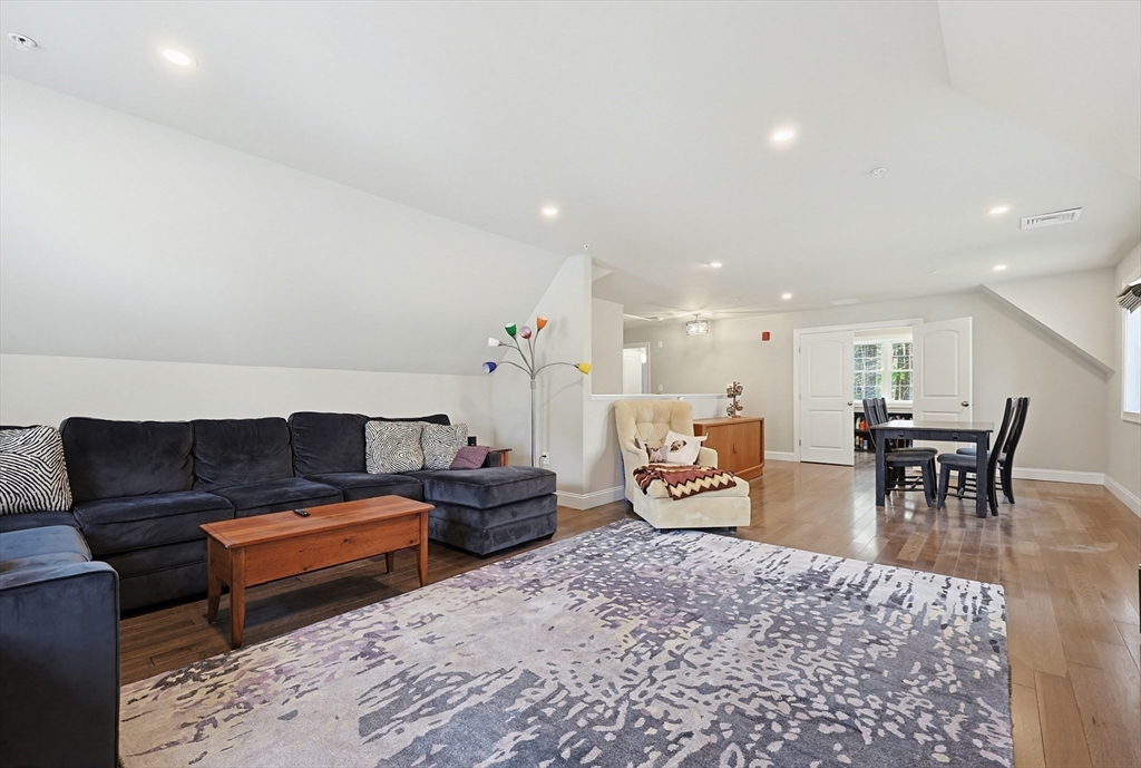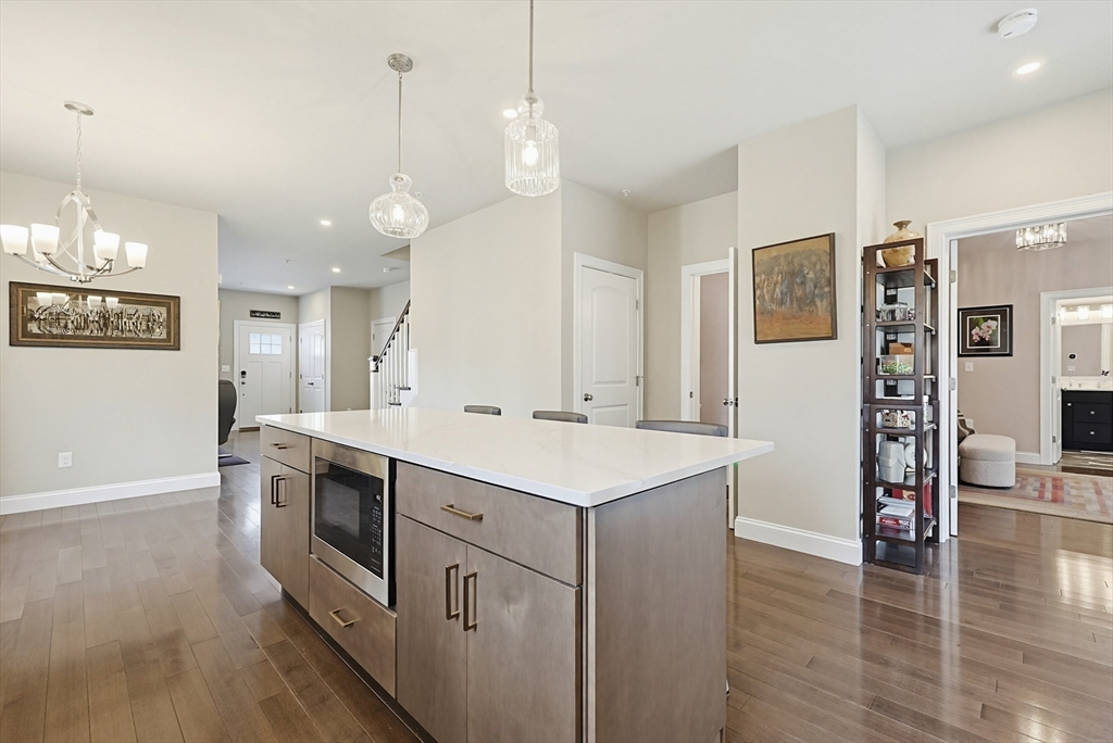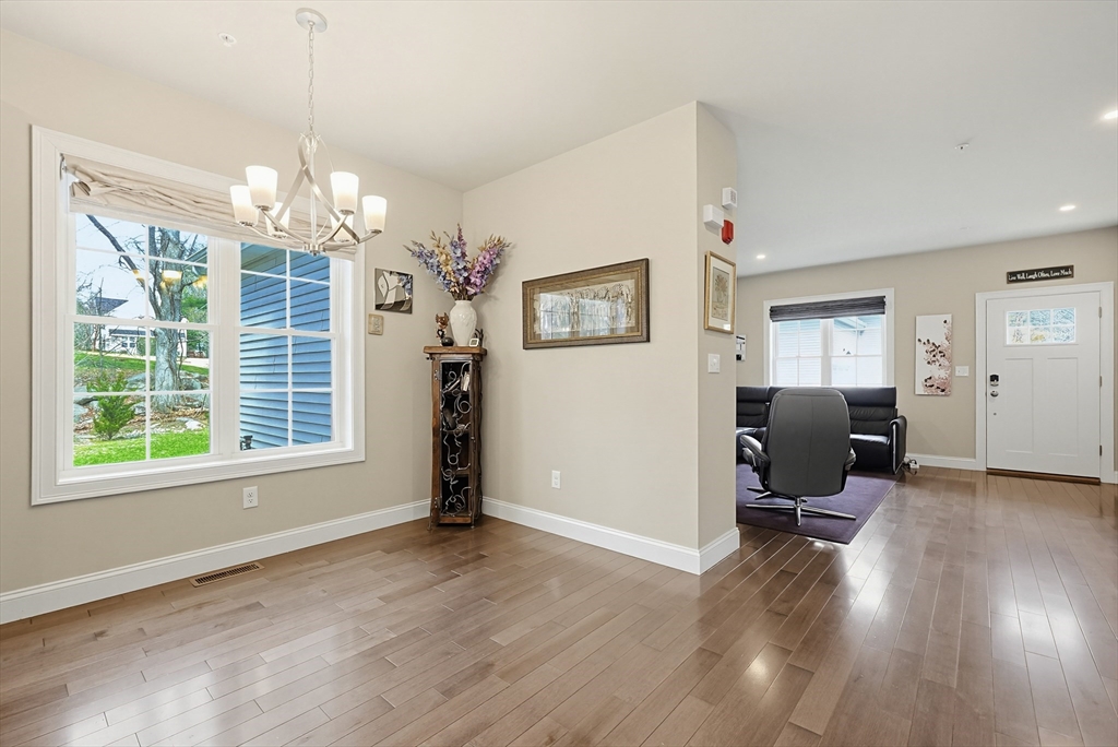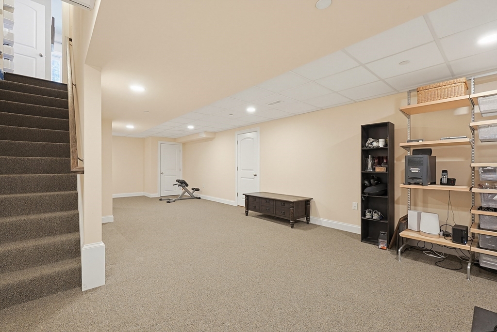 Those seeking an exceptional condominium with all the bells and whistles in absolutely move in condition will want to see this spacious unit. First floor main bedroom with tile shower. Open first floor with hardwood floors and gas fireplace. Expansive second floor with two bedrooms, large loft, laundry, office, and full bath. Professionally finished basement with two large rooms and plenty of storage. Large paver patio with lots of privacy. All kitchen and laundry appliances included. All window treatments included. Easy access to shopping, interstate 495, and MBTA commuter rail to Boston.