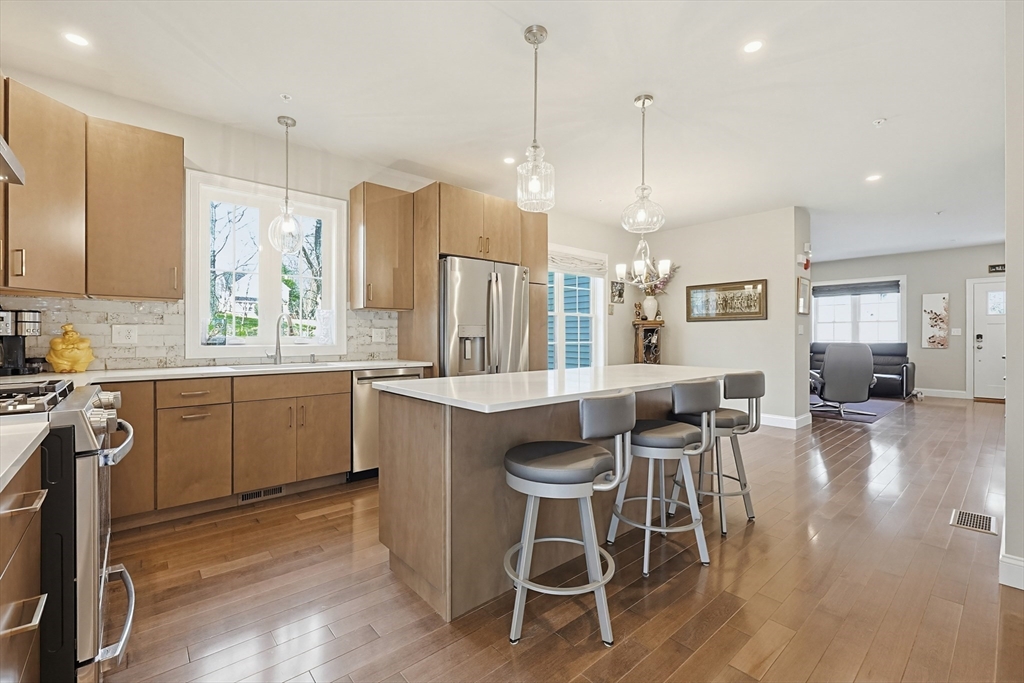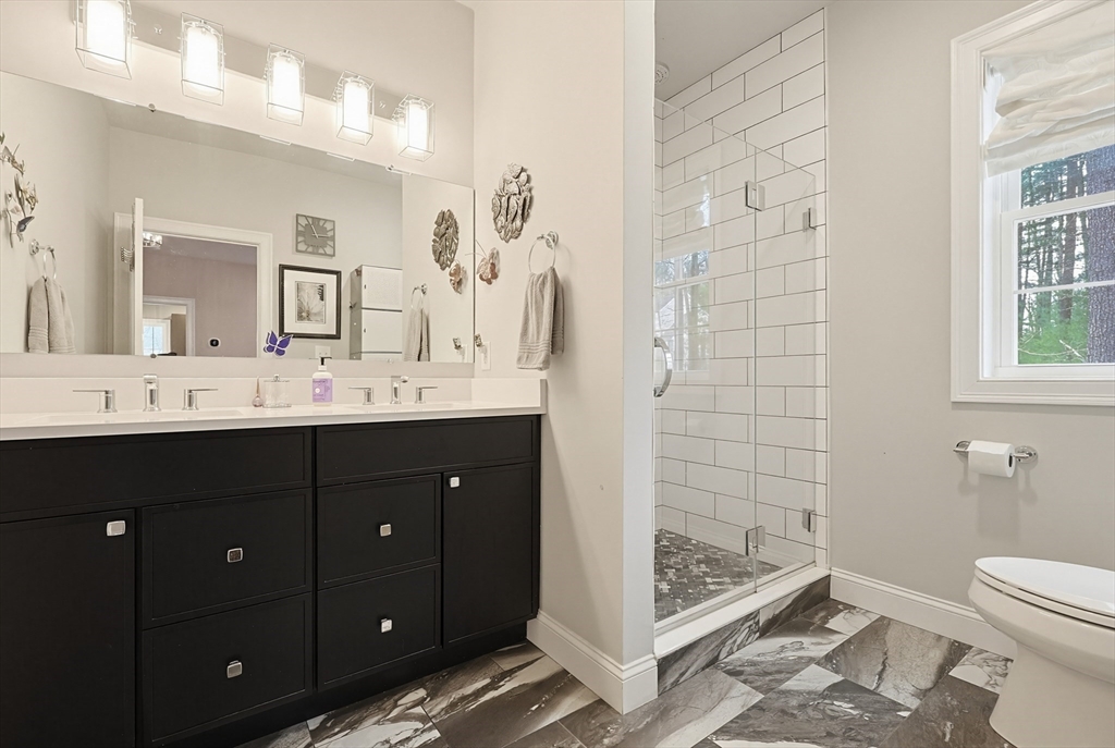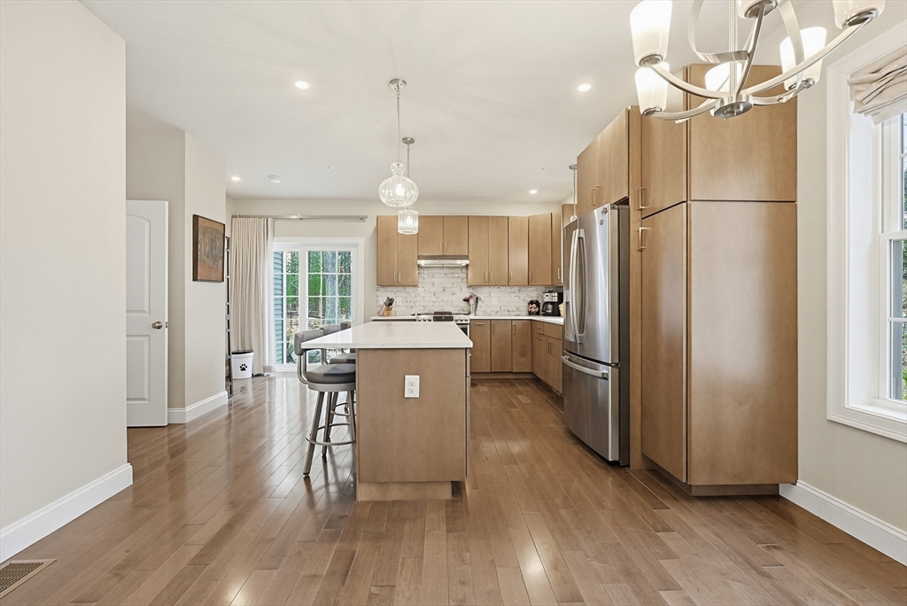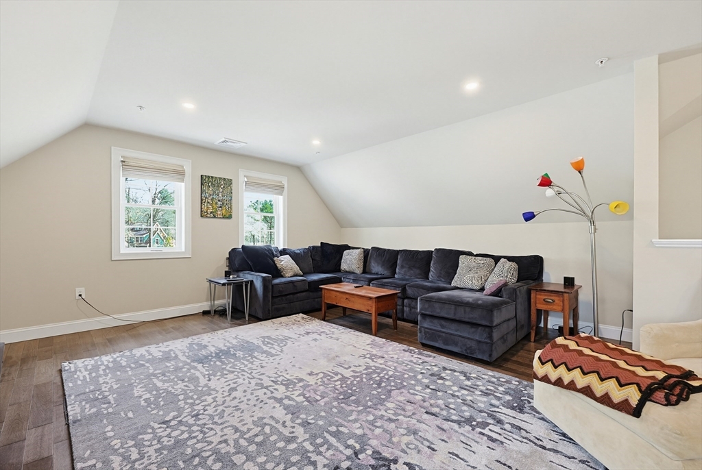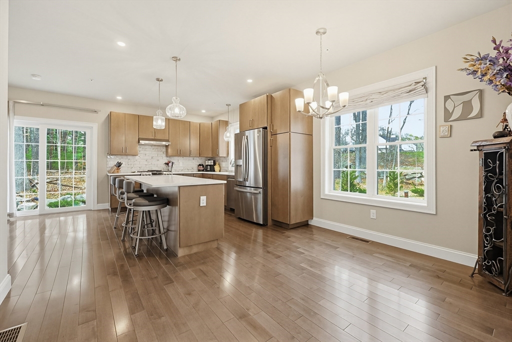 Those seeking an exceptional condominium with all the bells and whistles in absolutely move in condition will want to see this spacious unit. First floor main bedroom with tile shower. Open first floor with hardwood floors and gas fireplace. Expansive second floor with two bedrooms, large loft, laundry, office, and full bath. Professionally finished basement with two large rooms and plenty of storage. Large paver patio with lots of privacy. All kitchen and laundry appliances included. All window treatments included. Easy access to shopping, interstate 495, and MBTA commuter rail to Boston.