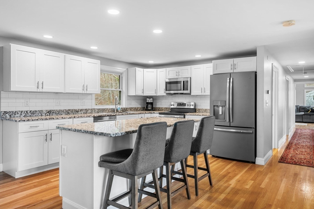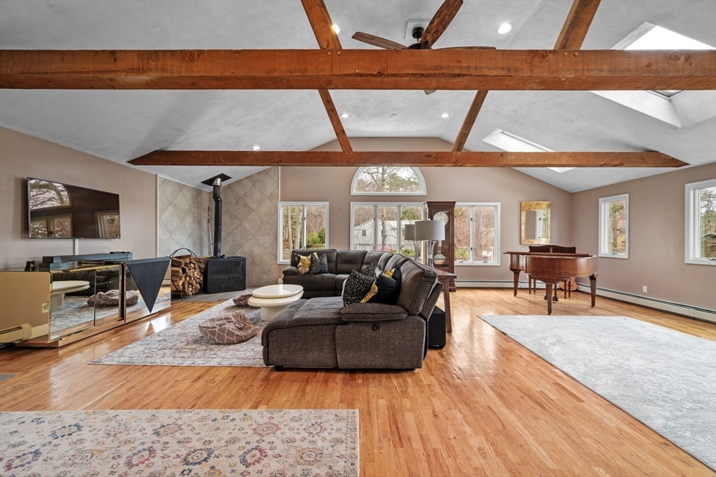 *Open Houses Sat & Sunday 1:00-2:30 pm* Beautifully refinished split-level on Lake Chebacco — where every day feels like a vacation! Directly across from the water, with stunning lake views, enjoy swimming, boating, water skiing, fishing, and ice skating, with water access nearby. Inside, an updated kitchen and a showstopping 24x30 family room with hardwood floors, soaring vaulted ceilings, wood beams, and gorgeous lake views set this home apart. Three bedrooms plus 2 versatile bonus/flex rooms in the lower level, a 2-car garage, dual driveways with up to 8-car parking, and a spacious backyard round out this incredible retreat. Launch a kayak down the street or use the free public state boat ramp on Chebacco Road for larger boats. The roof and many windows were replaced within the last 5 years. Brand-new septic to be installed post-closing, paid by sellers from post close escrow account. Offers can be made subject to septic design. *All Offers Due For Seller Review April 28th by 1 pm*