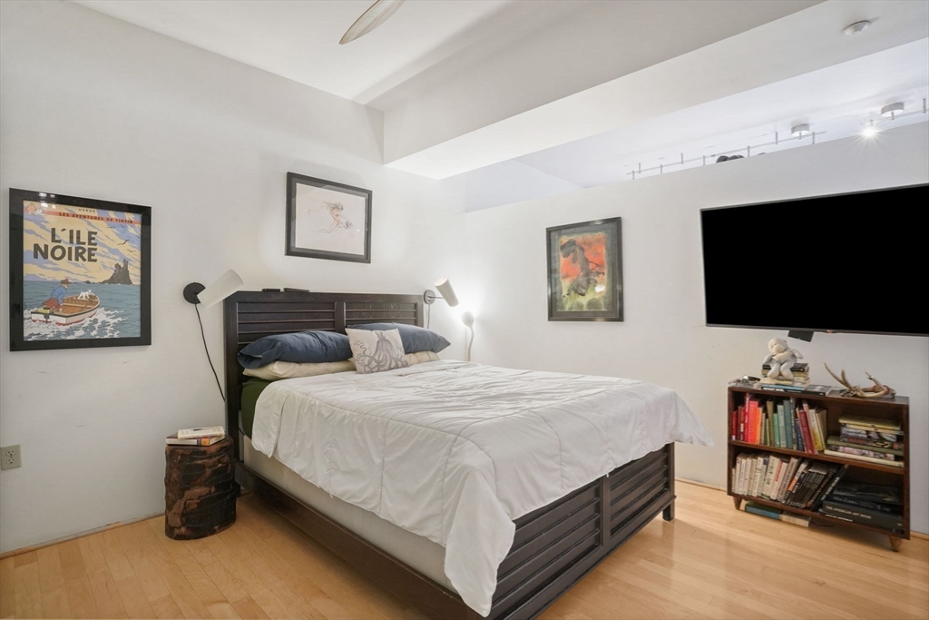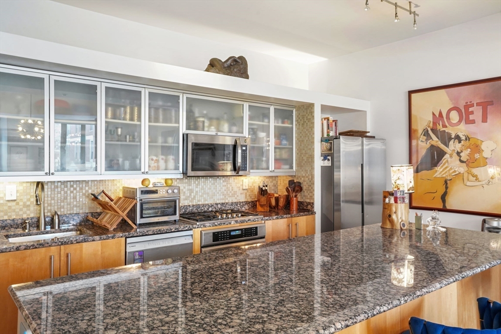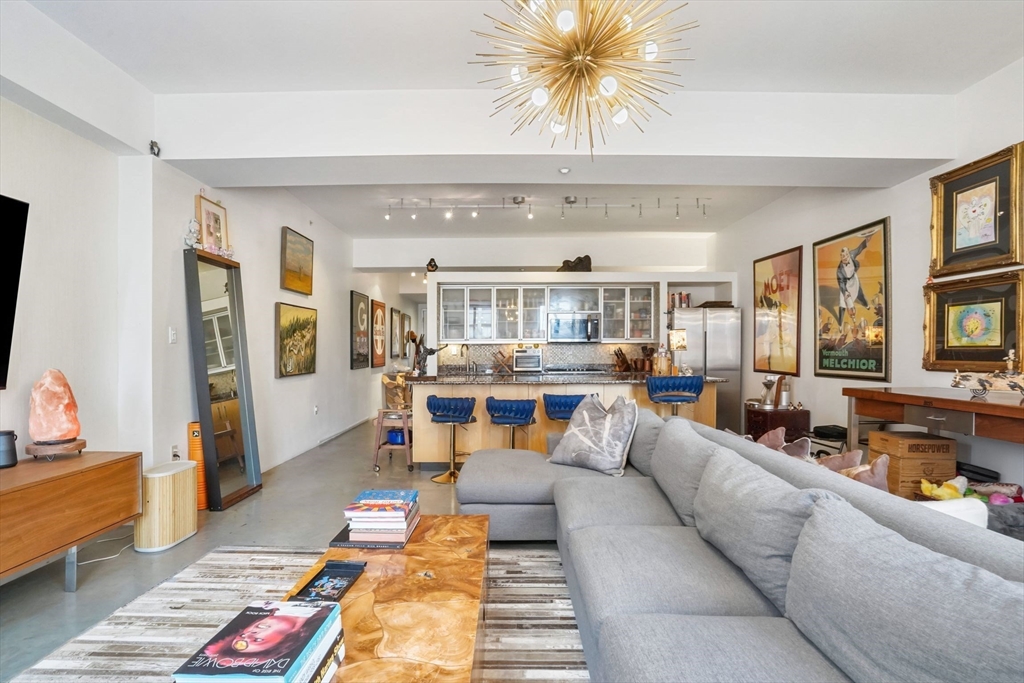 Located on the second floor, this refined urban dwelling features exceptional natural light through expansive windows and a favorable southern exposure. The interior is designed with a modern chef’s kitchen, including a large center island, a custom wine fridge and generous storage, which flows seamlessly into the open living and dining areas. The space is further enhanced by high ceilings, central air, a large coat closet, and sleek polished concrete floors throughout.As a resident of Wilkes Passage, you will enjoy the benefits of a professionally managed elevator building. The amenities include a 24/7 concierge, on-site management, a beautifully landscaped common terrace, and a rooftop deck offering panoramic city views. The property is ideally situated in the heart of the South End, providing immediate access to local cafes, restaurants, and shopping.