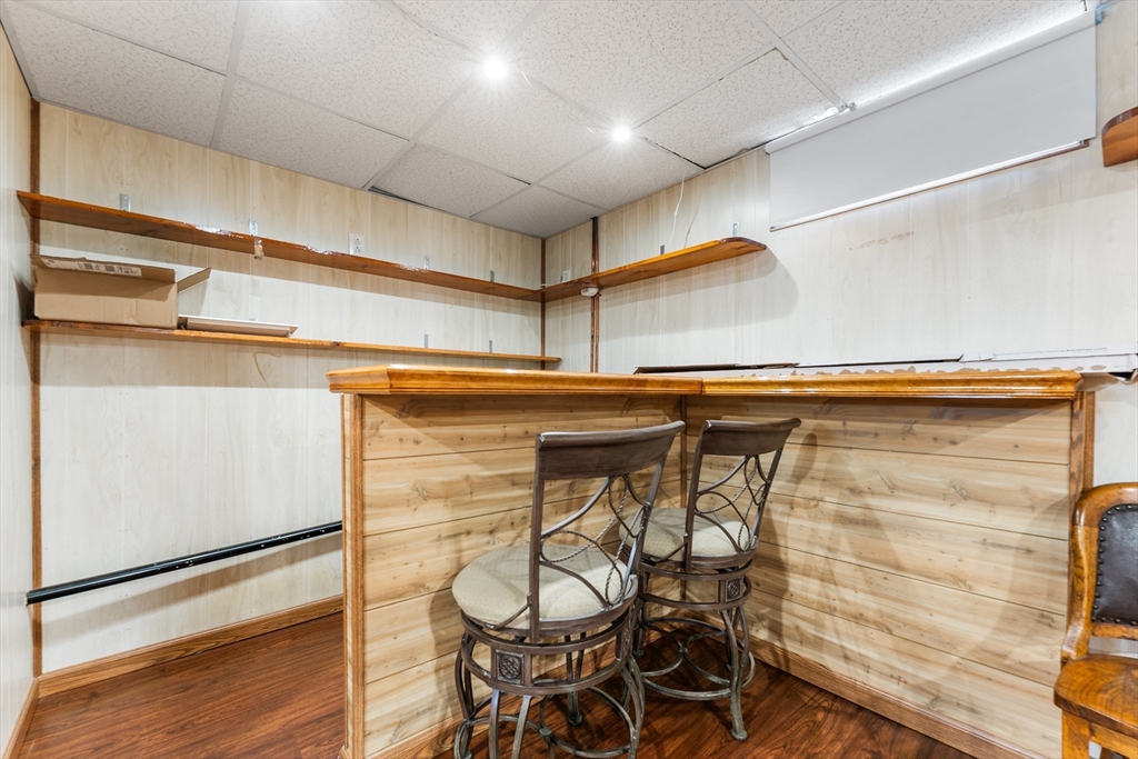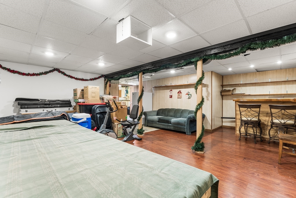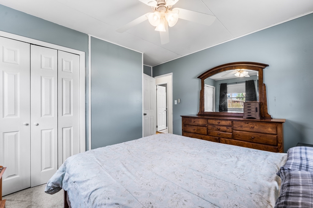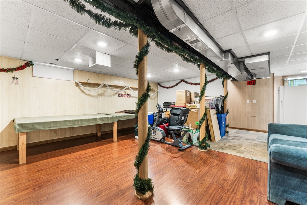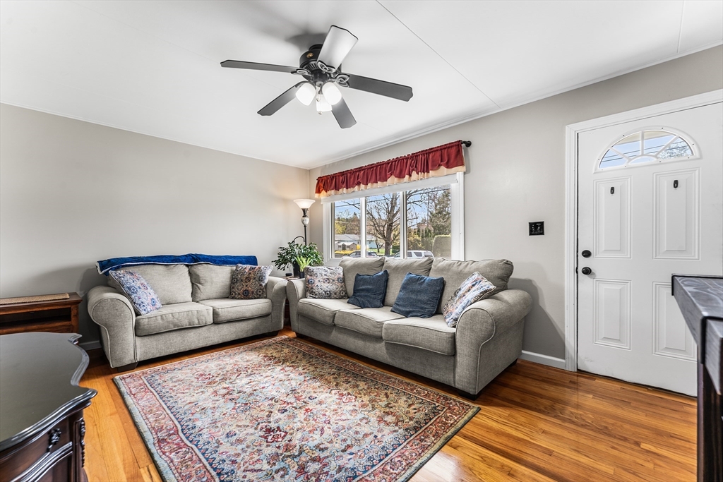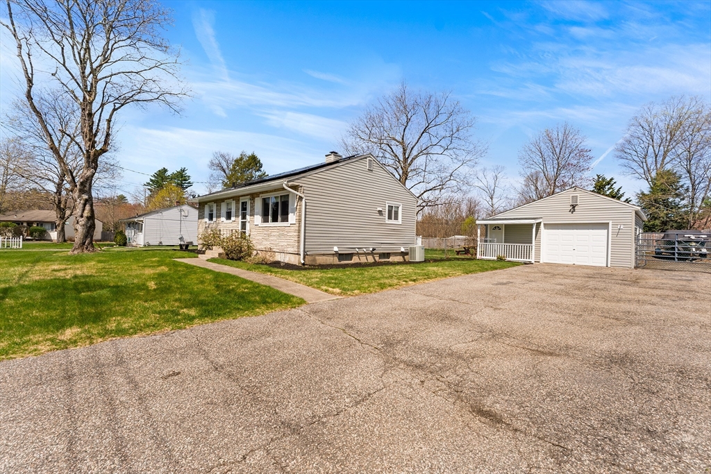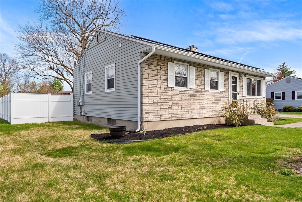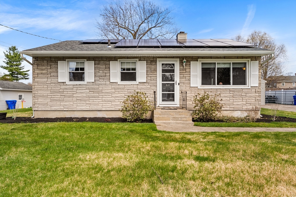 Welcome to 64 Rochford Cir, a move-in ready ranch on a quiet side street in Sixteen Acres. This well-maintained home offers comfort, flexibility, and a convenient location. The updated kitchen features tile flooring, a modern backsplash, SS appliances, and ample cabinetry and workspace. A separate dining room provides versatility and could easily be used as a third bedroom. The bright living room includes a ceiling fan, and the full bath offers a whirlpool tub and separate shower. Both bedrooms include ceiling fans, with hardwood floors under the carpet. Enjoy central air and added living space in the finished basement with a wet bar, home theater area, half bath, and clean finished space. Outside features include a one-car garage, double-wide driveway, fenced yard with fire pit, and an exterior electrical hookup suitable for RV or EV use. Solar panels add efficiency, and a VA assumable mortgage may be available for qualified buyers. Convenient to schools, golf, and local amenities.