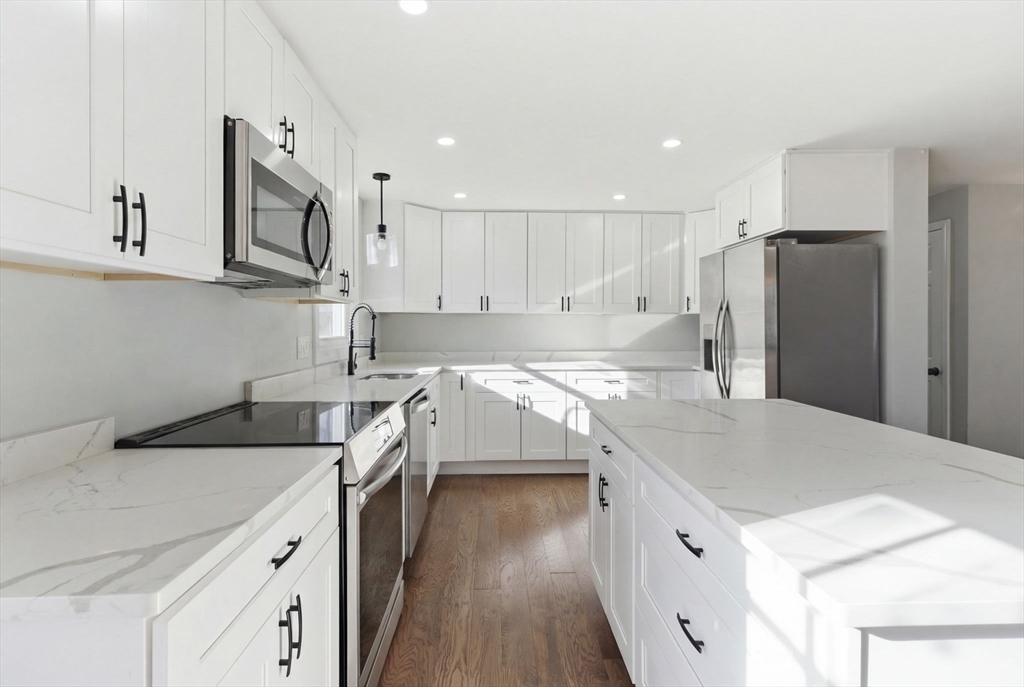 Welcome home! Walk into this inviting foyer and immediately feel the warmth of this property. This open concept split-entry has been completely remodeled and is ready for you to move in. Everything done within the last three years, roof, all windows replaced, electric upgraded, new HVAC system, kitchen done over, truly move in ready! Kitchen complete with large island, induction stove, stainless appliances, quartz countertops and an abundance of natural light! Large composite deck off the dining space overlooking your yard! All three bedrooms are located on main floor. Main bathroom brings style and functionality, fall in love with this color scheme and double vanity. Downstairs you have a large family room with office, full bathroom w/laundry and attached garage access! Fantastic neighborhood this property is a on a dead-end street and within a mile from Milford High School. Under a 10 minute ride to I-495 makes this home easily accessible as well! Are you ready to make memories here?