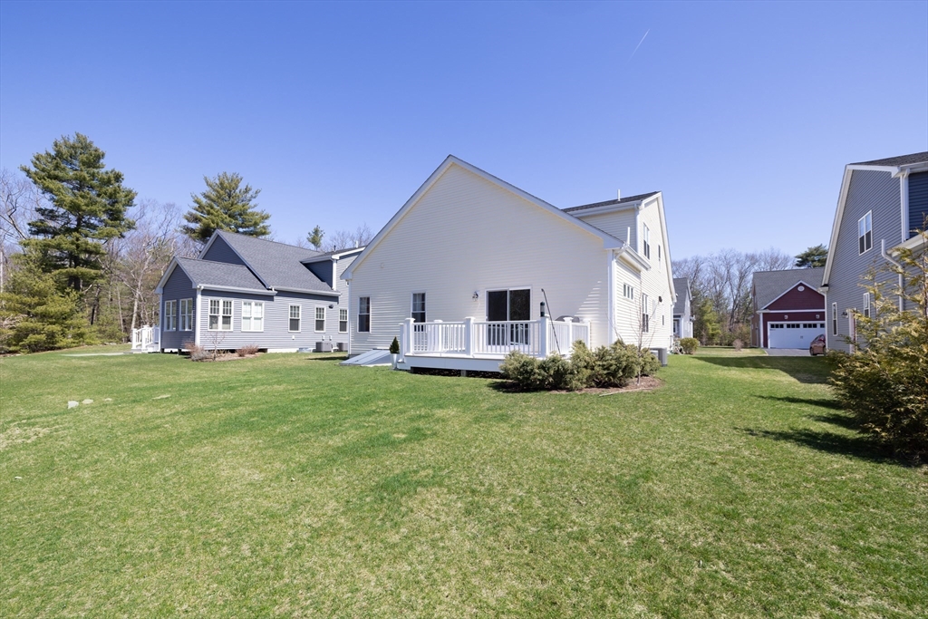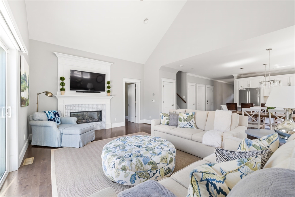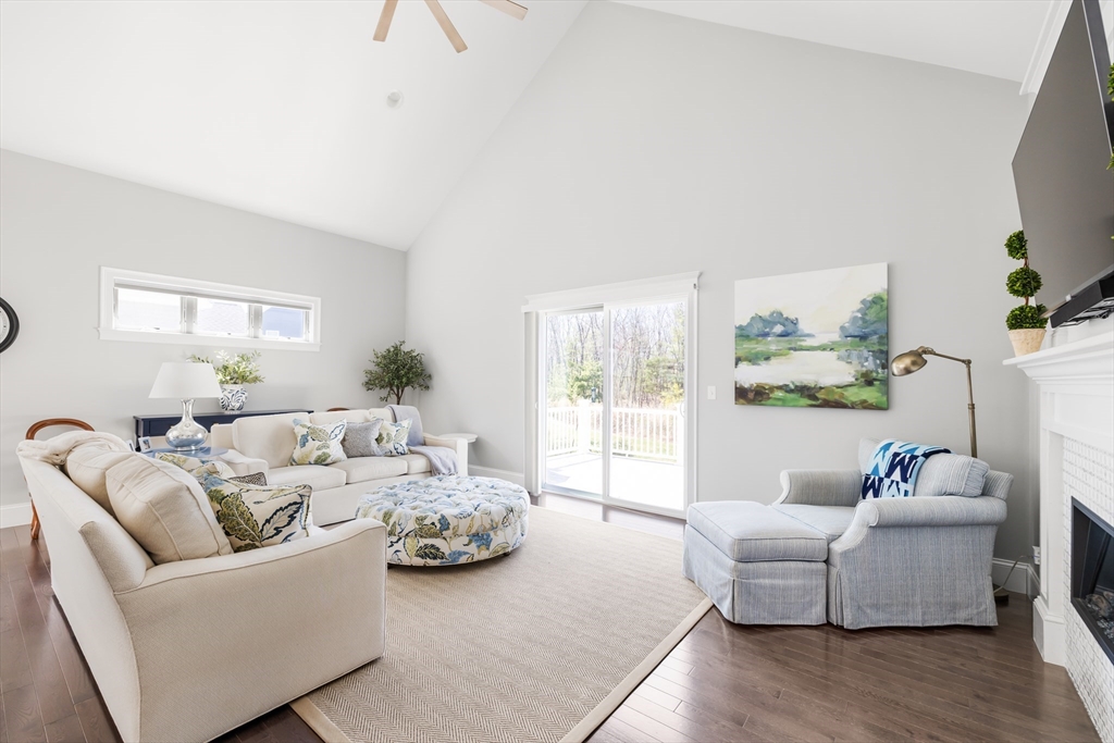 Welcome to Hollis Hills Preserve, a 55+ community constructed in 2021 and privately set in a serene Holliston location. This detached home offers a rare blend of privacy, tranquility, and low-maintenance living just minutes from Holliston Center. This beautifully appointed home features high-end finishes, quality craftsmanship, and a bright, open layout with soaring ceilings. The inviting living room offers plenty of natural sunlight and features a gas fireplace, vaulted ceiling, and slider leading to your private deck. The main level also includes a desirable first-floor primary suite, home office, ½ bath and convenient laundry. Upstairs offers a 2nd bedroom with attached bath, spacious light filled family room, and large bonus room for flexible living. Additional highlights include a two-car garage, ample storage, and a large unfinished basement for storage or future expansion. Enjoy peaceful surroundings with easy access to local shops, dining, and the Holliston rail trail. Come See
