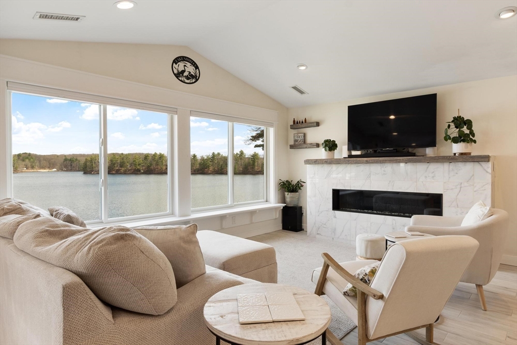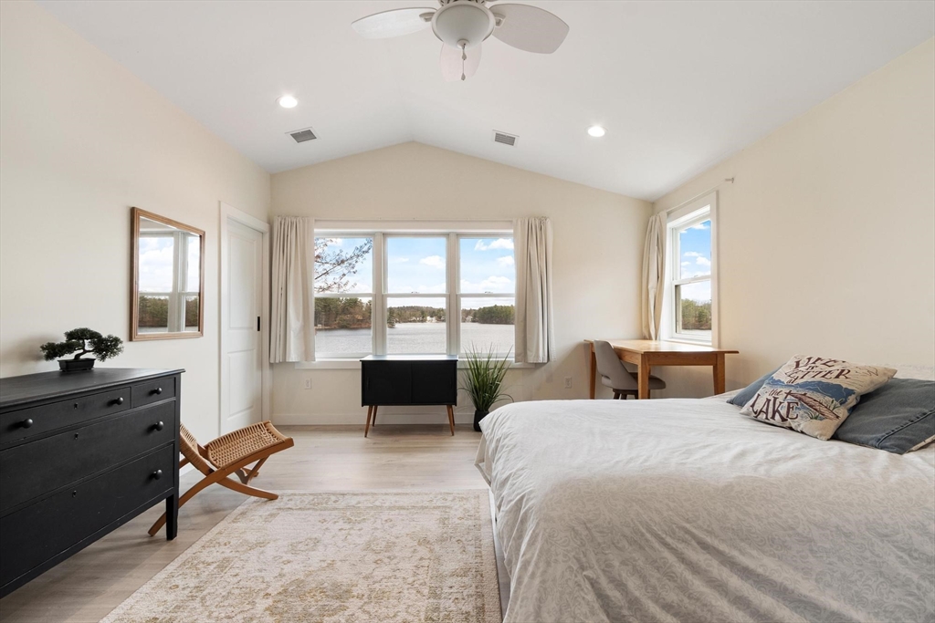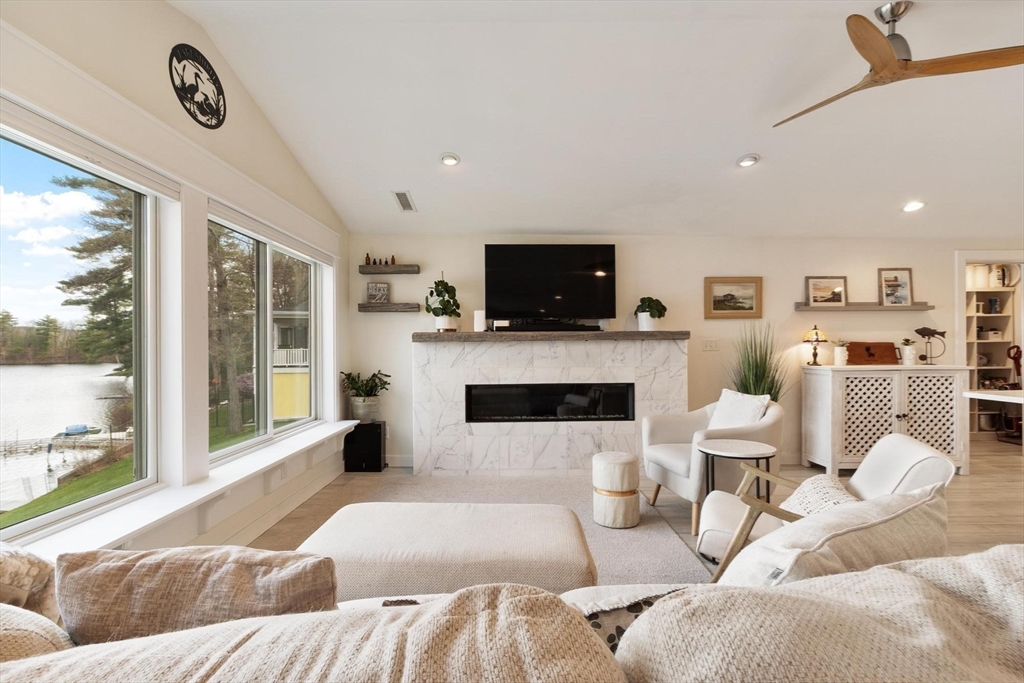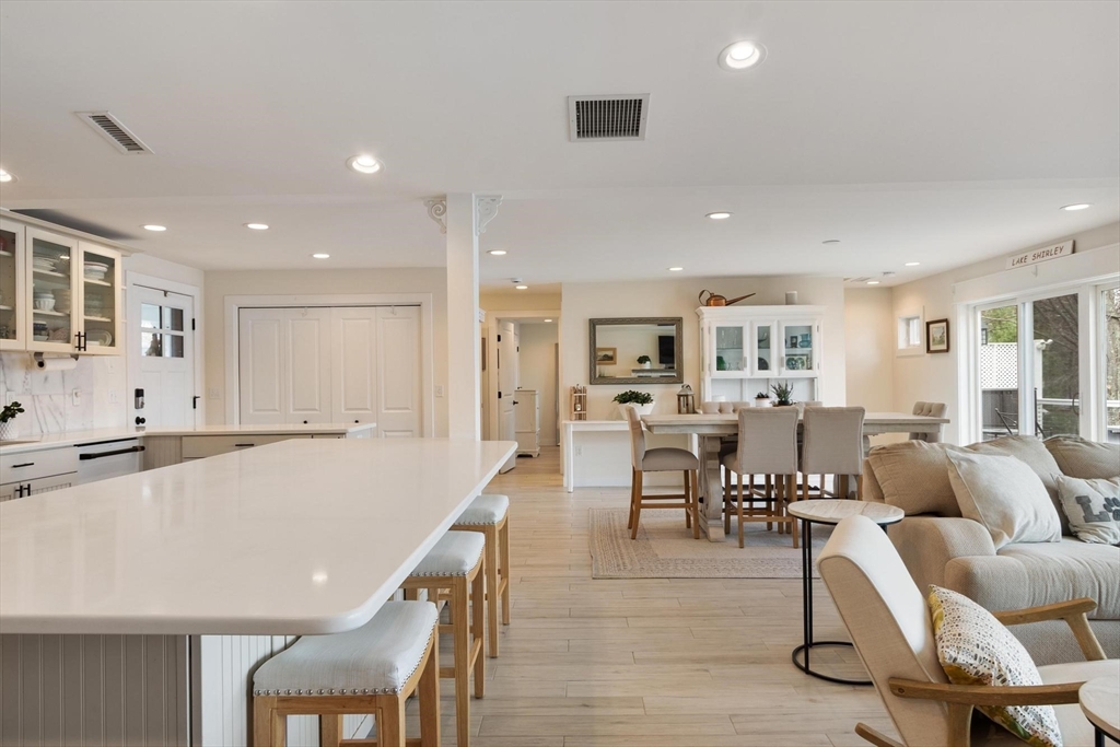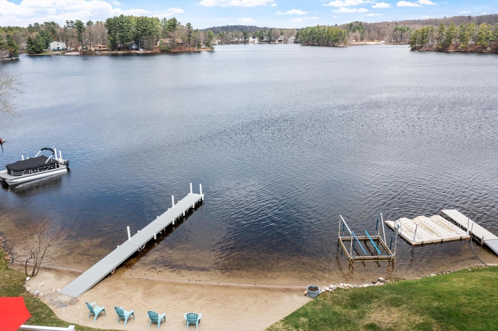 Waterfront living with panoramic views and a private sandy beach on Lake Shirley, completely renovated in 2018. This 3 bed, 3.5 bath home features an open-concept layout with cathedral ceilings, recessed lighting, central air, a linear propane fireplace, and new Andersen windows showcasing the lake. The kitchen offers an oversized Italian white quartz island, soft-close cabinets, walk-in pantry, and new GE Café appliances. Two primary suites include full baths and water views. The finished walk-out lower level has a bedroom, full bath, laundry, and living area with direct beach access. Enjoy a 14x32 composite deck and screened patio. Extras include a 2-car garage with storage, generator hookup, water filtration, radon system, outdoor shower and electric dog fence. A perfect year-round retreat just in time for summer, offering four seasons of recreation, relaxation, and scenic beauty right at your doorstep. Ideal for entertaining or peaceful lakefront living! Showings start 4/21/2026.