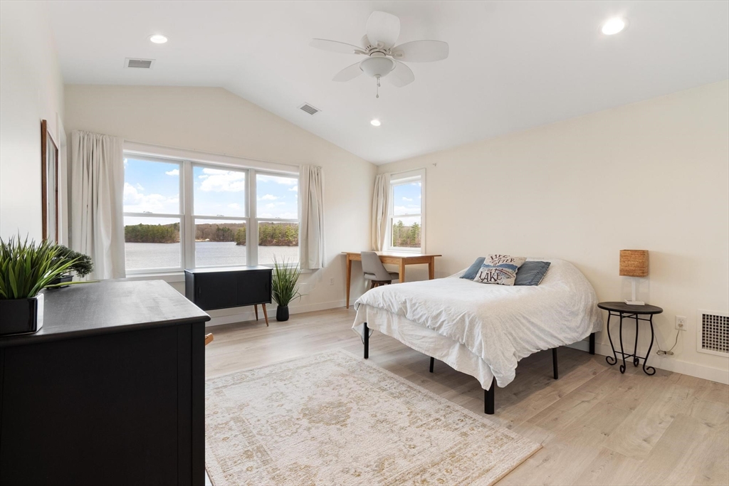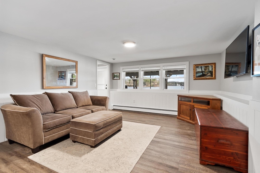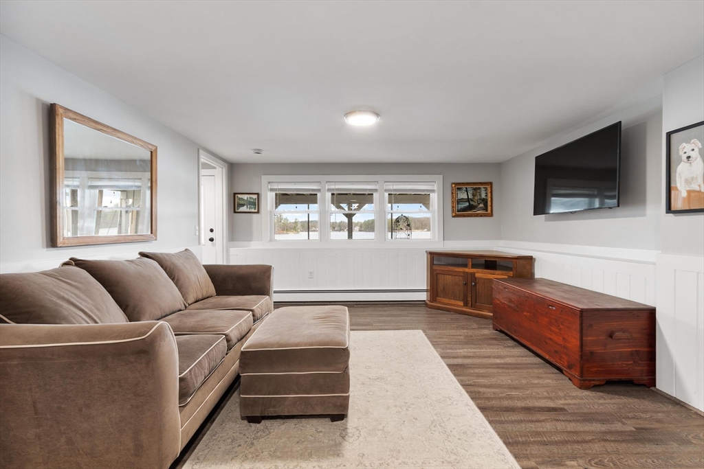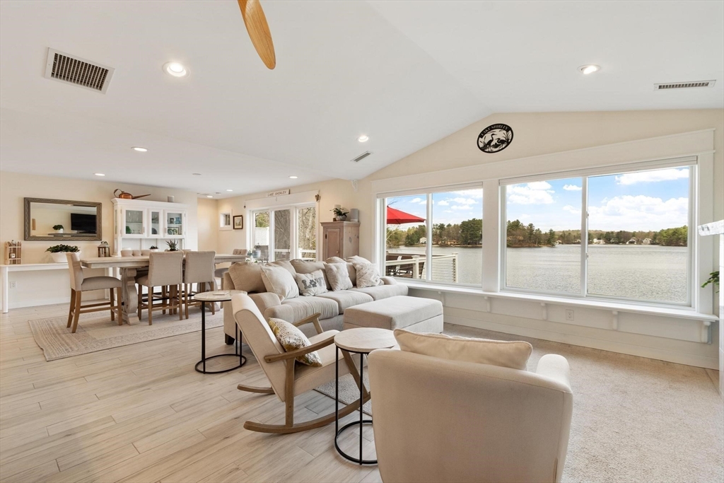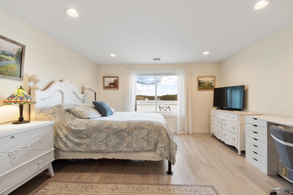 Waterfront living with panoramic views and a private sandy beach on Lake Shirley, completely renovated in 2018. This 3 bed, 3.5 bath home features an open-concept layout with cathedral ceilings, recessed lighting, central air, a linear propane fireplace, and new Andersen windows showcasing the lake. The kitchen offers an oversized Italian white quartz island, soft-close cabinets, walk-in pantry, and new GE Café appliances. Two primary suites include full baths and water views. The finished walk-out lower level has a bedroom, full bath, laundry, and living area with direct beach access. Enjoy a 14x32 composite deck and screened patio. Extras include a 2-car garage with storage, generator hookup, water filtration, radon system, outdoor shower and electric dog fence. A perfect year-round retreat just in time for summer, offering four seasons of recreation, relaxation, and scenic beauty right at your doorstep. Ideal for entertaining or peaceful lakefront living! Showings start 4/21/2026.