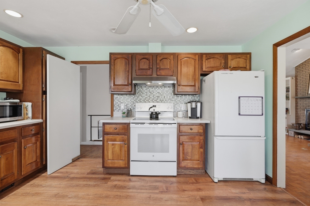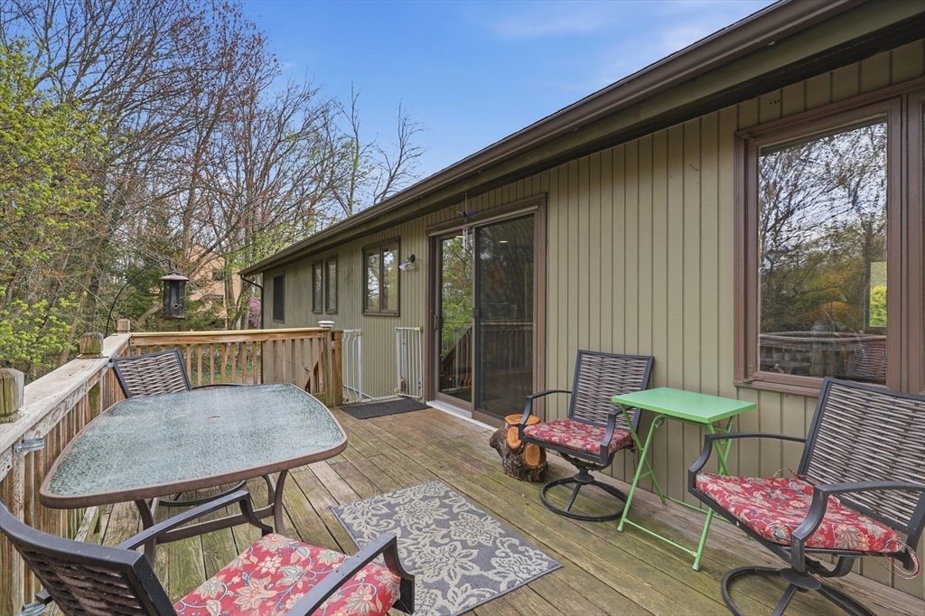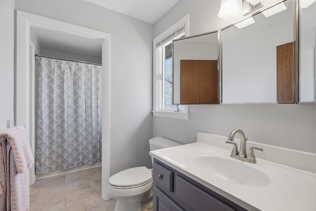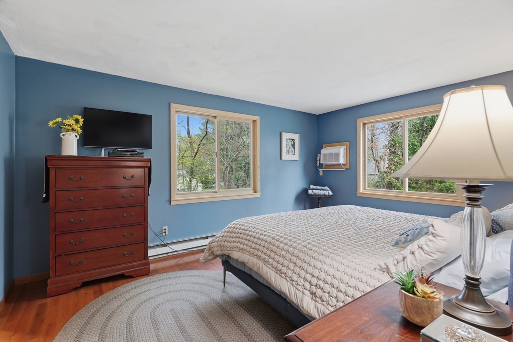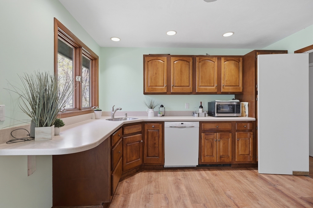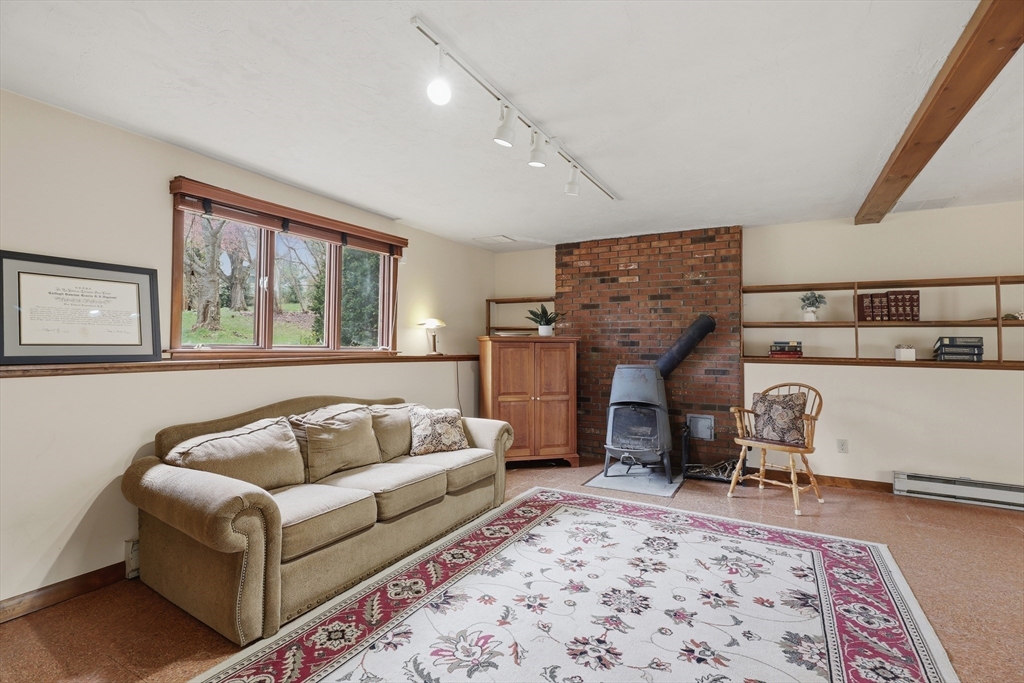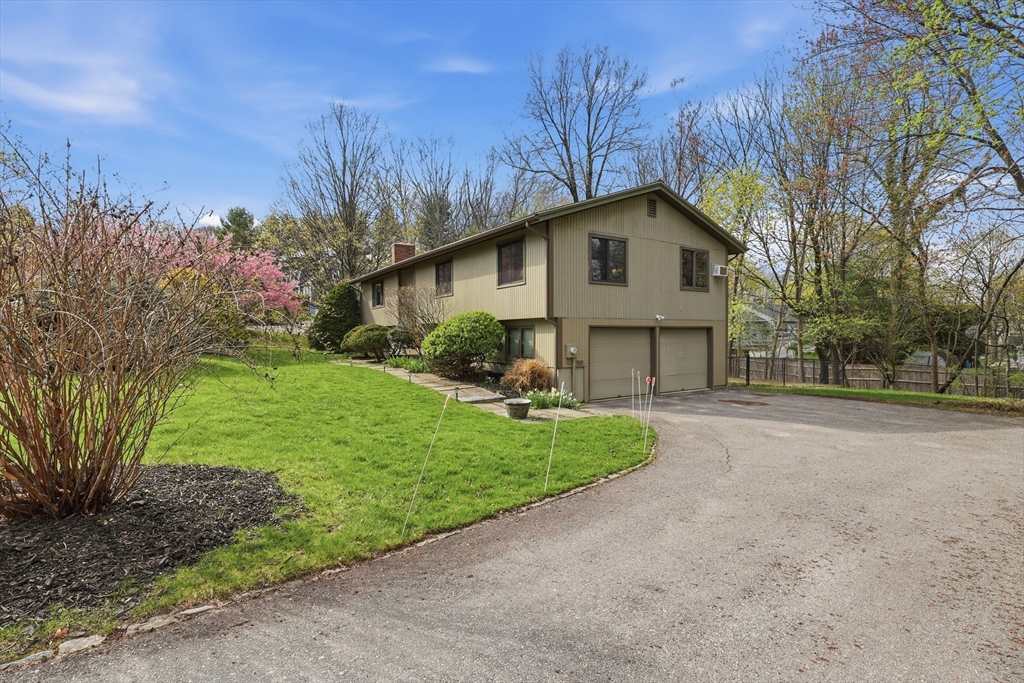Nestled on a dead-end street, this expansive 4-bed, 2.5-bath Raised Ranch doesn't lack space! The main level impresses w/ a sun-drenched living room featuring soaring vaulted ceilings & a cozy wood-burning fireplace, flowing seamlessly into a formal dining room designed for easy entertaining. The kitchen offers direct slider access to the back deck, overlooking a fully fenced yard w/ a gravel walkway leading to an inviting firepit area. 3 generous, sunny bedrooms are located down the hall, including a primary suite w/ convenient Jack-&-Jill access to the main full bath. The finished lower level significantly expands the living space, boasting a large family room w/ a wood stove & walk-out access to the backyard, along w/ a 4th bedroom, a full bath w/ laundry hookups, & interior access to the 2-car garage. Thoughtfully designed perennial landscaping provides a sequence of seasonal blooms, ensuring continuous color throughout the year & beauty w/ every season!