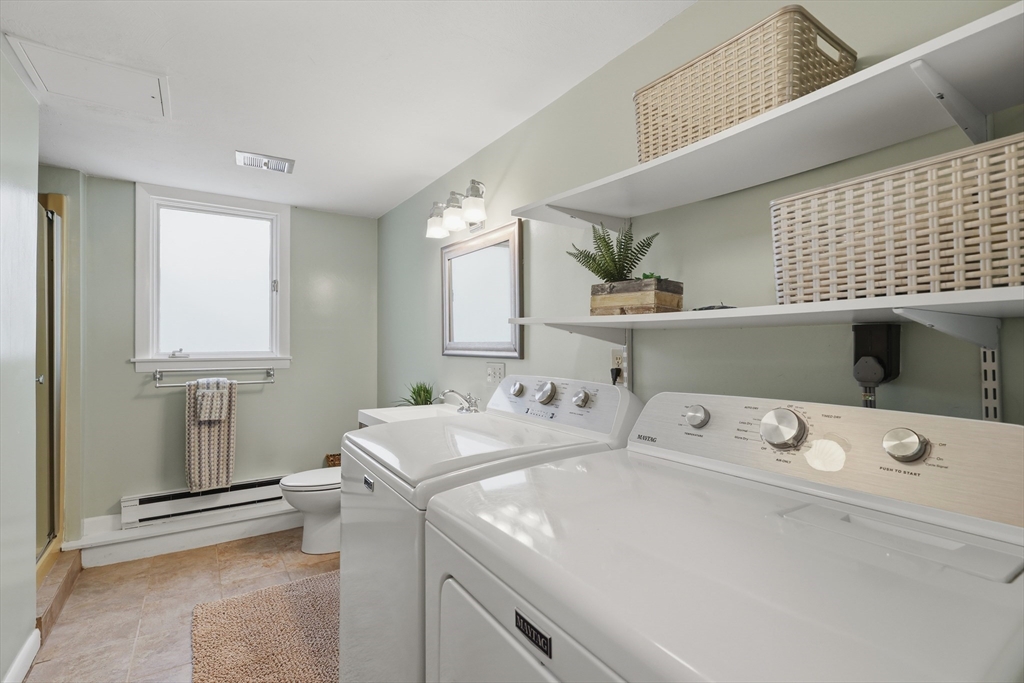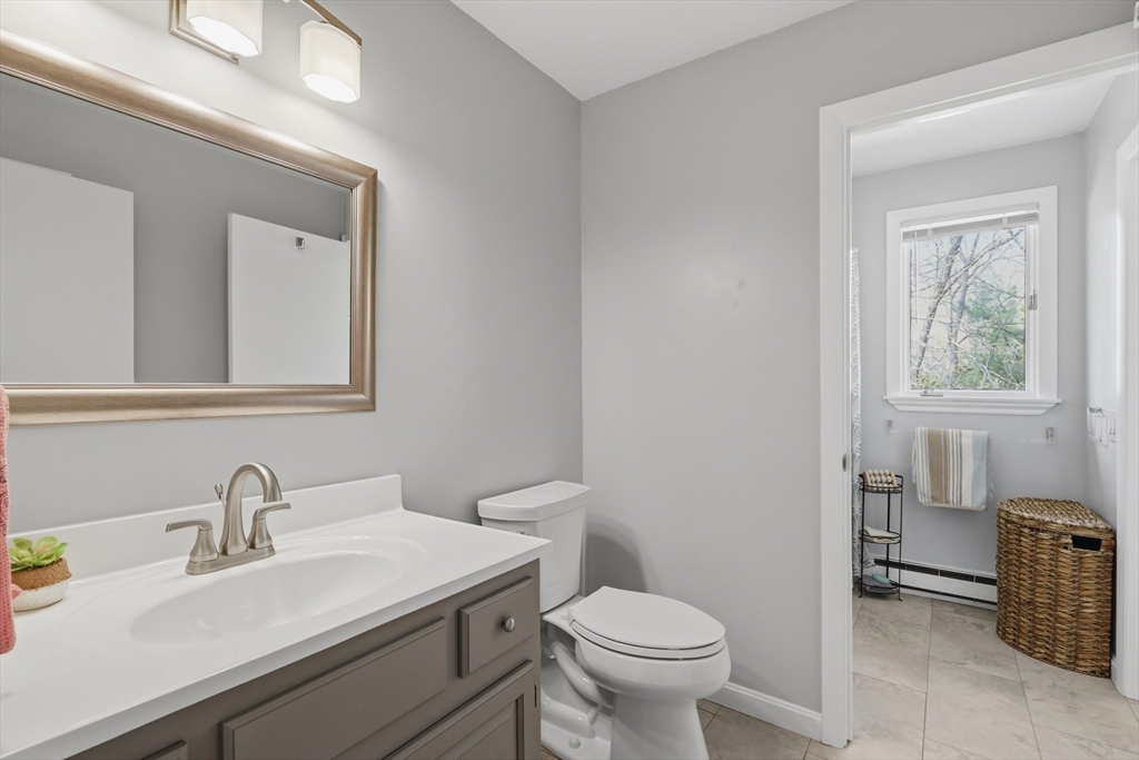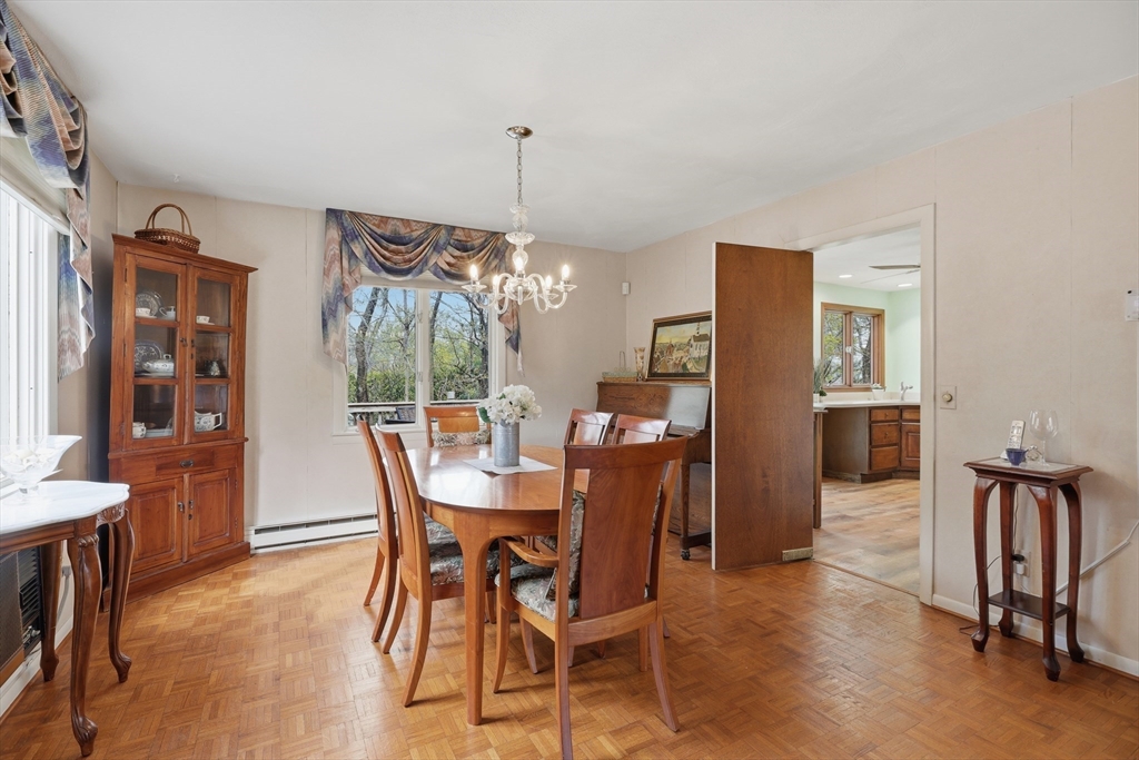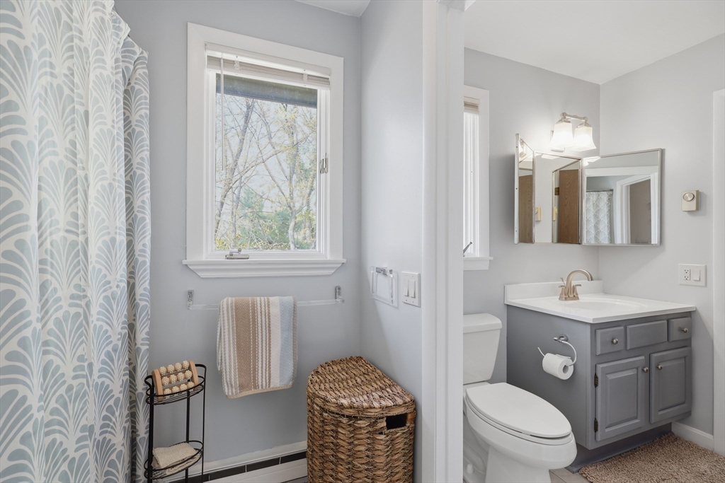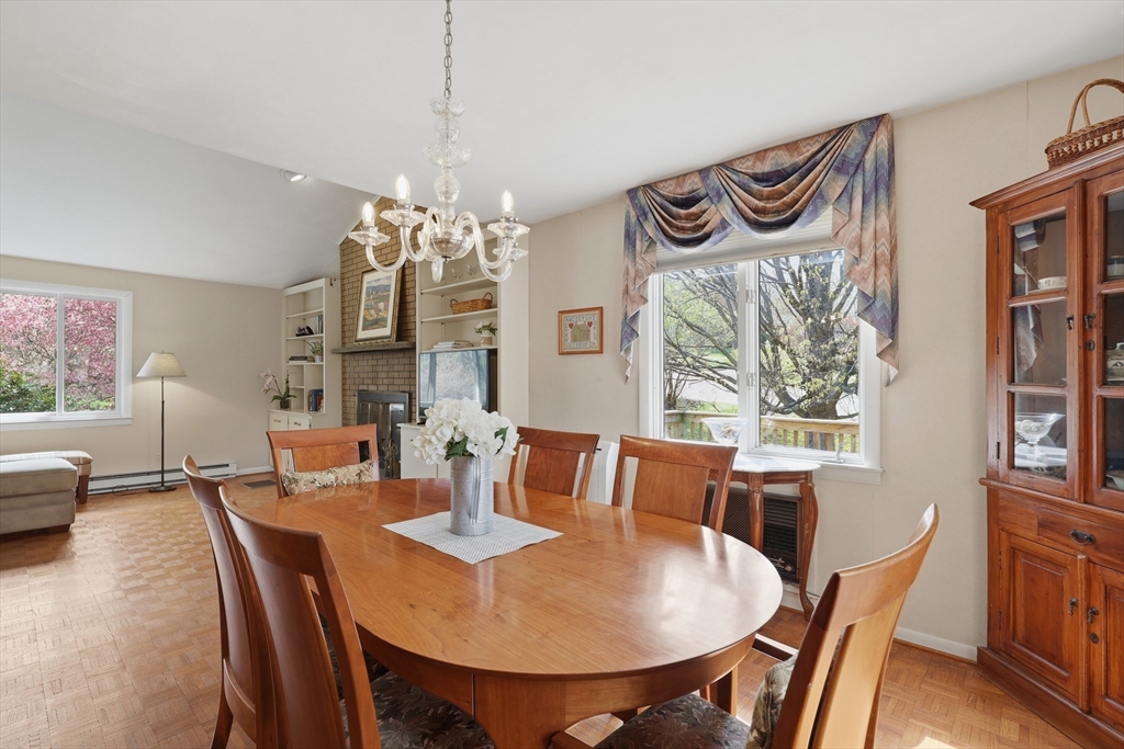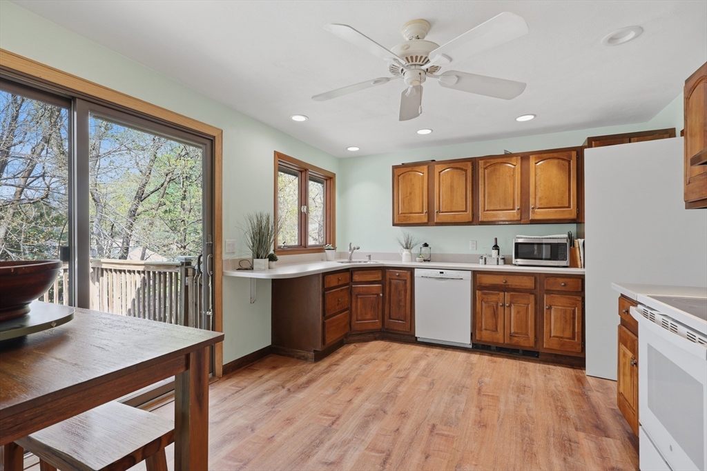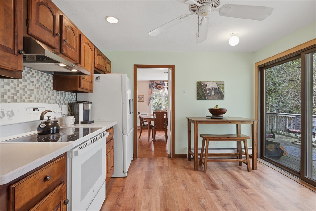 Nestled on a dead-end street, this expansive 4-bed, 2.5-bath Raised Ranch doesn't lack space! The main level impresses w/ a sun-drenched living room featuring soaring vaulted ceilings & a cozy wood-burning fireplace, flowing seamlessly into a formal dining room designed for easy entertaining. The kitchen offers direct slider access to the back deck, overlooking a fully fenced yard w/ a gravel walkway leading to an inviting firepit area. 3 generous, sunny bedrooms are located down the hall, including a primary suite w/ convenient Jack-&-Jill access to the main full bath. The finished lower level significantly expands the living space, boasting a large family room w/ a wood stove & walk-out access to the backyard, along w/ a 4th bedroom, a full bath w/ laundry hookups, & interior access to the 2-car garage. Thoughtfully designed perennial landscaping provides a sequence of seasonal blooms, ensuring continuous color throughout the year & beauty w/ every season!