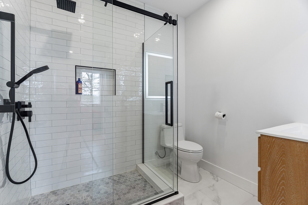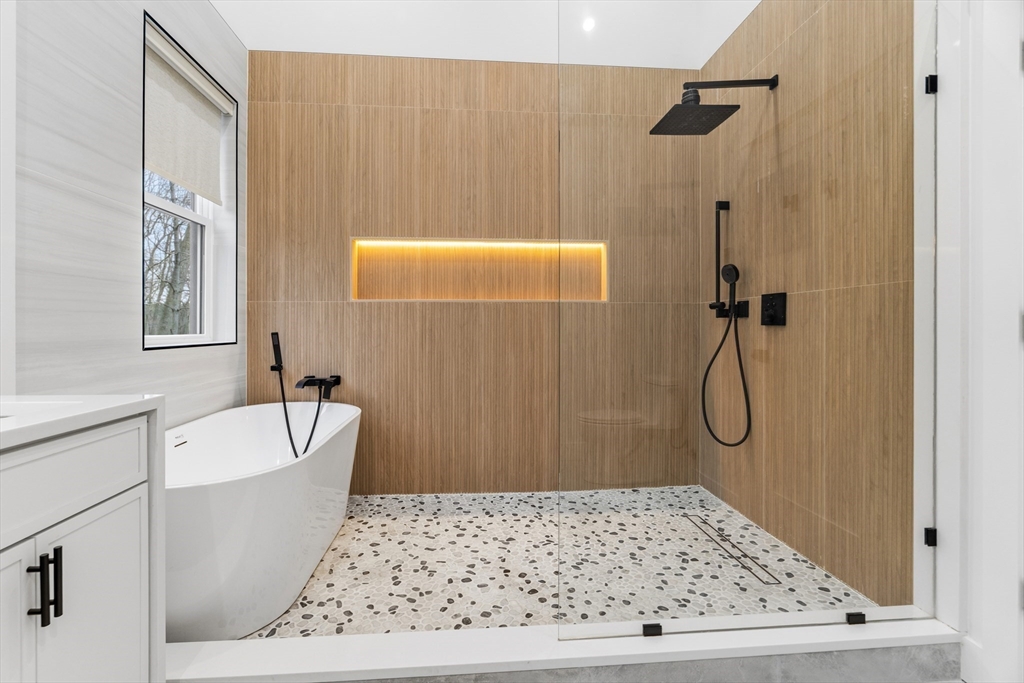 OPEN HOUSE SUNDAY 12-2. Built in 2025, this remarkable 4BR 5.5BA home is set off the road in a quiet cul de sac near the Wellesley/ Needham line. The open concept first floor boasts an eat in gourmet kitchen with beautiful cabinetry, large island, quartz countertops and Thermador appliances; an open family room w/sliders to the yard, fireplaced living room, dining area and powder room. Upstairs, a beautiful primary bedroom suite with a spa like bathroom and large walk in closet; 3 additional ensuite bedrooms and laundry room complete the second floor. The finished basement offers a home office, full bath and play/recreation space. Amazing natural light throughout the home. Spacious fenced back yard with patio and an in-ground heated pool for outdoor fun. Attached 2-car garage. Propane gas heating and cooking. 2025 well and septic. Dover-Sherborn top rated schools and low taxes!