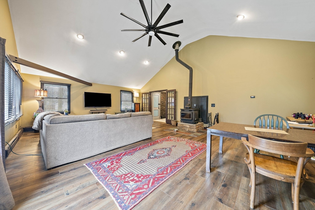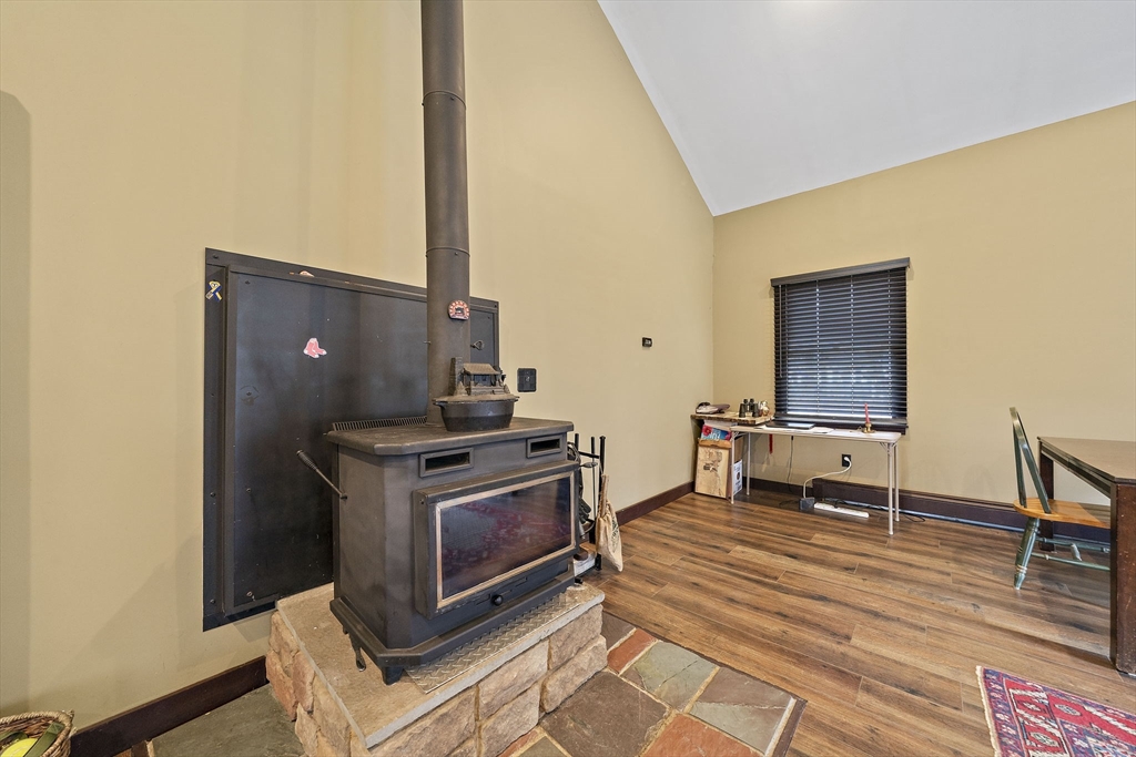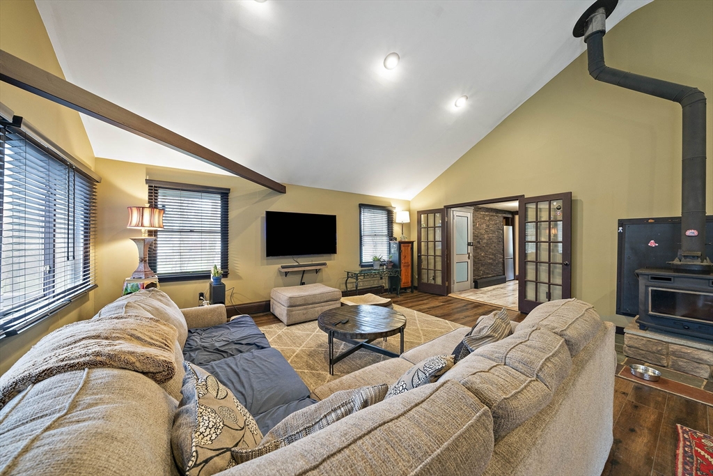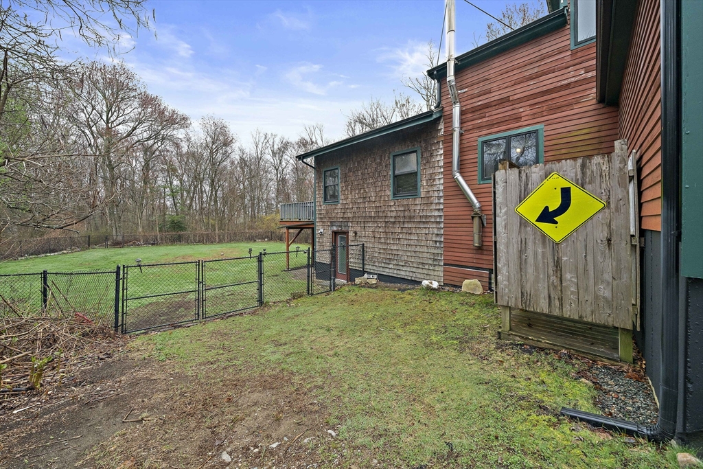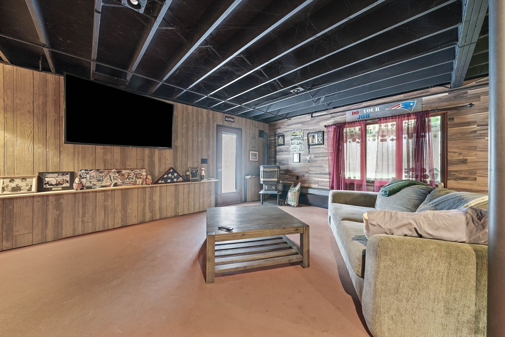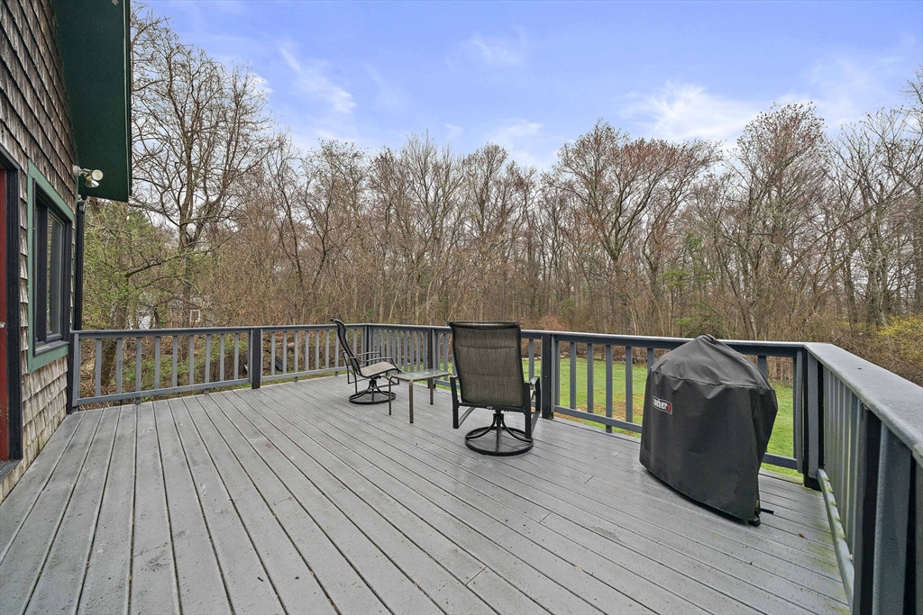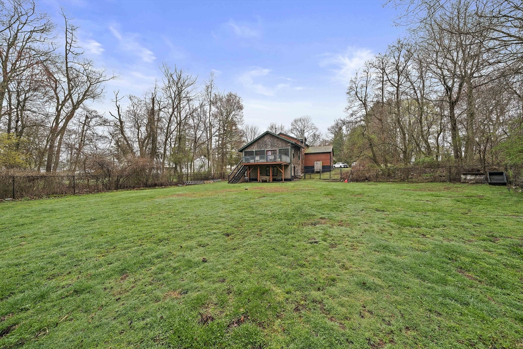 Set on a generous, nearly half-acre lot, this spacious home offers an open-concept floor plan with hardwood floors and exceptional indoor-outdoor living. The sun-drenched 27x20 family room features soaring cathedral ceilings and a cozy wood-burning stove, creating a warm and inviting atmosphere. The lower-level recreation room adds valuable living space with a wood pellet stove and direct walkout access to the expansive, private, fenced-in backyard, perfect for entertaining, pets, or relaxing in a serene setting. Step outside to an oversized sun deck overlooking lush grounds that abut the Holbrook Town Forest and Braintree conservation land. Ideal for nature lovers, hiking, and outdoor enjoyment. The second level is already framed for a potential primary suite, offering an incredible opportunity to customize and add value. Conveniently located near the Braintree town line, shopping, dining, and major commuter routes, this property combines space, flexibility, and location.