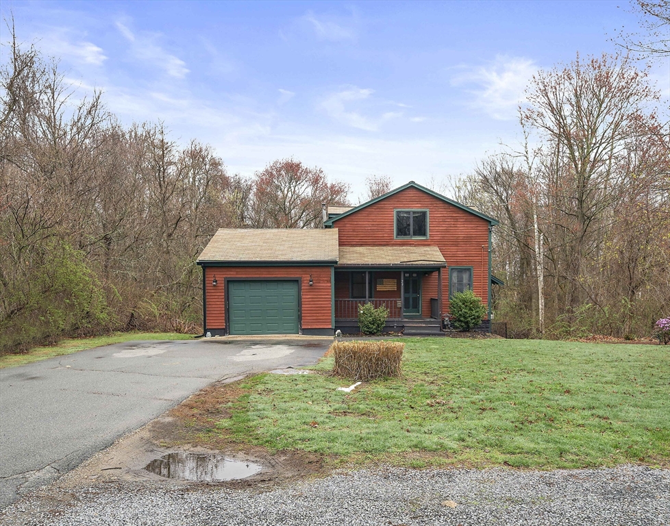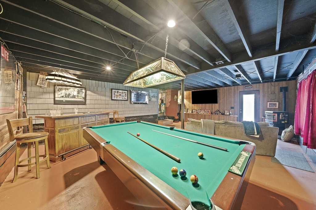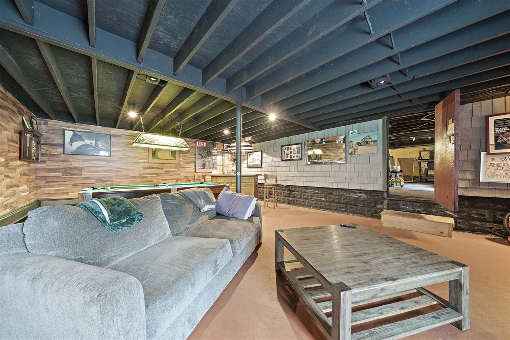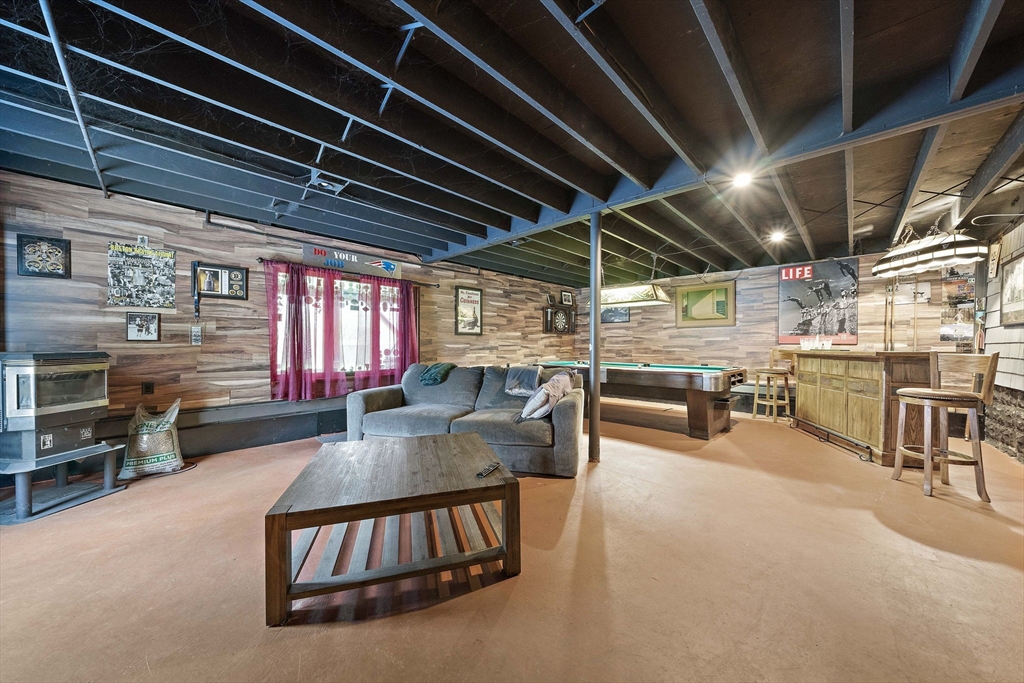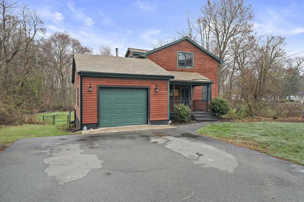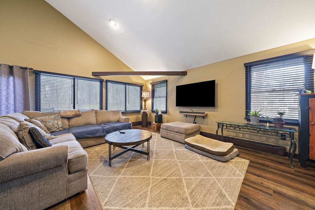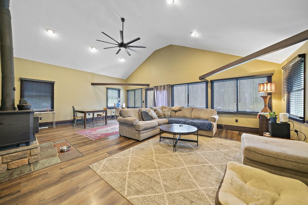 Set on a generous, nearly half-acre lot, this spacious home offers an open-concept floor plan with hardwood floors and exceptional indoor-outdoor living. The sun-drenched 27x20 family room features soaring cathedral ceilings and a cozy wood-burning stove, creating a warm and inviting atmosphere. The lower-level recreation room adds valuable living space with a wood pellet stove and direct walkout access to the expansive, private, fenced-in backyard, perfect for entertaining, pets, or relaxing in a serene setting. Step outside to an oversized sun deck overlooking lush grounds that abut the Holbrook Town Forest and Braintree conservation land. Ideal for nature lovers, hiking, and outdoor enjoyment. The second level is already framed for a potential primary suite, offering an incredible opportunity to customize and add value. Conveniently located near the Braintree town line, shopping, dining, and major commuter routes, this property combines space, flexibility, and location.