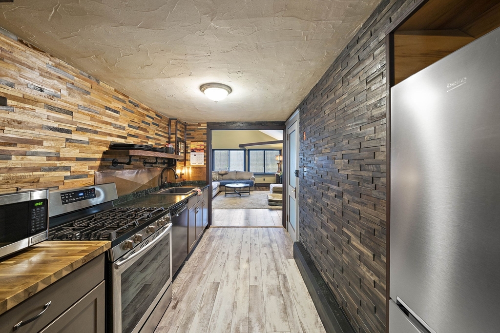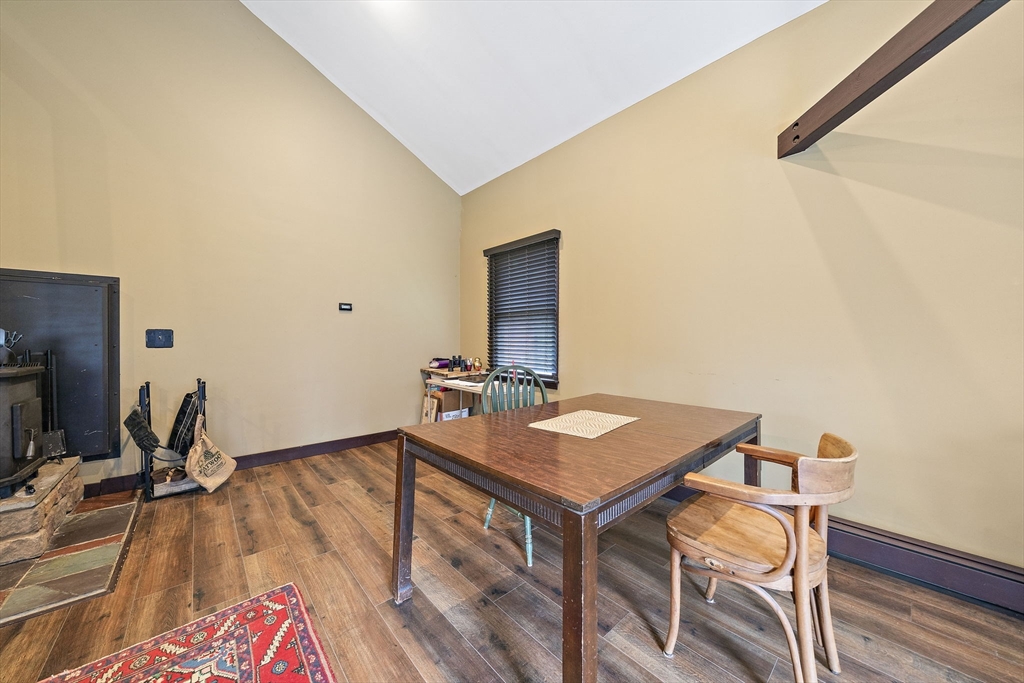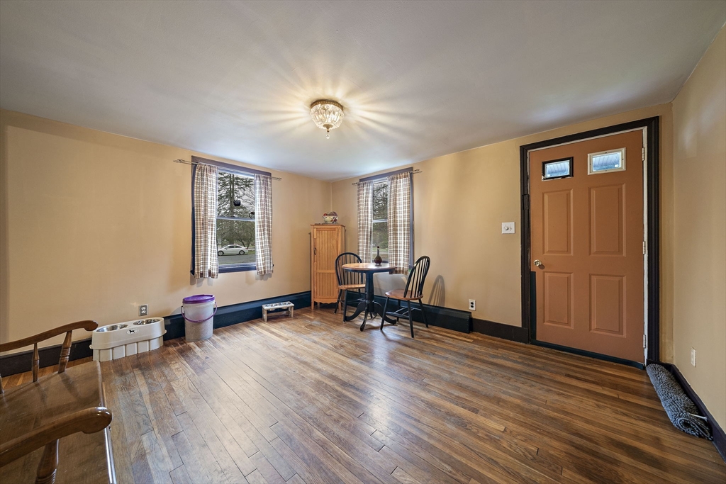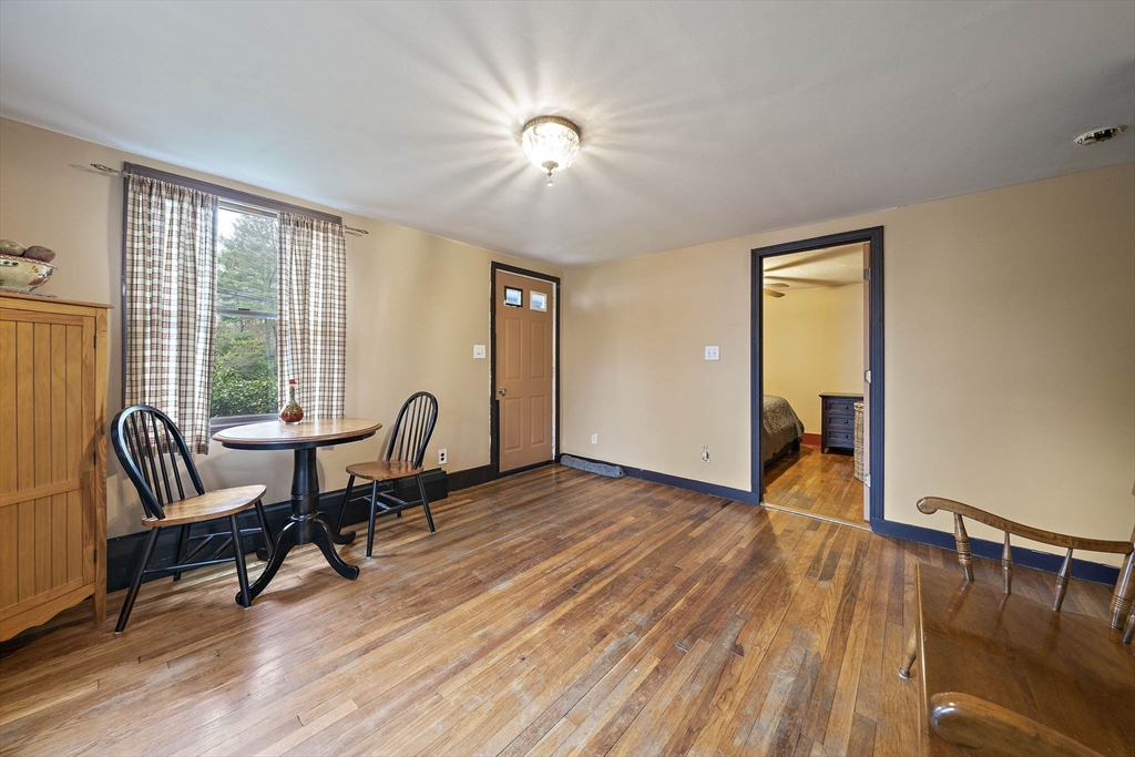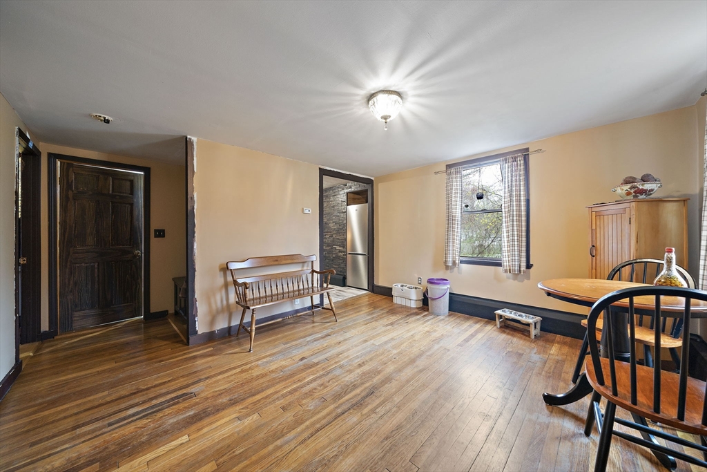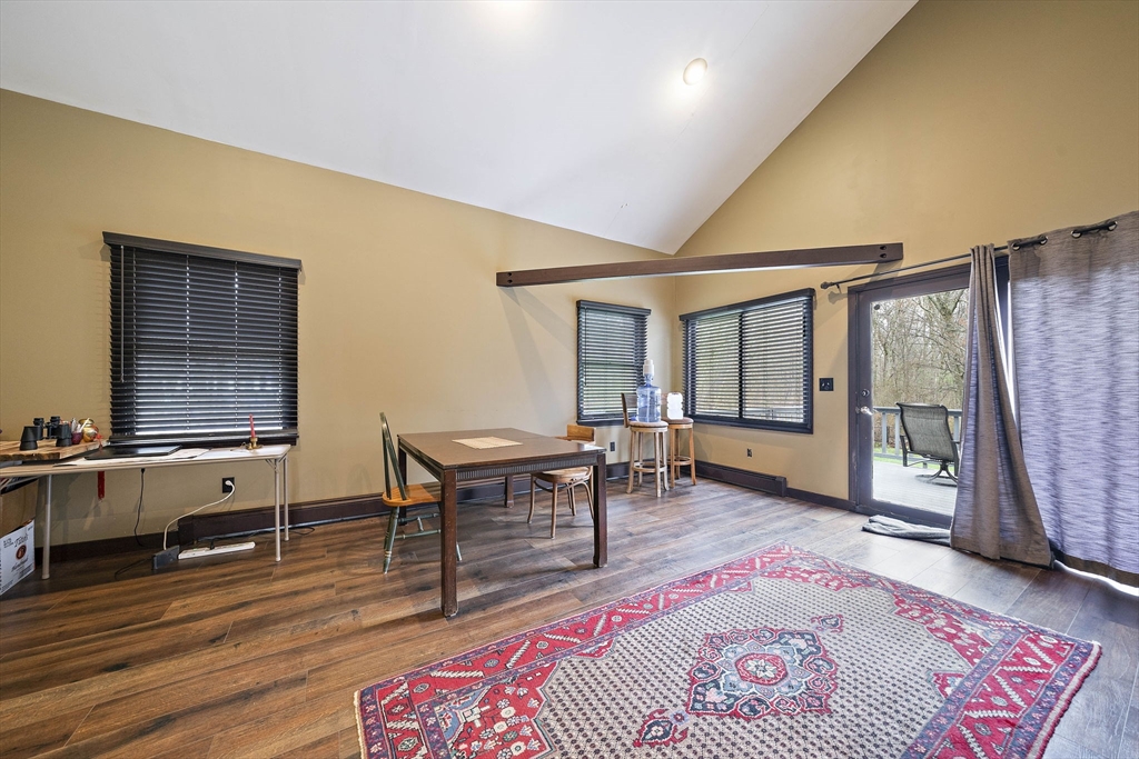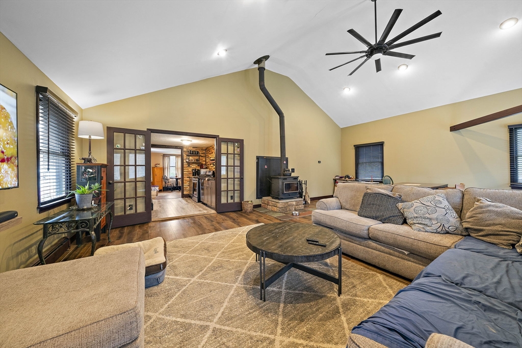 Set on a generous, nearly half-acre lot, this spacious home offers an open-concept floor plan with hardwood floors and exceptional indoor-outdoor living. The sun-drenched 27x20 family room features soaring cathedral ceilings and a cozy wood-burning stove, creating a warm and inviting atmosphere. The lower-level recreation room adds valuable living space with a wood pellet stove and direct walkout access to the expansive, private, fenced-in backyard, perfect for entertaining, pets, or relaxing in a serene setting. Step outside to an oversized sun deck overlooking lush grounds that abut the Holbrook Town Forest and Braintree conservation land. Ideal for nature lovers, hiking, and outdoor enjoyment. The second level is already framed for a potential primary suite, offering an incredible opportunity to customize and add value. Conveniently located near the Braintree town line, shopping, dining, and major commuter routes, this property combines space, flexibility, and location.