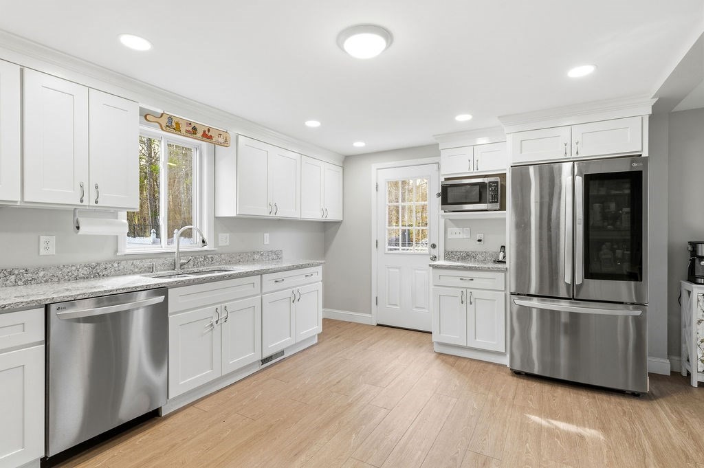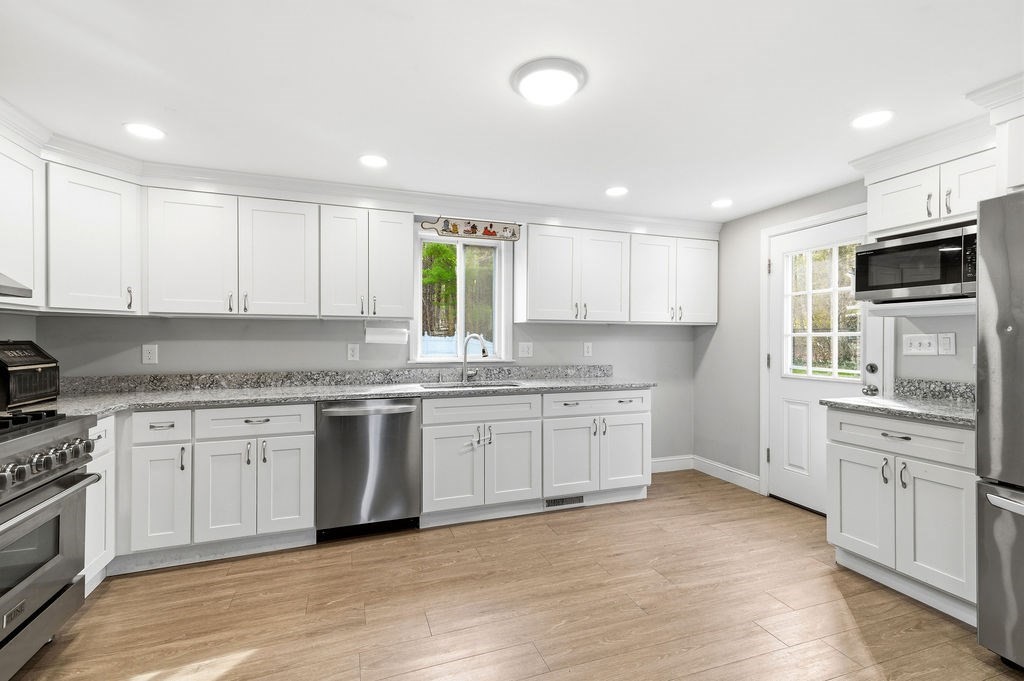 Welcome to this beautifully renovated home on a quiet cul-de-sac, featuring a huge, level, fenced-in yard with an inground pool and pool house - perfect for relaxing or entertaining. The dream kitchen offers solid surface counters, a chef’s stove, stainless steel appliances, and an open flow into the dining area with custom built-ins. The home also features two renovated full bathrooms and a recently finished walk-out basement that adds great additional living space, along with plenty of storage. Major updates have already been taken care of, including heating and cooling systems, electrical, plumbing, flooring, and fresh paint throughout, making this home truly move-in ready.