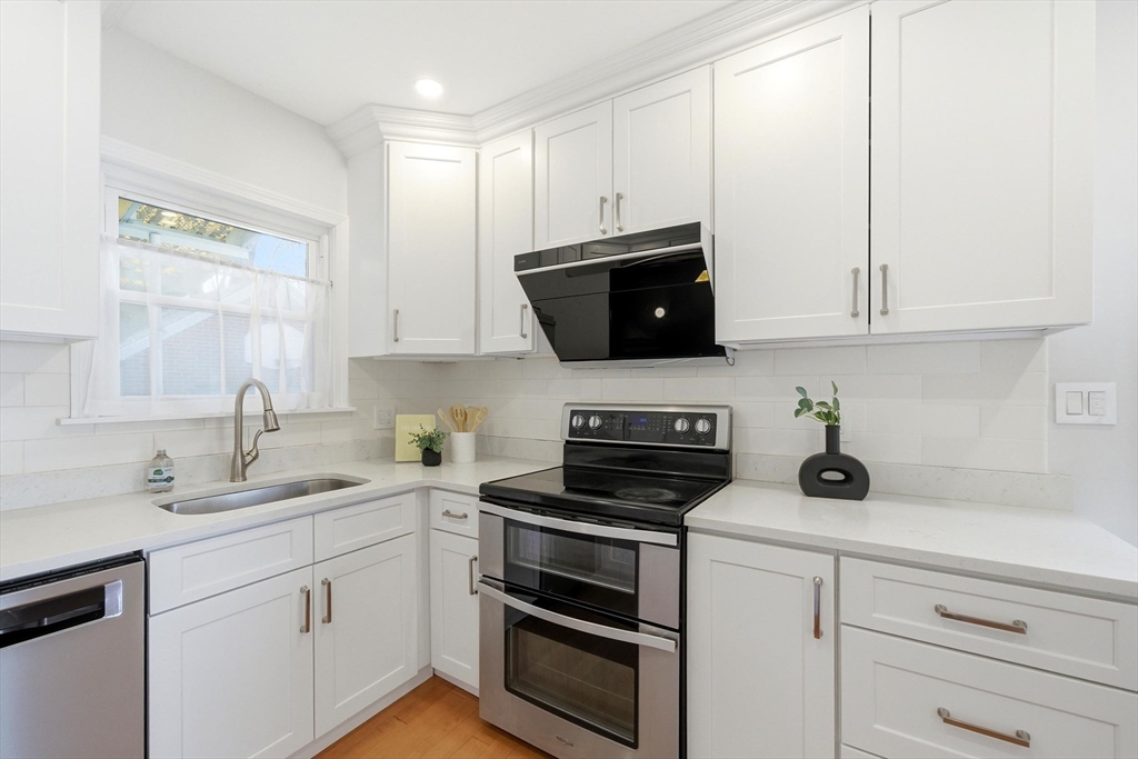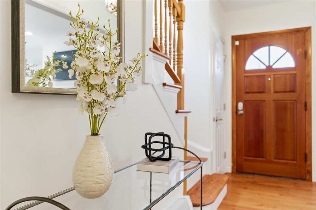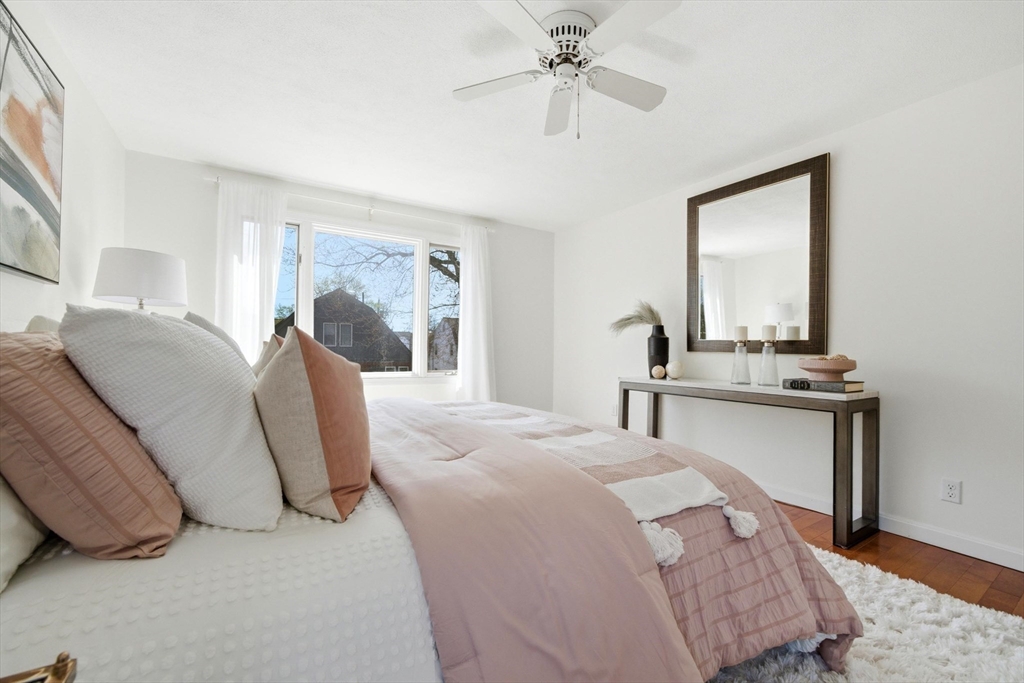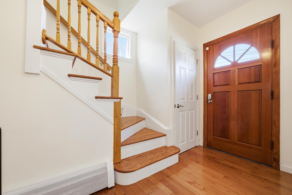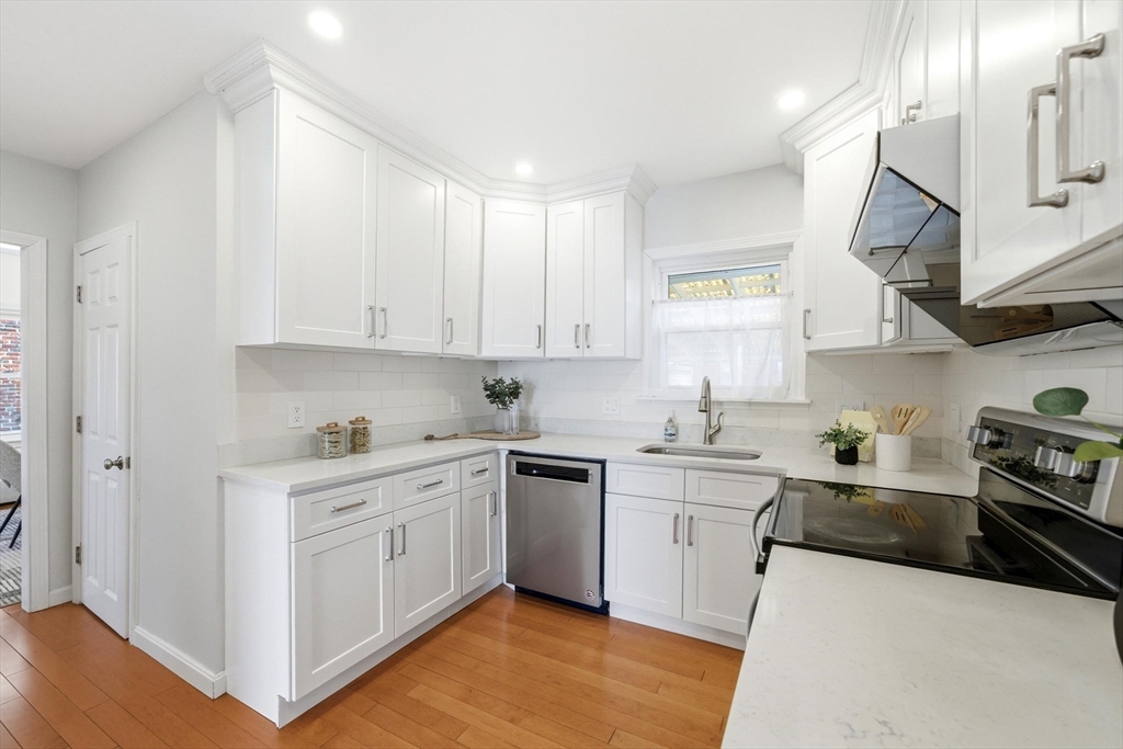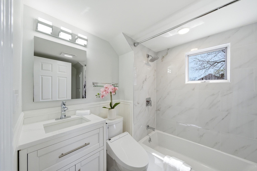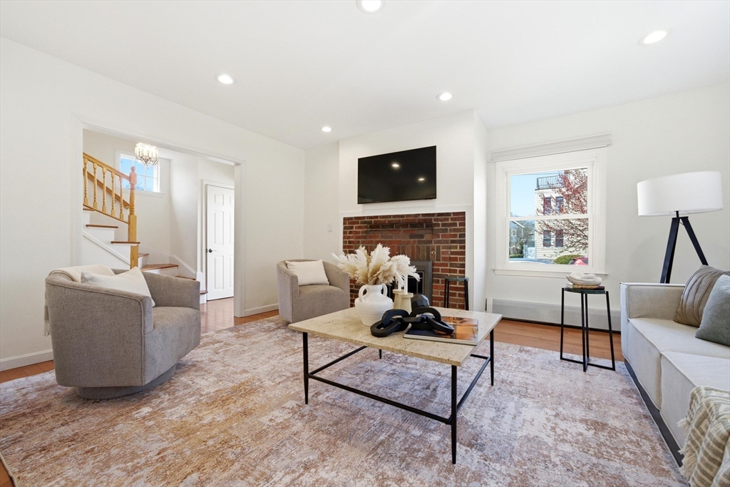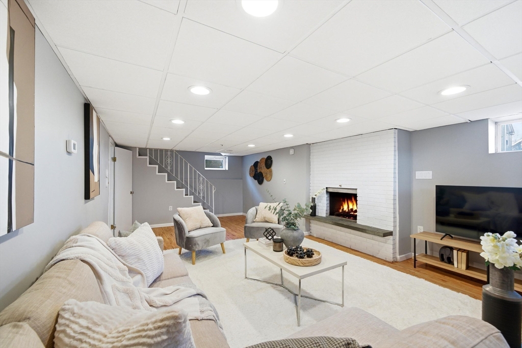 This sun-filled brick Colonial single-family home in East Arlington offers a thoughtfully designed floor plan with bright windows. Newer oak hardwood floors installed in 2021. Same year updated kitchen features quartz countertops and a modern layout ideal for everyday living and entertaining. The living room includes a cozy fireplace, and the first floor offers a well-appointed half bath. Upstairs, the primary bedroom is joined by two additional bedrooms and a recently updated full bathroom. A finished basement provides flexible space for a playroom, study, or exercise. Conveniently located near the Minuteman Bikeway, shopping, and Spy Pond Park, with easy access to Cambridge and Boston. Exterior features include a private porch, paved driveway, garage, and yard.