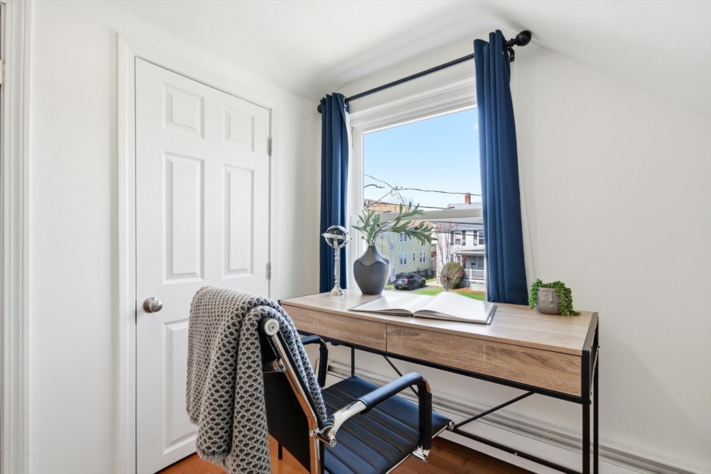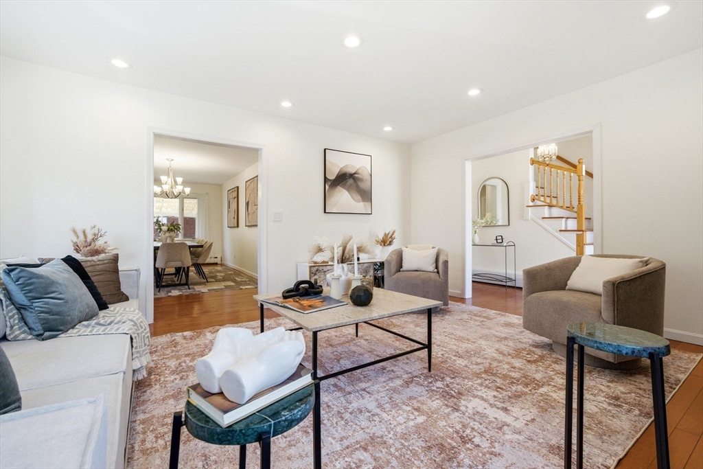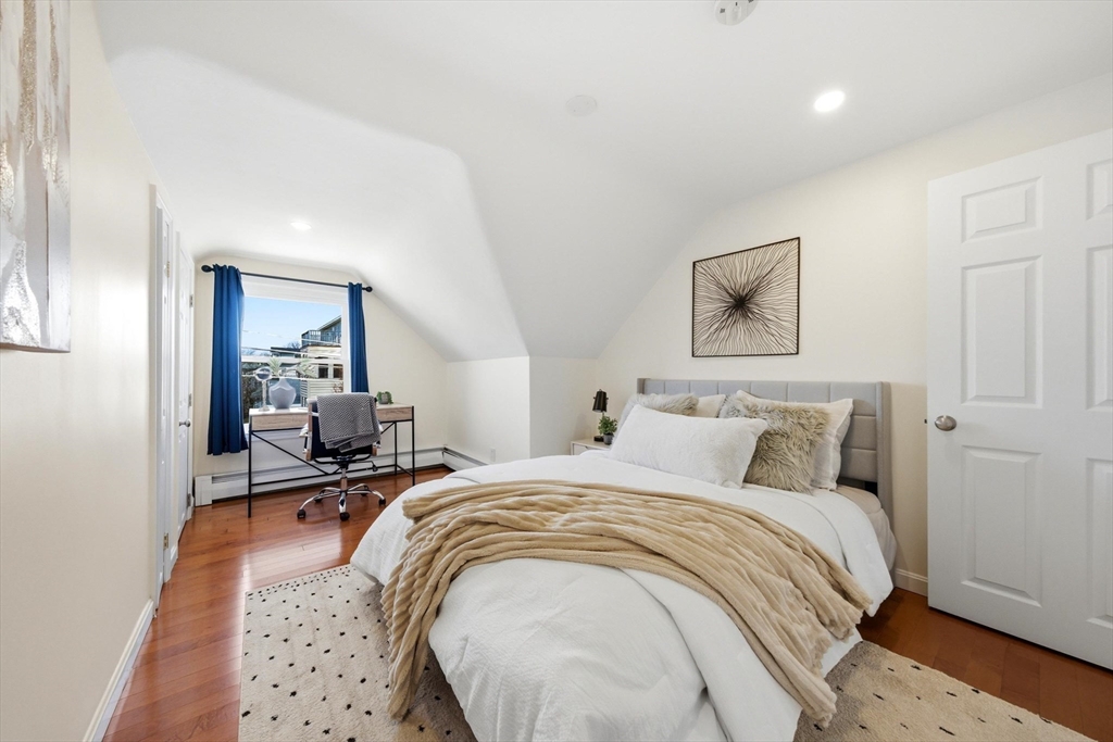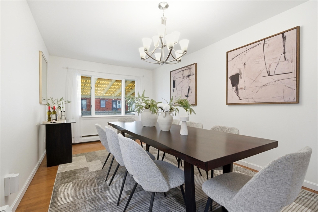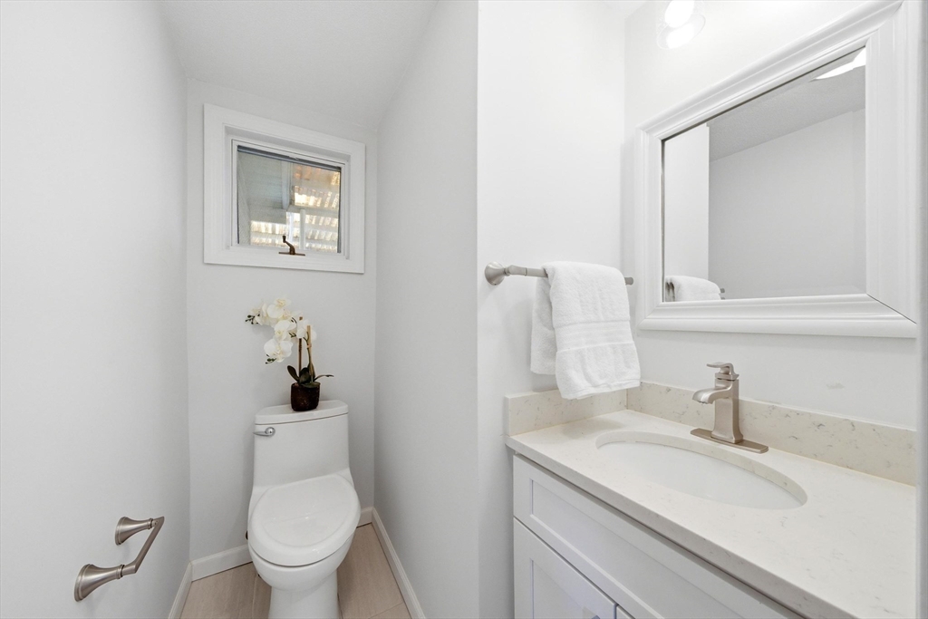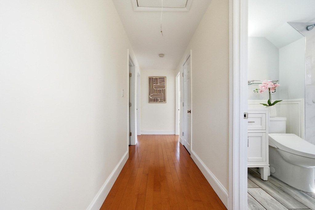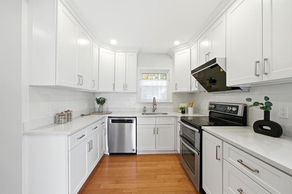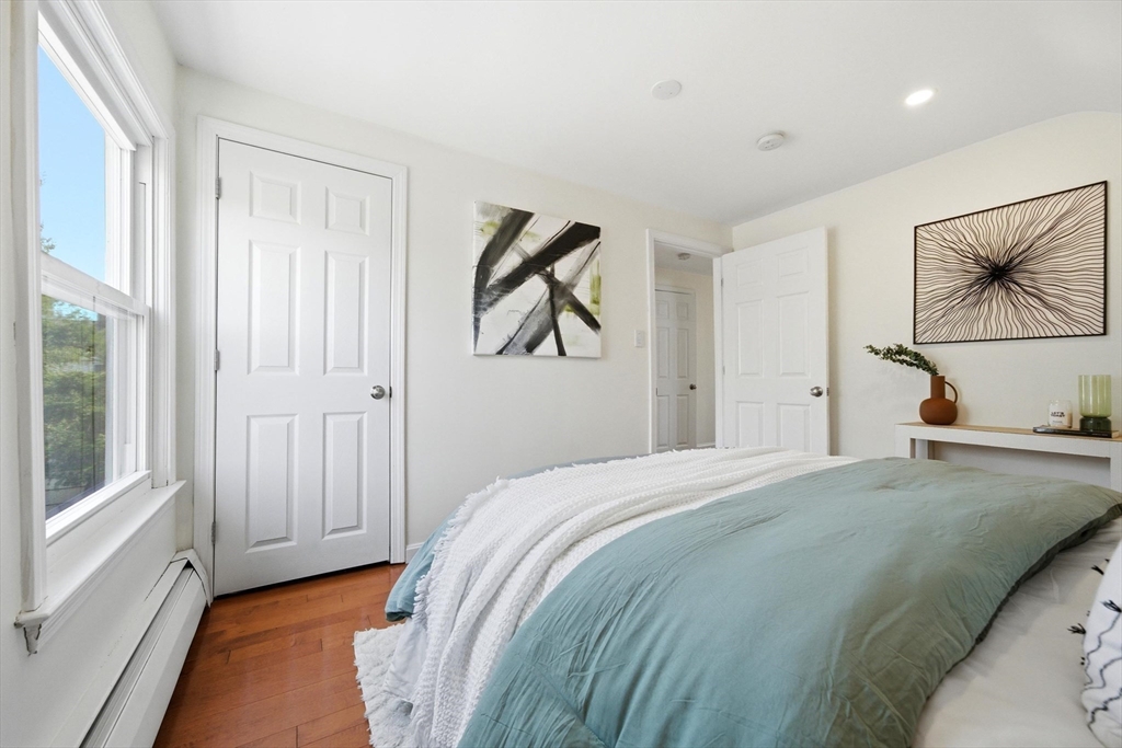 This sun-filled brick Colonial single-family home in East Arlington offers a thoughtfully designed floor plan with bright windows. Newer oak hardwood floors installed in 2021. Same year updated kitchen features quartz countertops and a modern layout ideal for everyday living and entertaining. The living room includes a cozy fireplace, and the first floor offers a well-appointed half bath. Upstairs, the primary bedroom is joined by two additional bedrooms and a recently updated full bathroom. A finished basement provides flexible space for a playroom, study, or exercise. Conveniently located near the Minuteman Bikeway, shopping, and Spy Pond Park, with easy access to Cambridge and Boston. Exterior features include a private porch, paved driveway, garage, and yard.