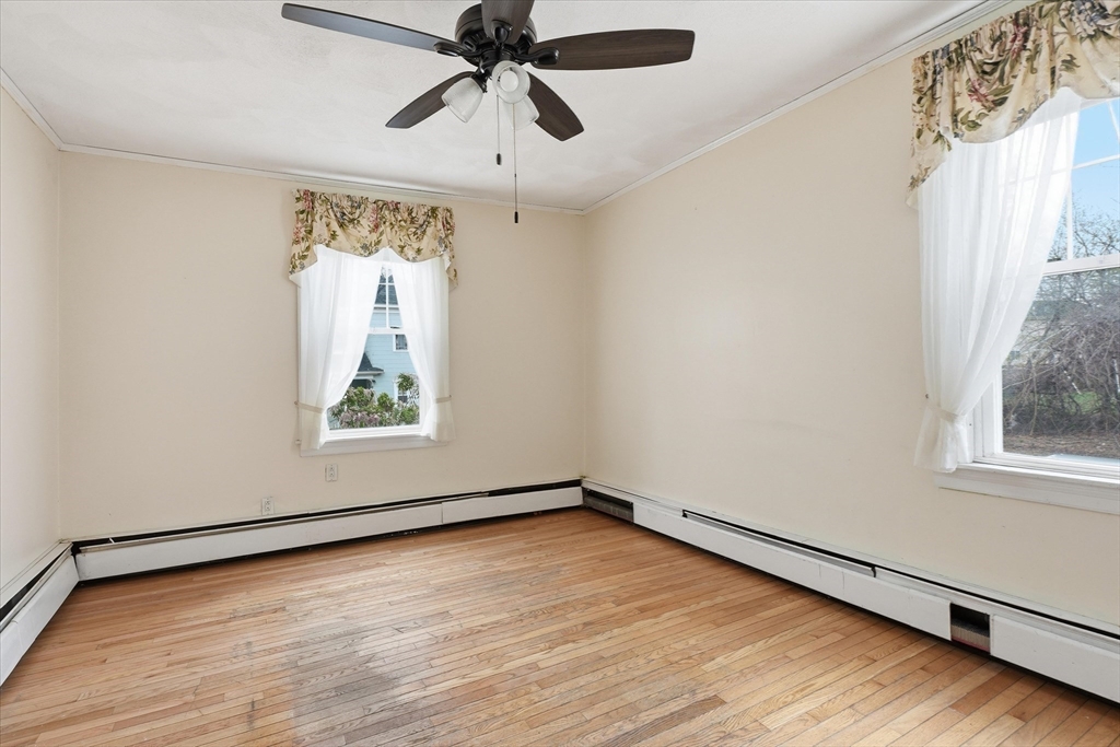 Charming Colonial with 2 car garage set on a sought-after corner lot in Prospect Hill offers an incredible opportunity for comfort and room to grow. A stunning front entry opens to a bright, spacious interior with a versatile and functional layout. The main level boasts an updated kitchen with stainless steel appliances and ample storage, bright dining room with built-in cabinets, a living room, full bath, sunroom, and a flexible bonus room ideal for a first-floor bedroom, home office, or playroom. Abundant natural light streams through updated Harvey windows, accentuating the hardwood floors throughout. Upstairs includes a generous primary bedroom, two additional bedrooms, a full bath, and large attic providing ample storage space. A two-car garage and sprawling yard enhance convenience and outdoor enjoyment. Located near shopping, amenities, & major routes. Notable updates include a roof replacement in 2017, updated windows, full exterior painting in 2023. Ready for the next chapter!