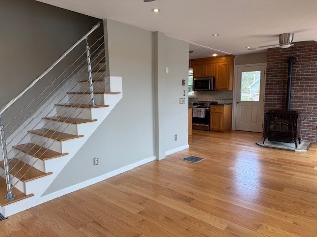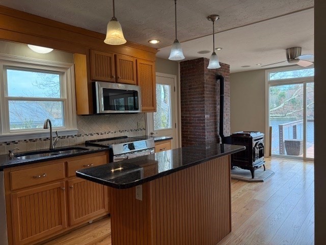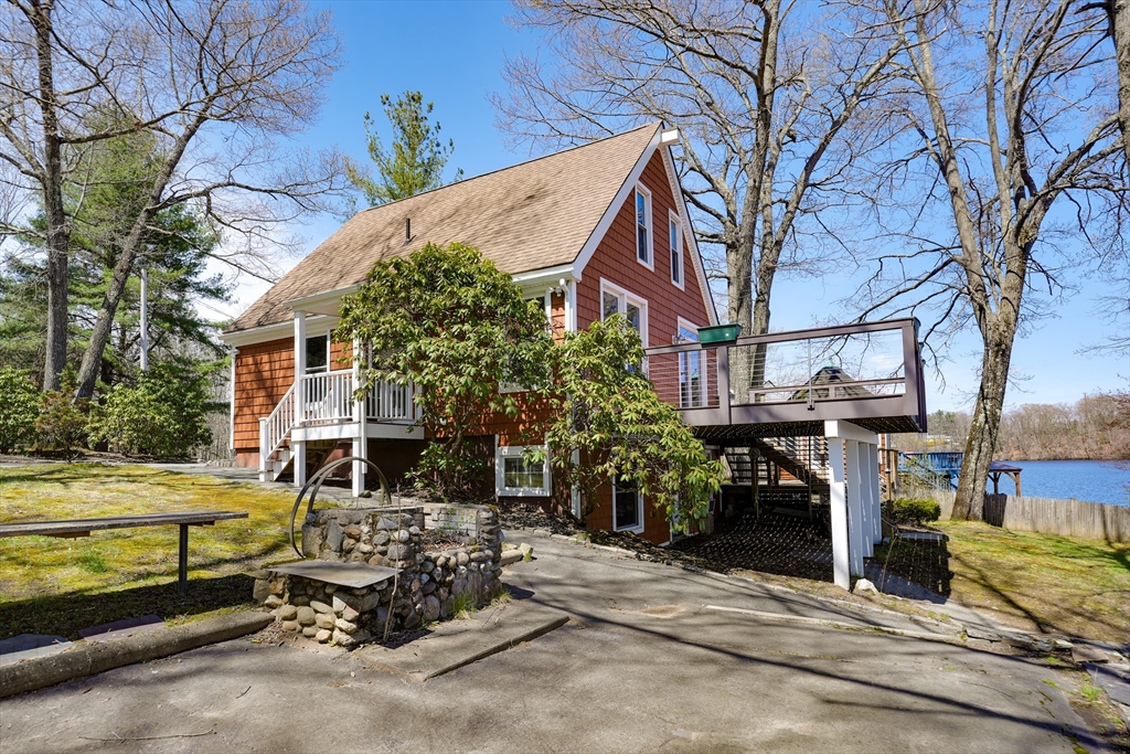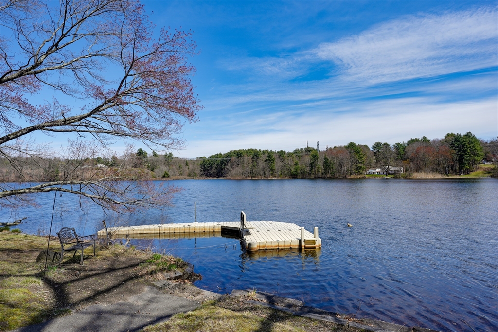 LOCATION, LOCATION, LOCATION! NEWTON POND! Well maintained, Sunny, Waterfront property with open floor plan, has amazing views overlooking the pond and dock. The HUB of this home is the custom cabinet Kitchen with granite counters and stainless steel appliances, open to a spacious Living Room and Dining Room with pellet stove. Additionally, there is a generously sized flex space that can be used as a Primary Bedroom or first floor Office with full bath and double closet. The second floor has a lovely Cathedral Ceiling Main Bedroom with Cork Flooring and 2 large closets. Completing the second level are two more amply sized Bedrooms, and a well appointed half bath. The finished walk out Lower Level is designed as a Multi–Generational living space complete with a 2nd Kitchen, full Bath and wood stove overlooking the tranquil pond setting.Fresh Paint, Gleaming Wood Flooring, an oversized 2 car detached Garage with storage space above, plus a gazebo and two storage sheds.