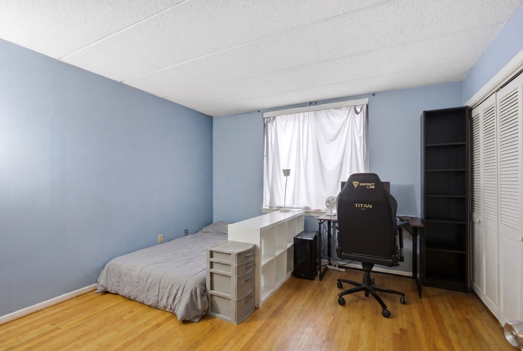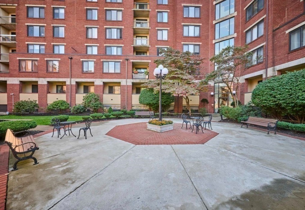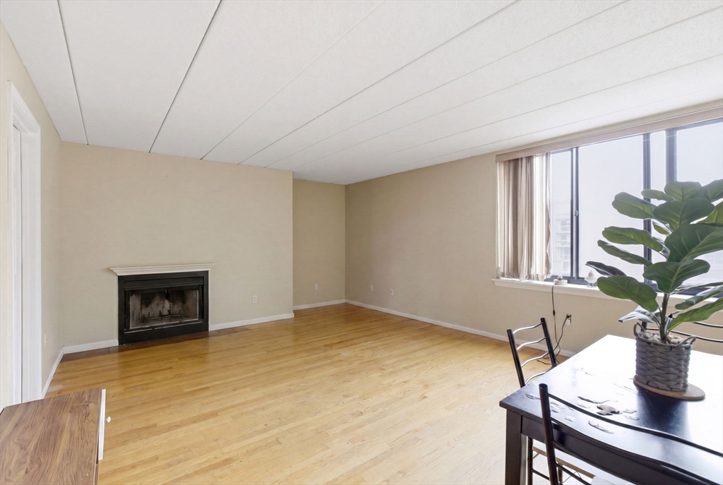 Welcome to this expansive and well-appointed three-bedroom, two-bath residence on the fifth floor of a professionally managed condominium, ideally positioned near Commonwealth Avenue and the Brookline border. The open-concept living and dining area offers an excellent layout for both everyday living and entertaining.The kitchen is thoughtfully designed with white appliances and ample cabinetry, while a granite-accented decorative fireplace adds character to the living space. The primary suite provides a private retreat, complete with a spacious en-suite bath and generous closet space. The second bedroom is well-proportioned, and the third bedroom easily accommodates a guest room, home office, or both. Enjoy pleasant views overlooking the courtyard. Building amenities, including a fitness center, common roof deck, and massive pool. Additional features include in-unit laundry, central air, and TWO garage parking spaces.