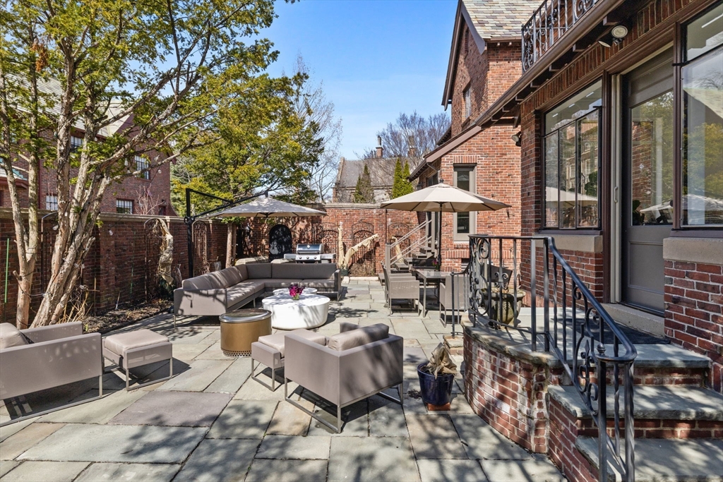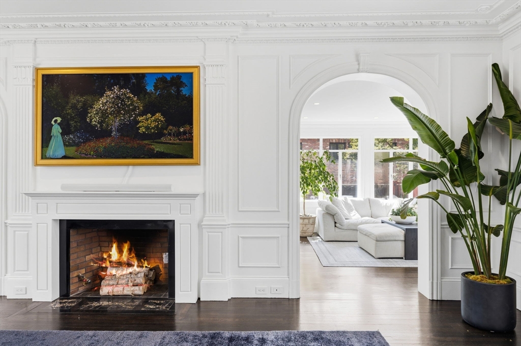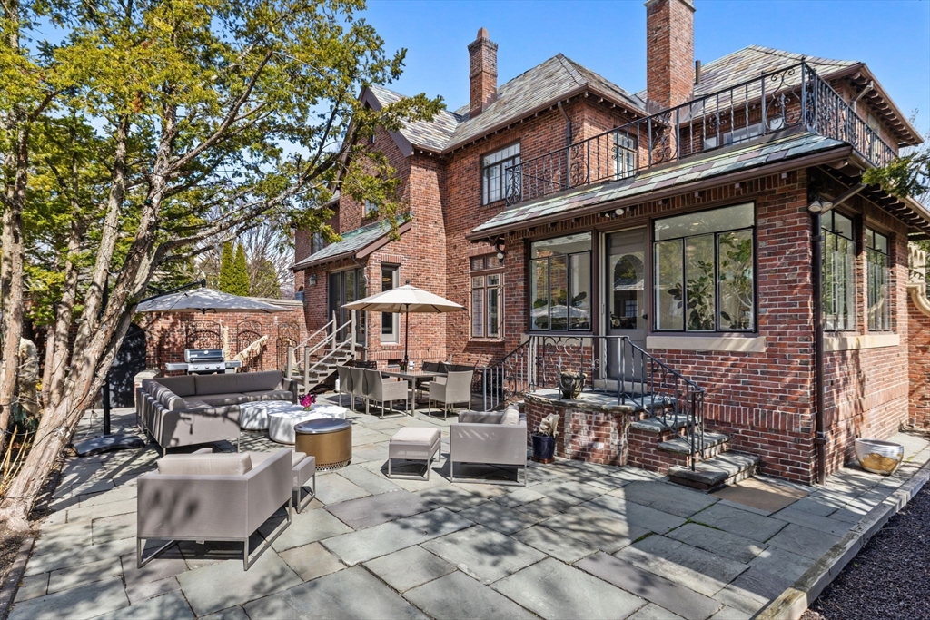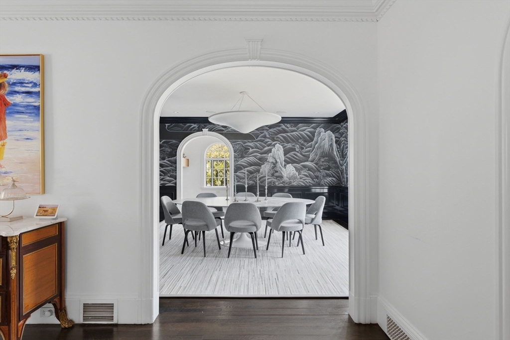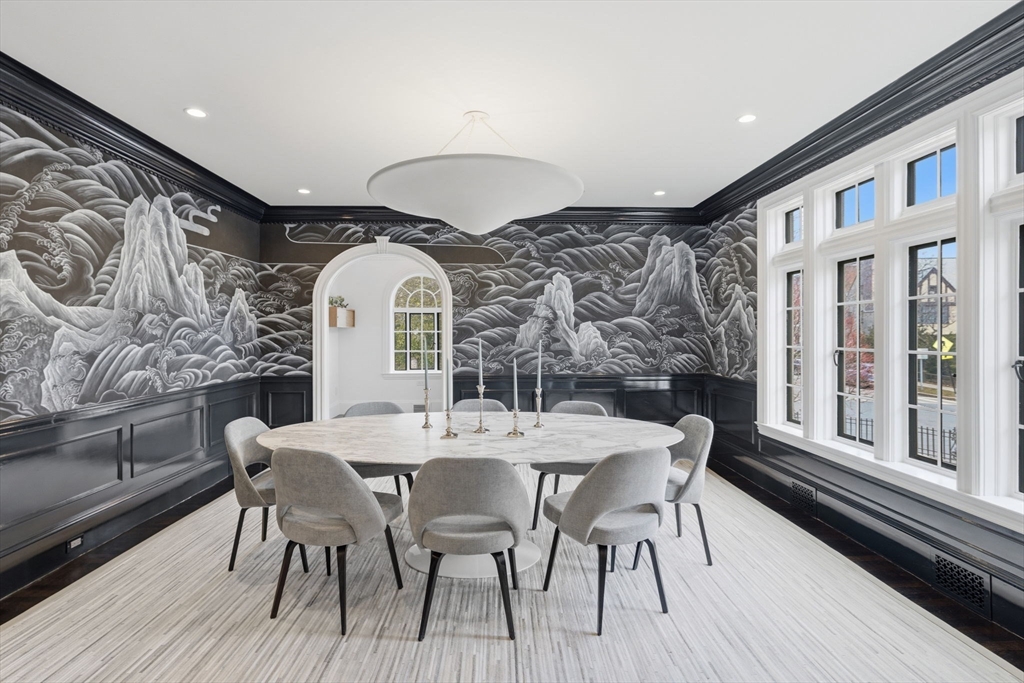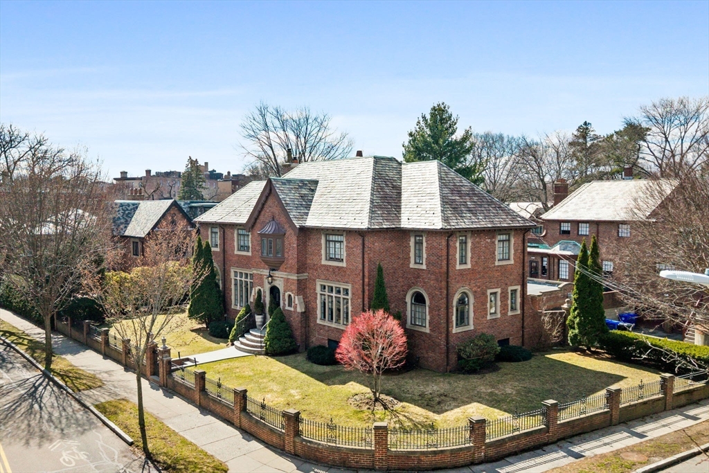 98 Carlton Street is an extraordinary 1935 English Revival residence in Brookline’s coveted Cottage Farm Historic District, blending architectural pedigree with an exceptional standard of restoration. Prominently sited on a corner lot in one of the single-family neighborhoods closest to Back Bay, the home offers rare convenience with a setting defined by history, scale, and character. A comprehensive 2022–2025 capital improvement program thoughtfully addressed major structural, exterior, and mechanical systems, including slate roof repairs, full chimney reconstruction, masonry and stone restoration, wooden gutter replacement, boiler and HVAC upgrades, irrigation improvements, and enhanced electrical and security systems. Inside, richly detailed entertaining spaces are complemented by a refined Waterworks bath, bespoke De Gournay dining room installation, restored stained glass, curated designer lighting, and premium Wolf, Sub-Zero, and Miele appliances.