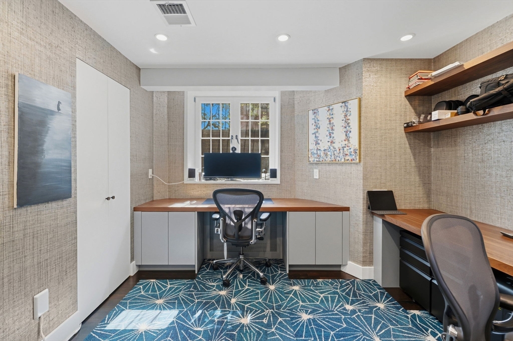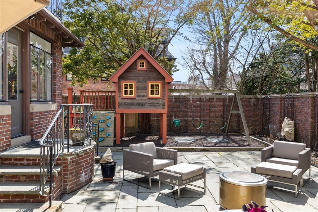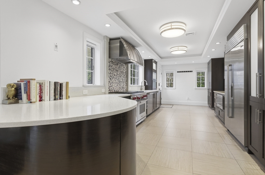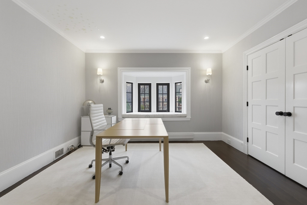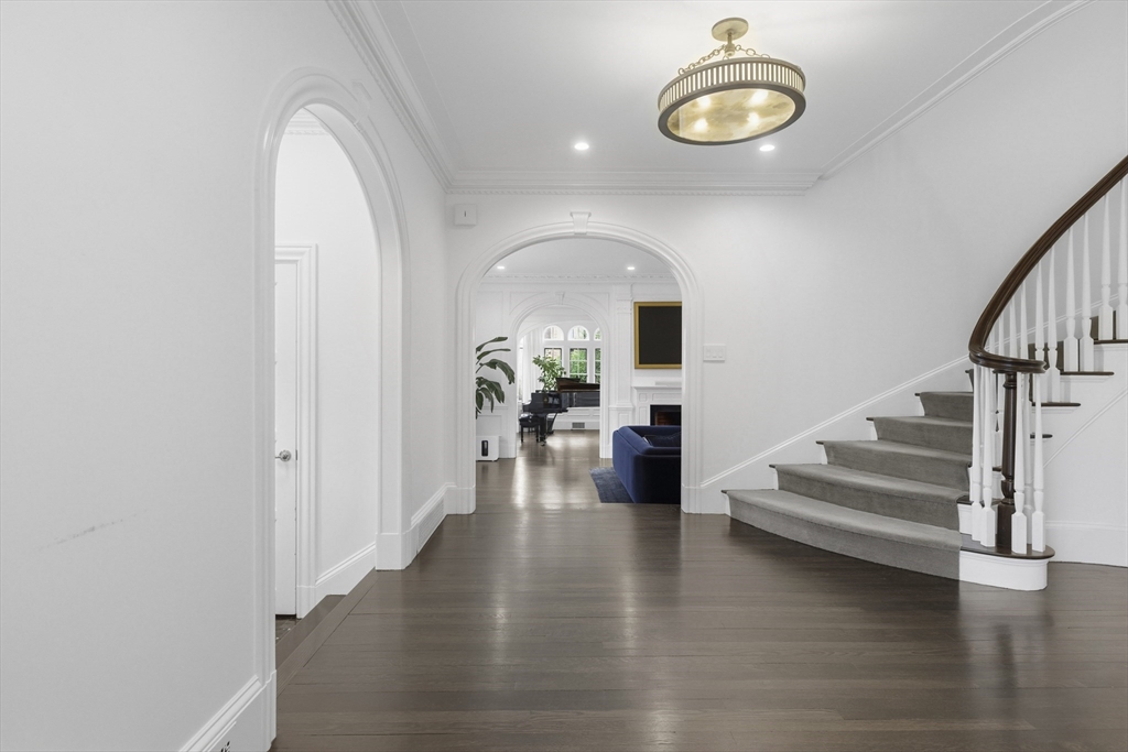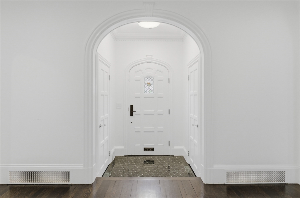 98 Carlton Street is an extraordinary 1935 English Revival residence in Brookline’s coveted Cottage Farm Historic District, blending architectural pedigree with an exceptional standard of restoration. Prominently sited on a corner lot in one of the single-family neighborhoods closest to Back Bay, the home offers rare convenience with a setting defined by history, scale, and character. A comprehensive 2022–2025 capital improvement program thoughtfully addressed major structural, exterior, and mechanical systems, including slate roof repairs, full chimney reconstruction, masonry and stone restoration, wooden gutter replacement, boiler and HVAC upgrades, irrigation improvements, and enhanced electrical and security systems. Inside, richly detailed entertaining spaces are complemented by a refined Waterworks bath, bespoke De Gournay dining room installation, restored stained glass, curated designer lighting, and premium Wolf, Sub-Zero, and Miele appliances.