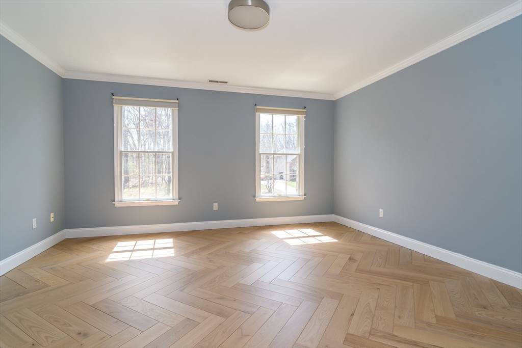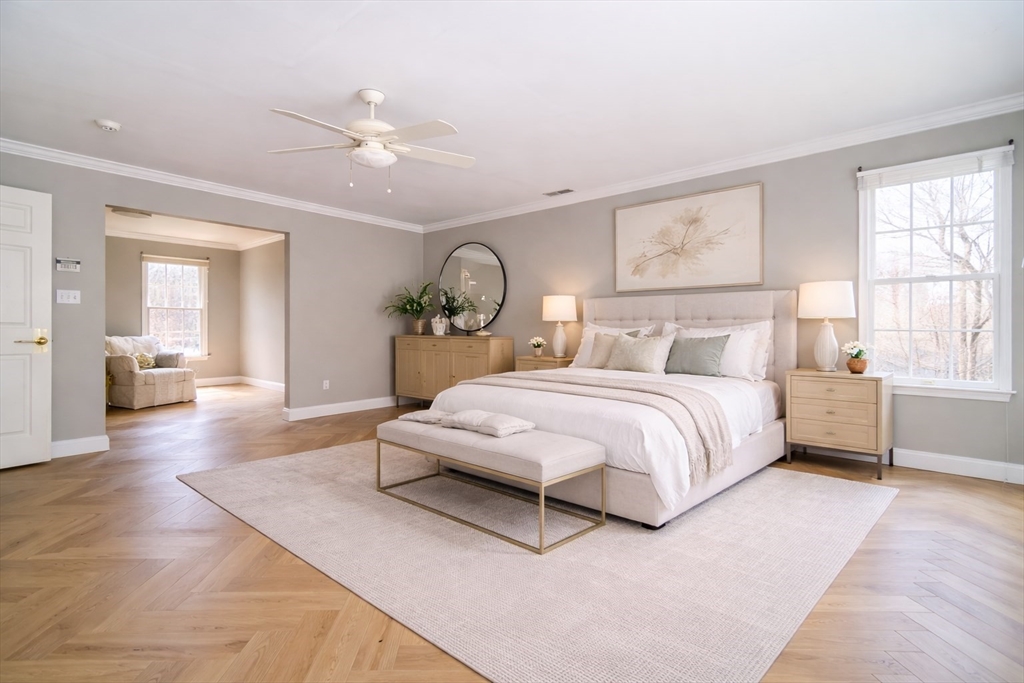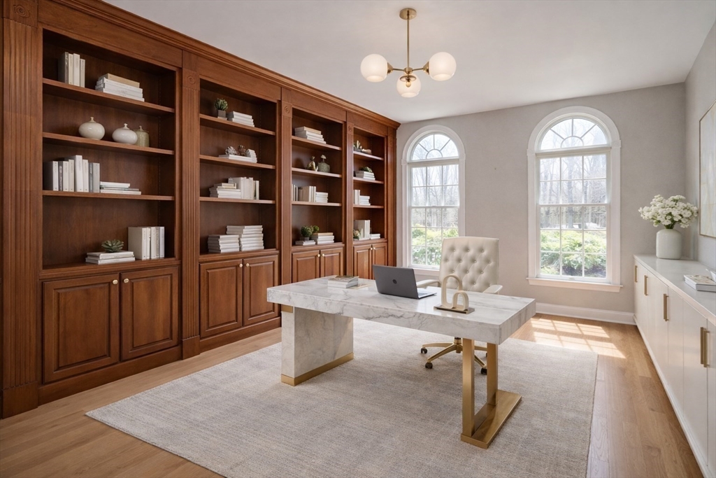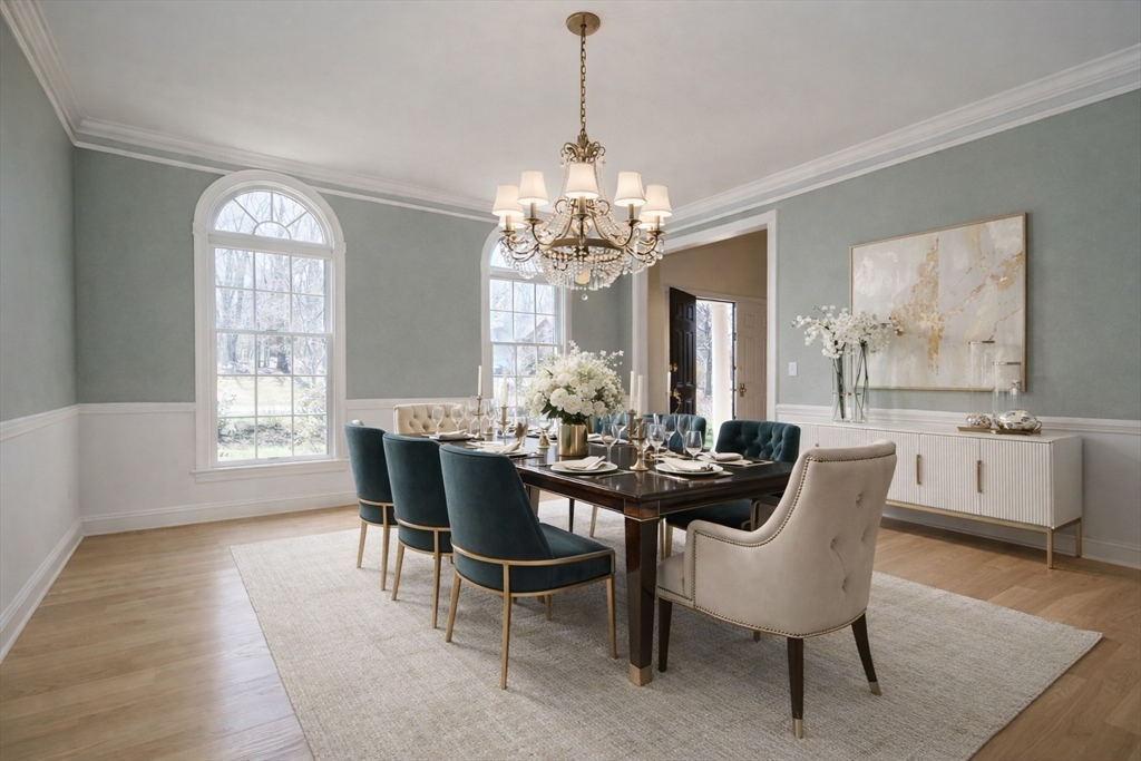 Exquisite brick-front Colonial estate nestled in the coveted Hopkinton Highlands neighborhood, where luxury living meets the warmth of a true family community. Craftsmanship shines throughout this magnificent home, set on a beautifully landscaped acre with the privacy of nearby conservation land. The grand first floor impresses at every turn. A sun-drenched Conservatory, formal Dining Room with chair rail molding, and a stunning open kitchen with center island, flow seamlessly for both everyday living and entertaining, There is also a skylit sunroom. Upstairs, four generously-sized bedrooms include a luxurious primary suite spanning the full width of the home, complete with a sitting room, multiple walk-in closets, and a spa-like ensuite with cathedral ceilings and whirlpool tub. The finished lower level — nearly 1,400 square feet — offers endless flexibility, with a media room, bar, and space for a home office or playroom.